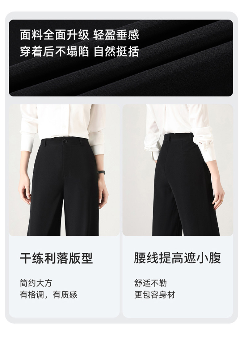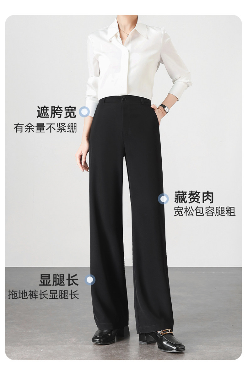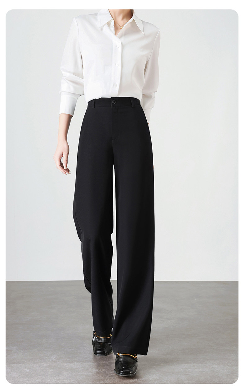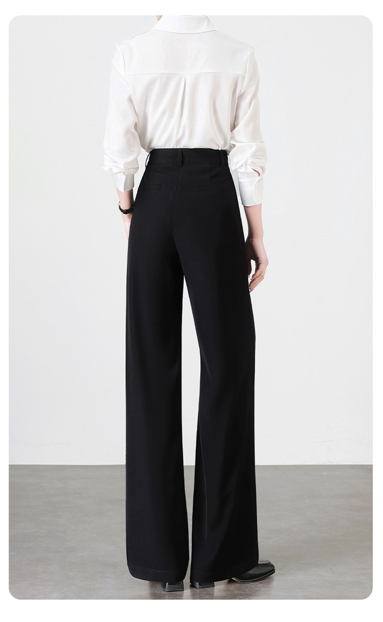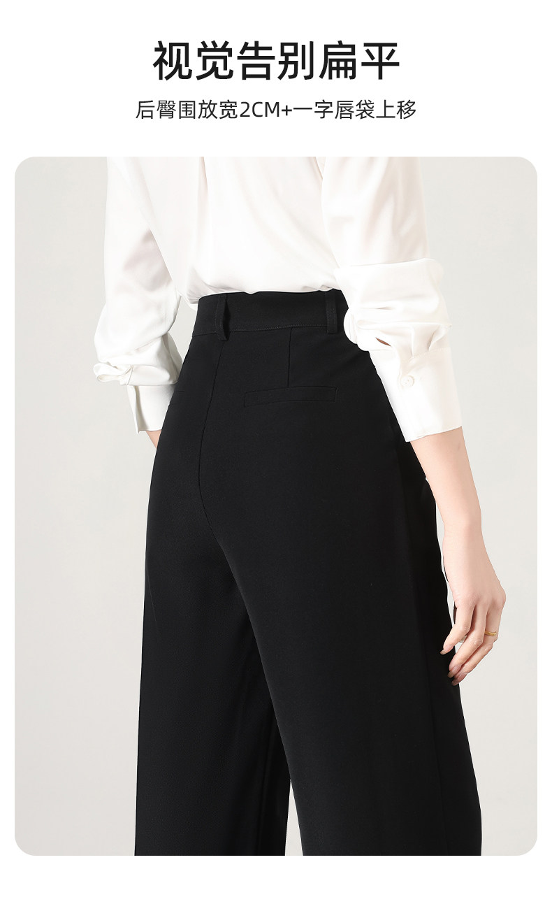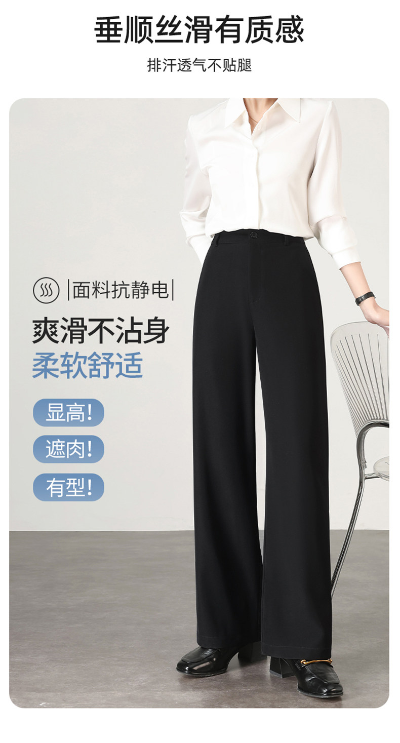 Women's Suit Pants, New Professional Style for Autumn and Winter, Fleece-Lined, Slim Fit, High-Waisted, High-End Drape, Wide-Leg Black Suit Pants, Straight-Leg Pants