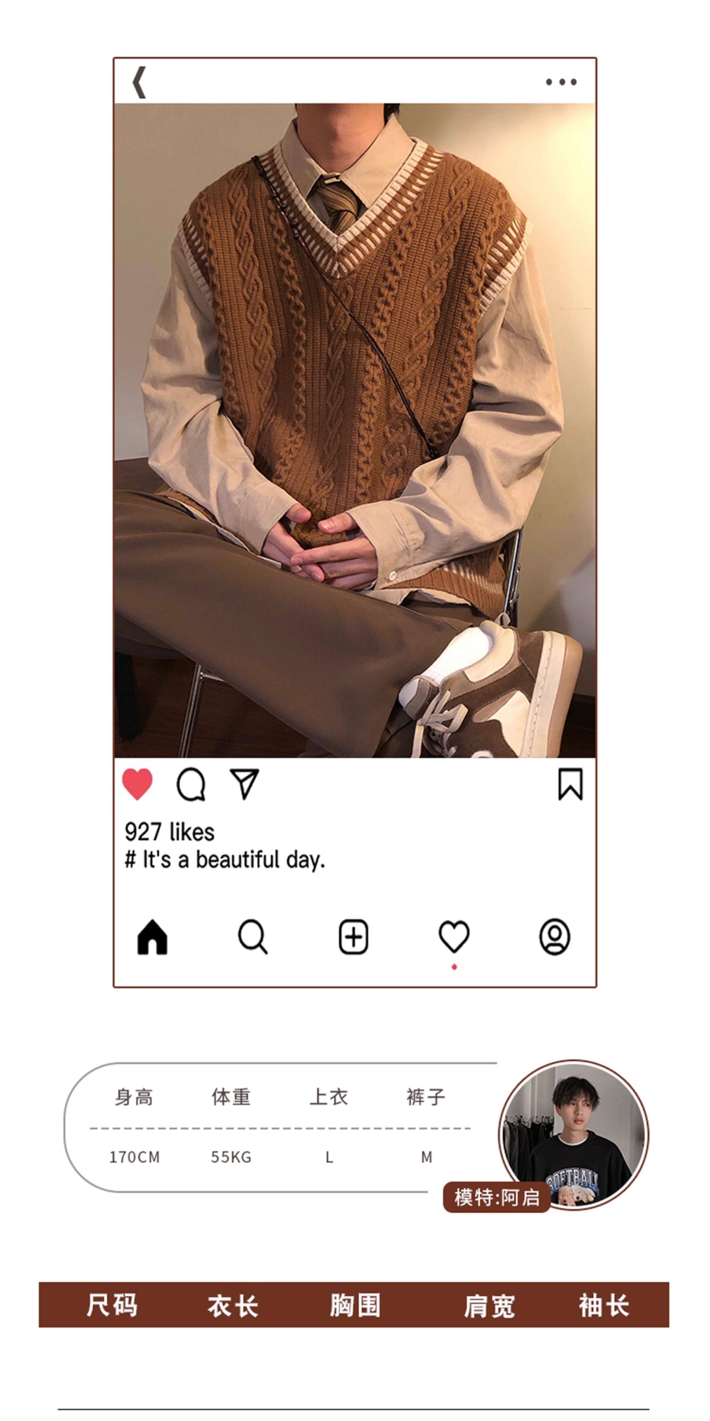 Nagawl Autumn and Winter Retro Loose Japanese College Style Cable Knit Striped Sweater Vest Unisex Trendy