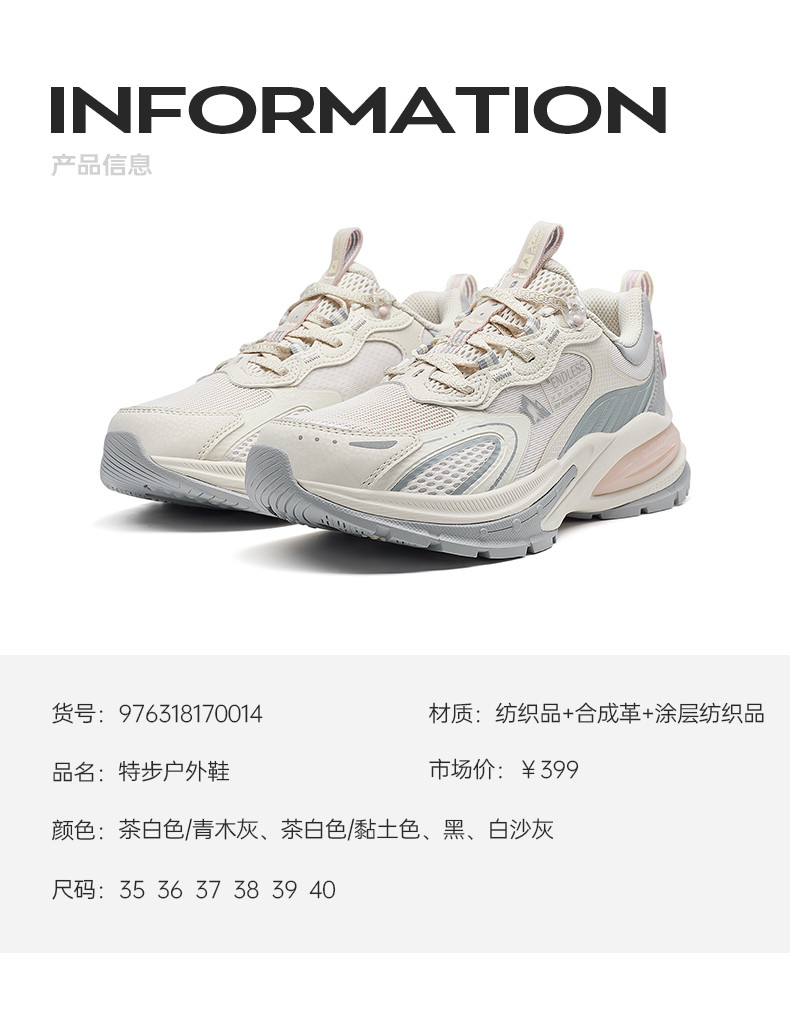 Xtep Creation 3.0丨Outdoor Shoes for Women 2024 New Lightweight Cushioning Couple Shoes 976318170014