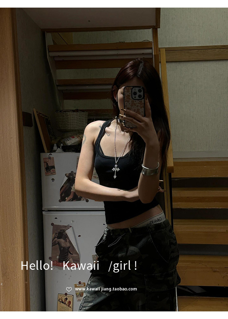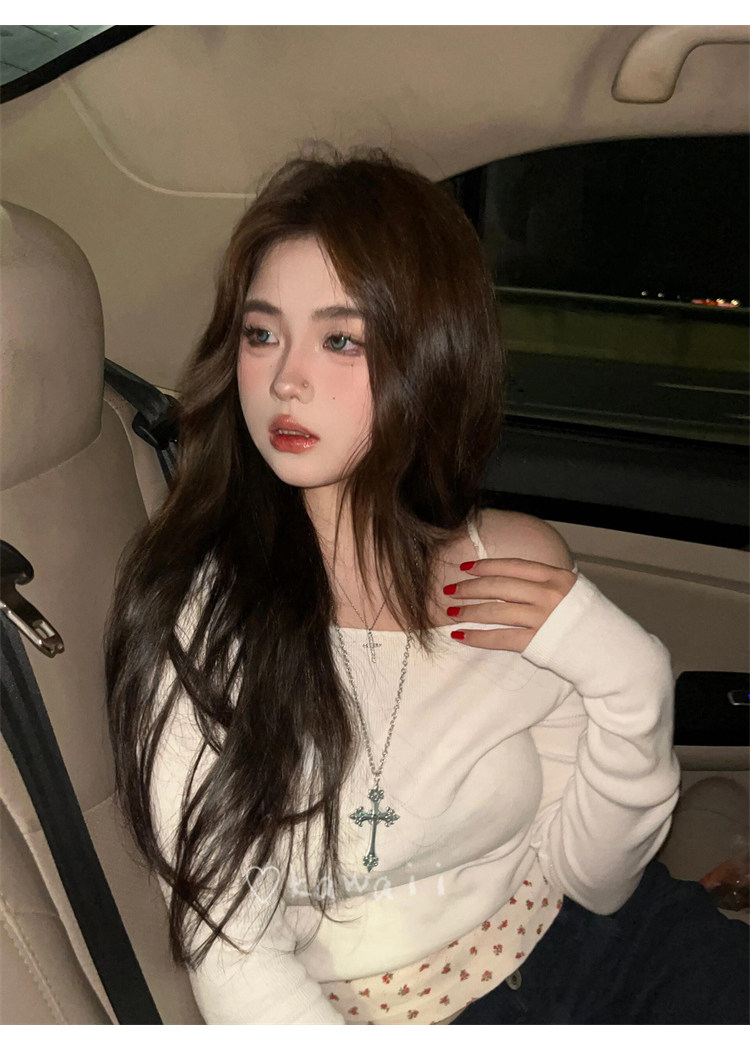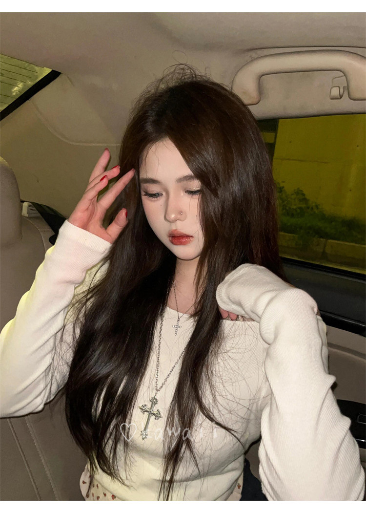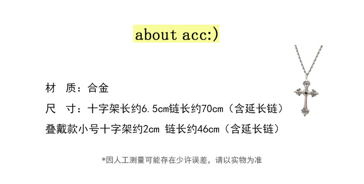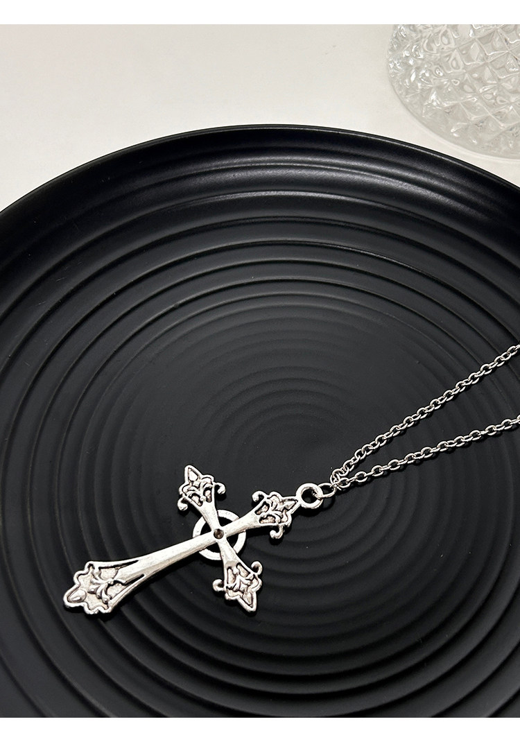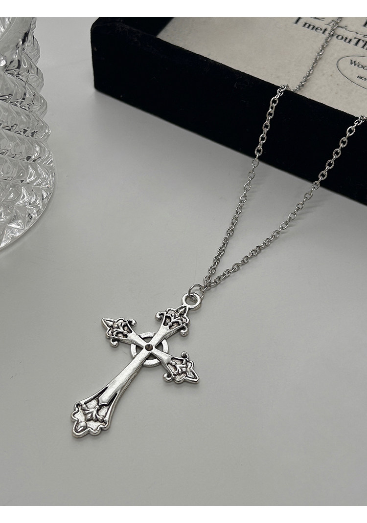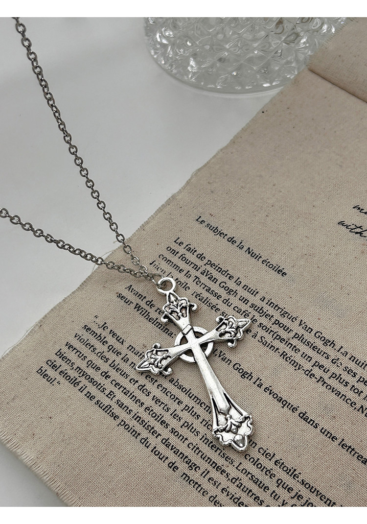 Korean Niche Design Bm Style Silver Large Cross Necklace for Women, Long Choker Punk Retro Y2K Neck Accessory
