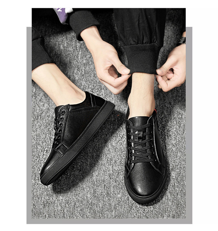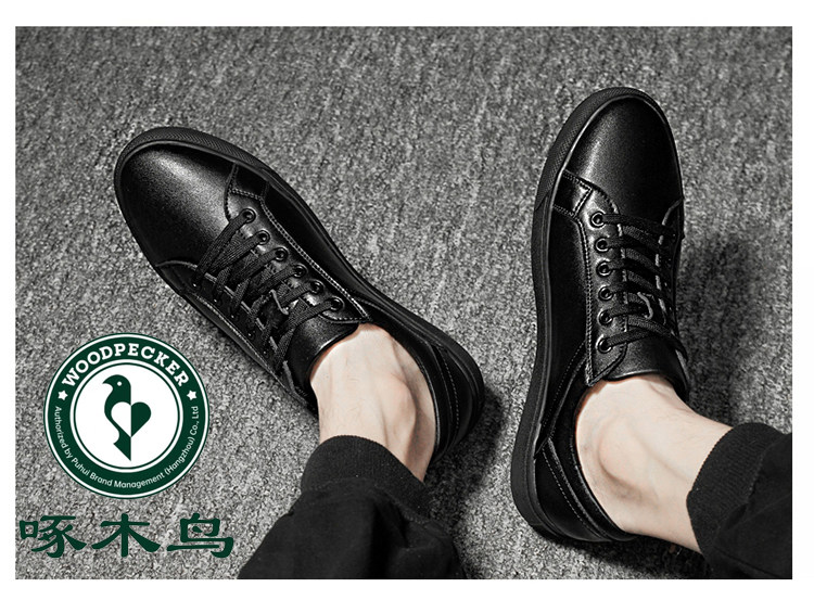 2025 New Men's Shoes, Internet Celebrity Hot-Selling Men's Sneakers, Genuine Leather Casual Shoes, Versatile Flat Shoes, Black Men's Shoes
