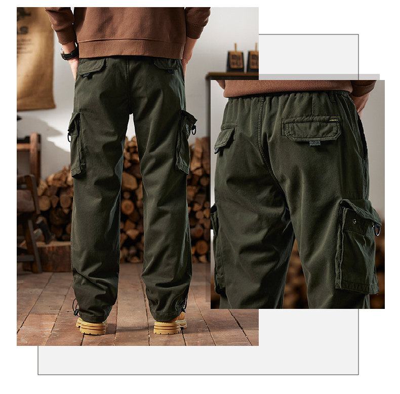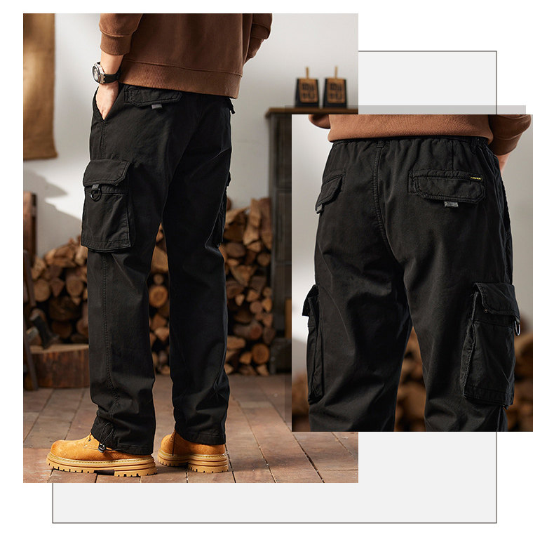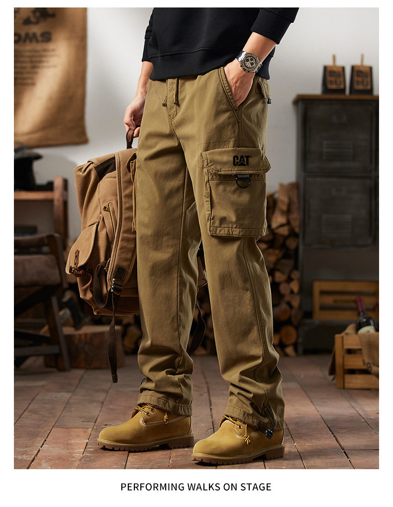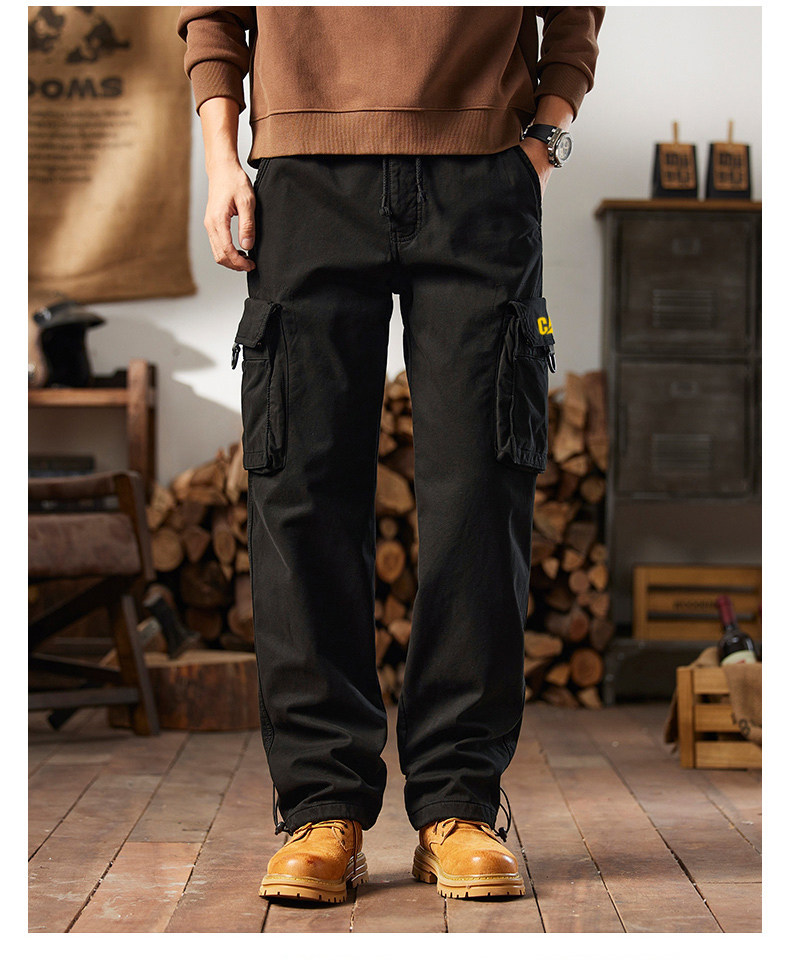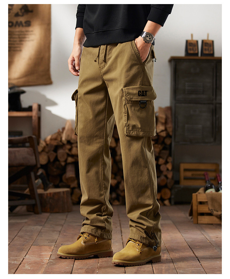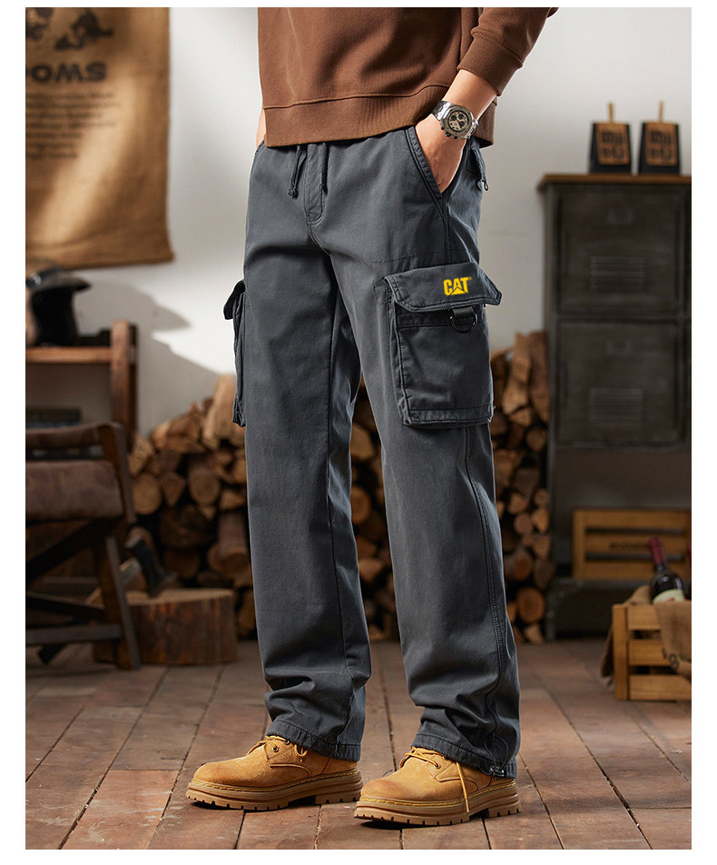 Men's Cargo Pants for Autumn and Winter, Outdoor Straight-Leg Long Pants, Cat Style, Multi-Pocket American Casual Pants for Men