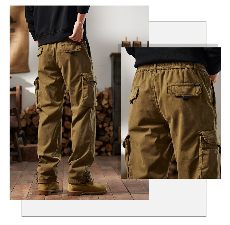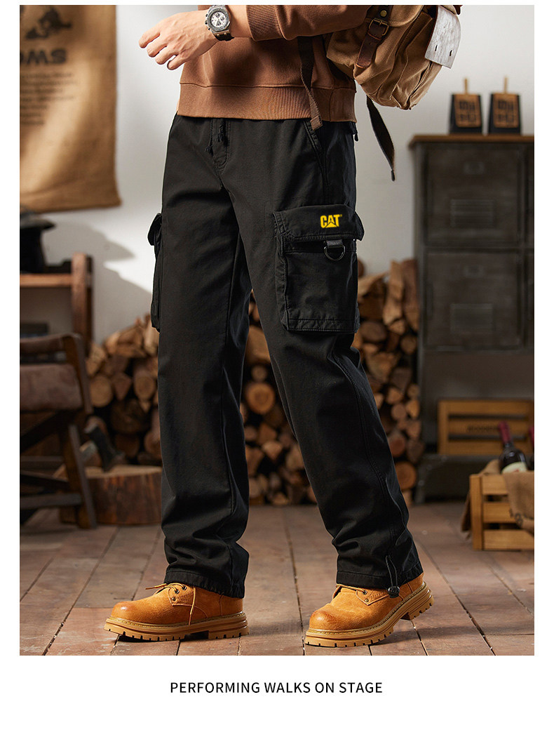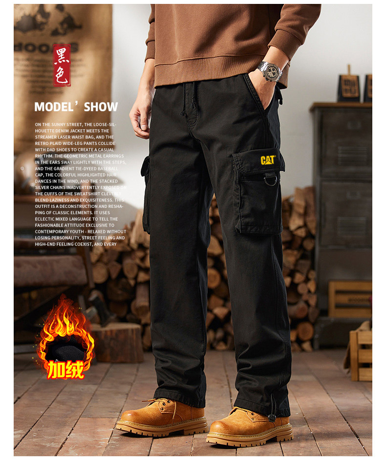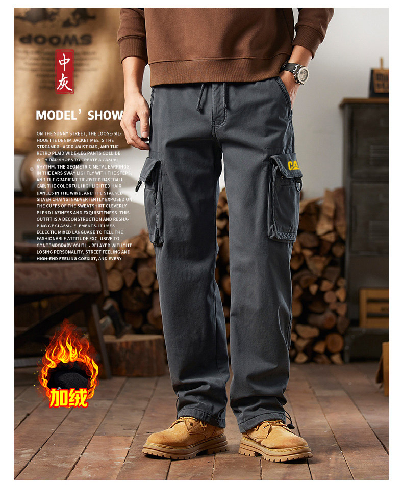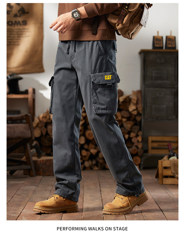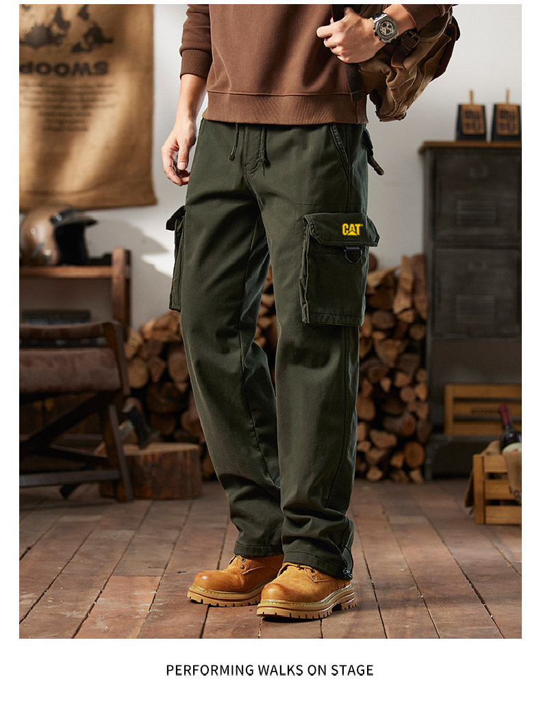 Men's Cargo Pants for Autumn and Winter, Outdoor Straight-Leg Long Pants, Cat Style, Multi-Pocket American Casual Pants for Men