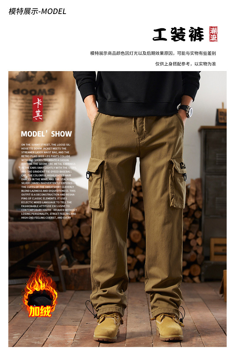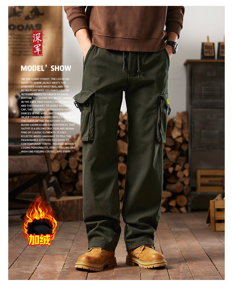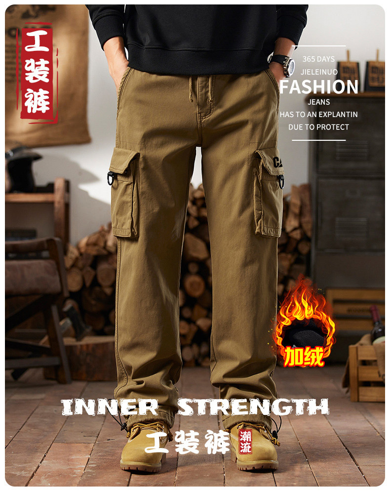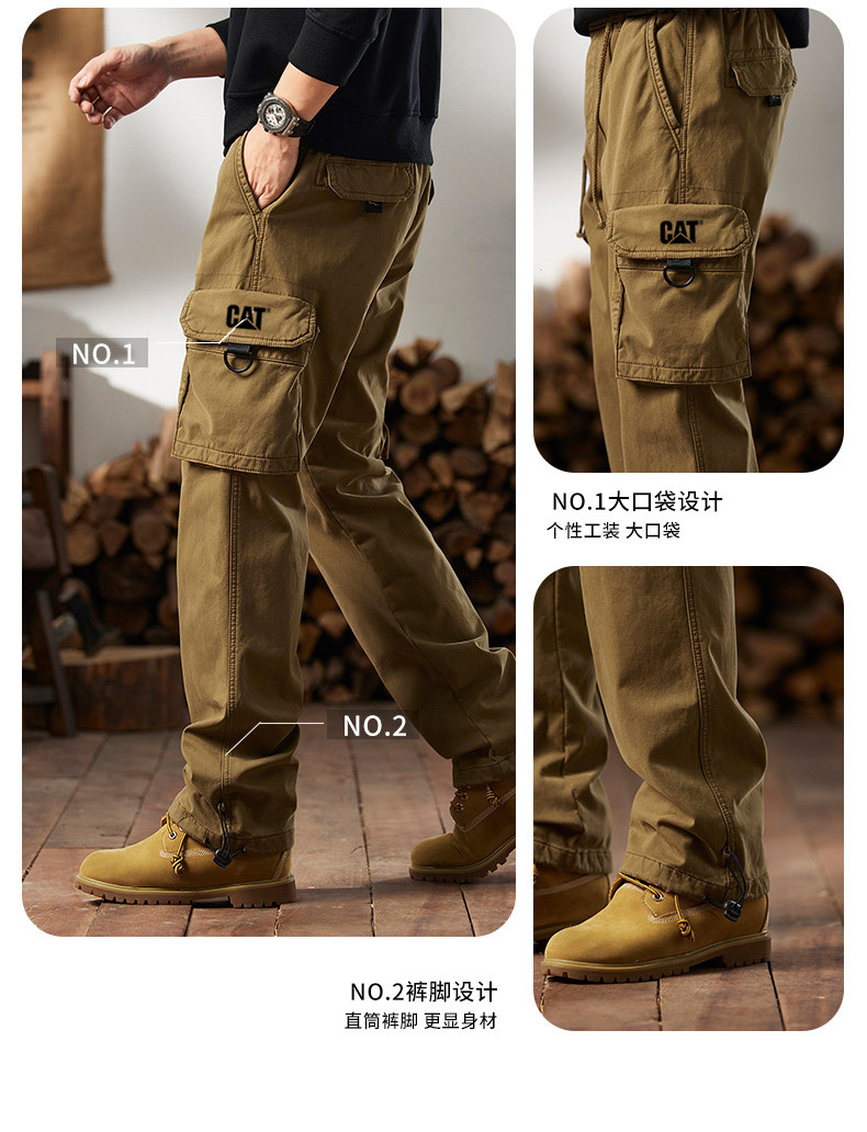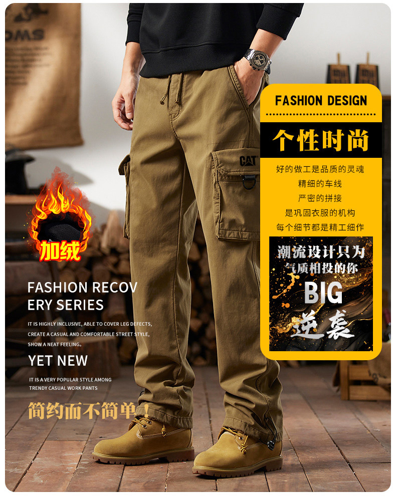 Men's Cargo Pants for Autumn and Winter, Outdoor Straight-Leg Long Pants, Cat Style, Multi-Pocket American Casual Pants for Men