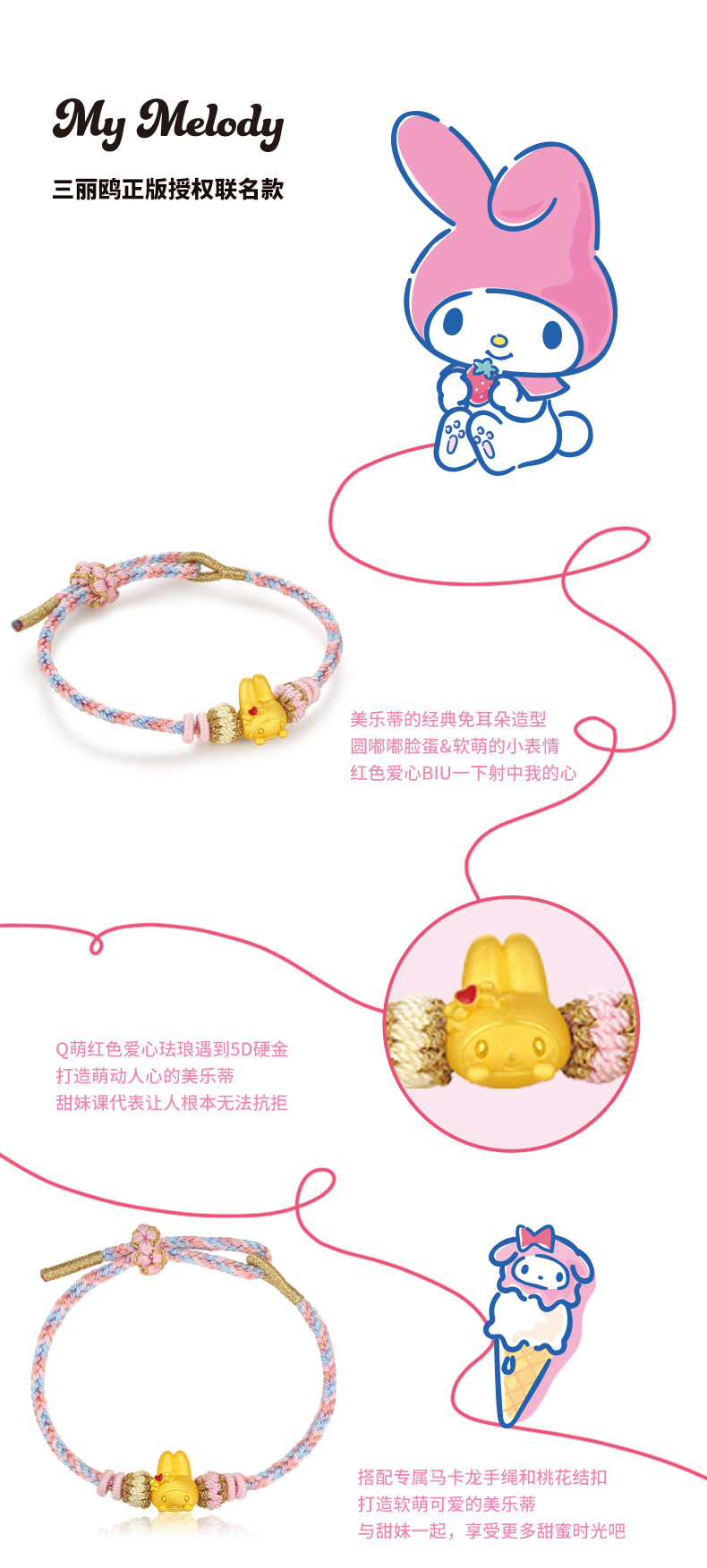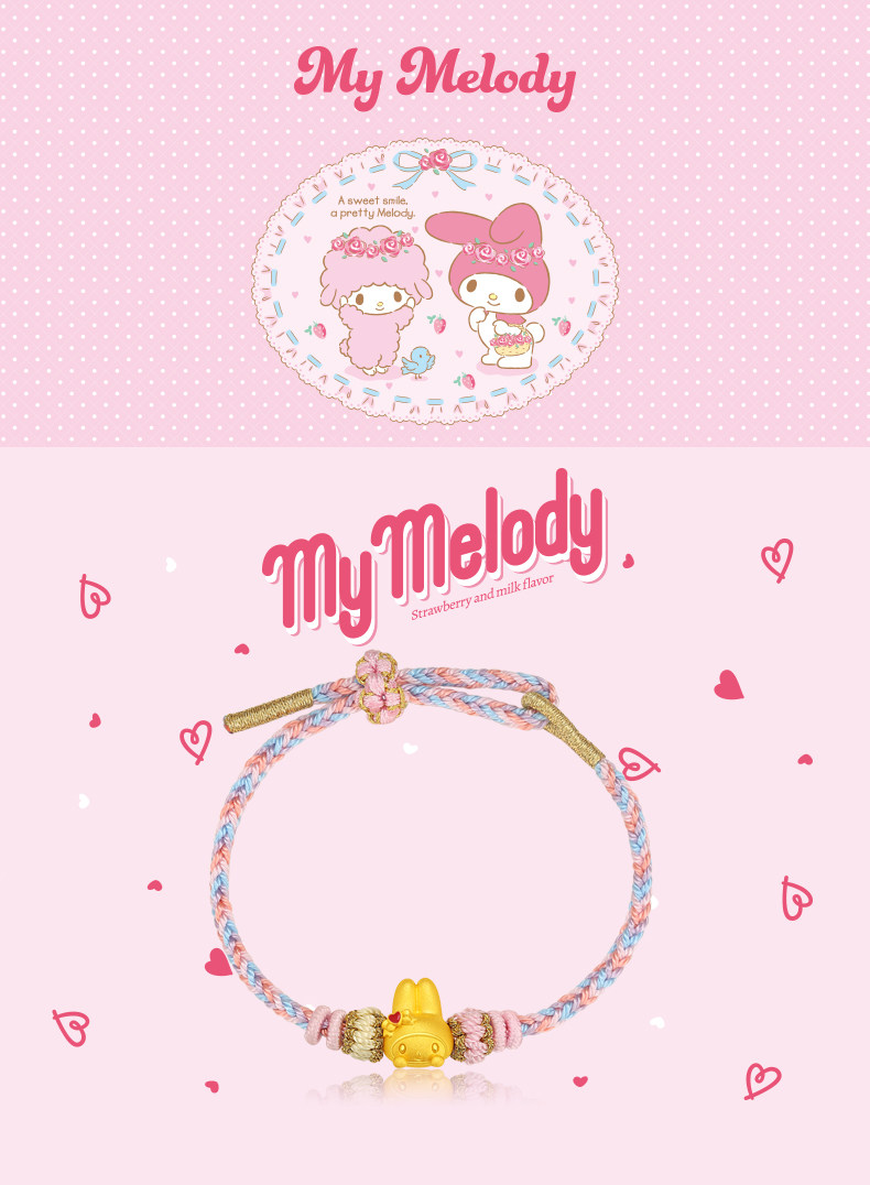 Chow Tai Fook Sanrio My Melody Gold Bracelet Pure Gold Bracelet 5D Hard Gold Gilded Small Edition Birthday Gift Collaboration