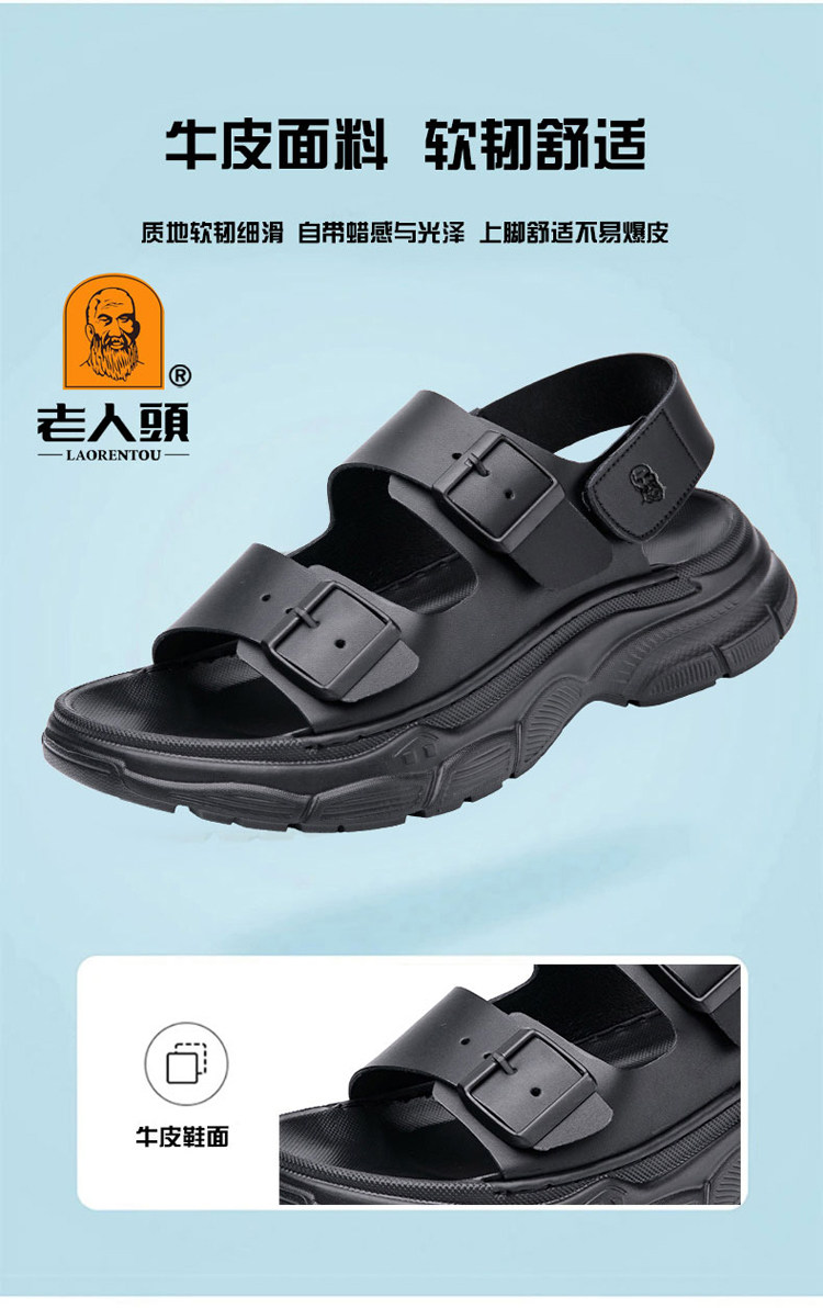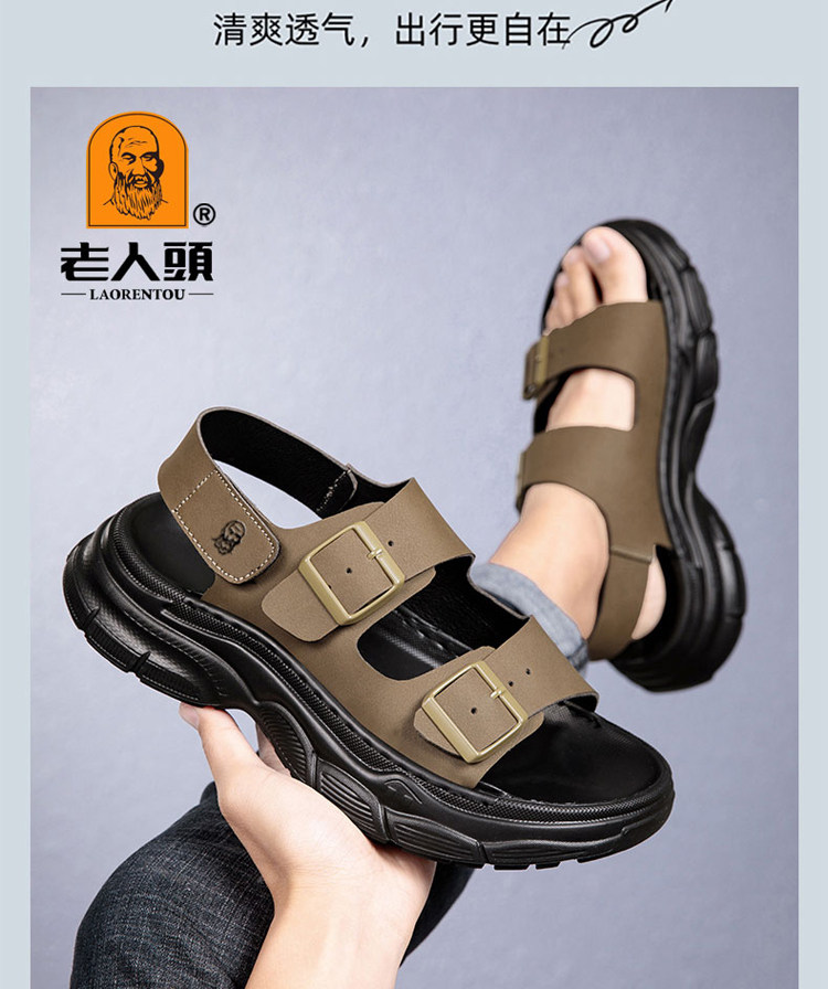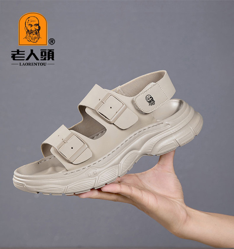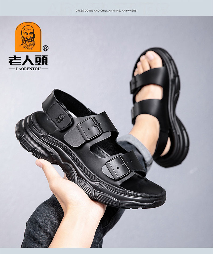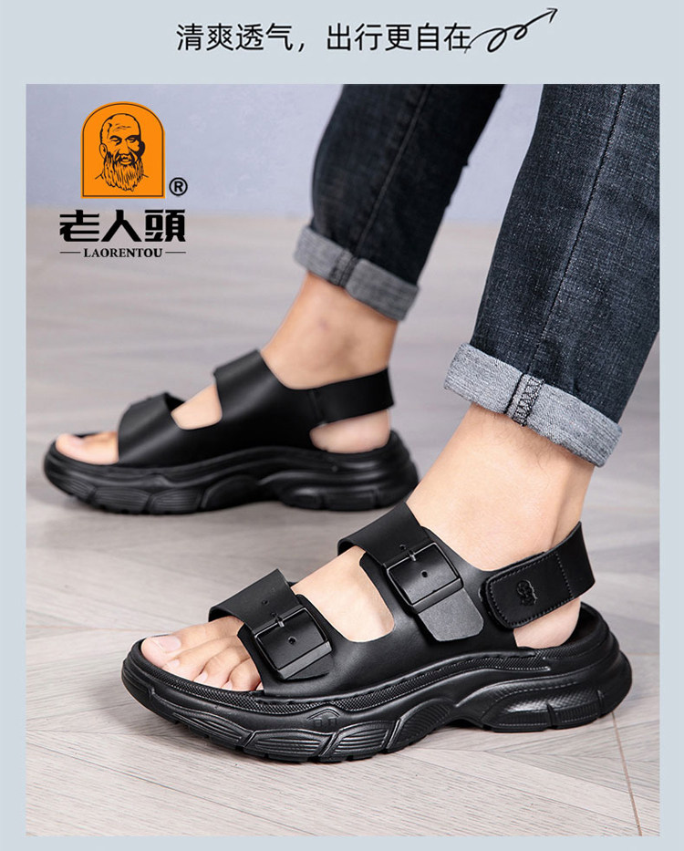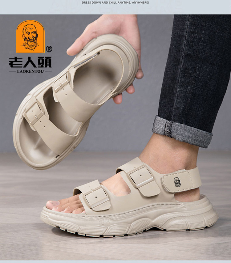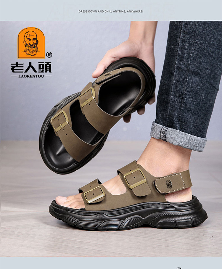 Old Man Head Men's Sandals Summer New Casual Sandals Men's Genuine Leather Outdoor Non-Slip Soft Sole Dad Beach Shoes
