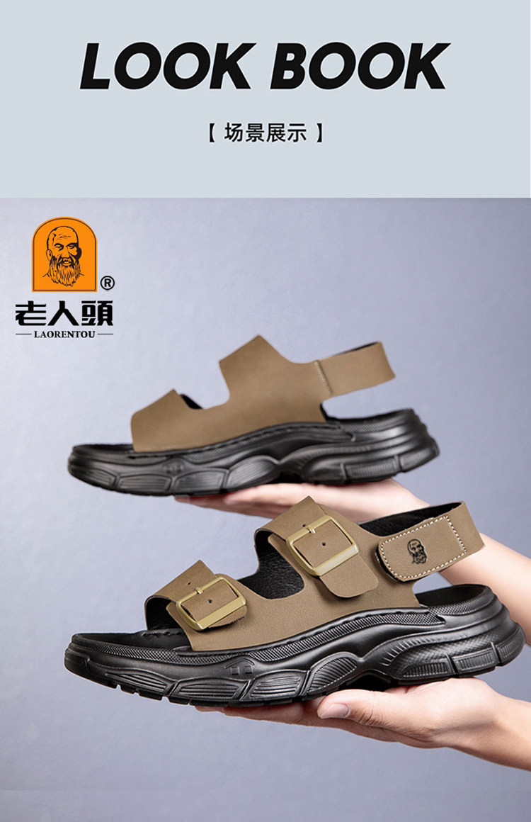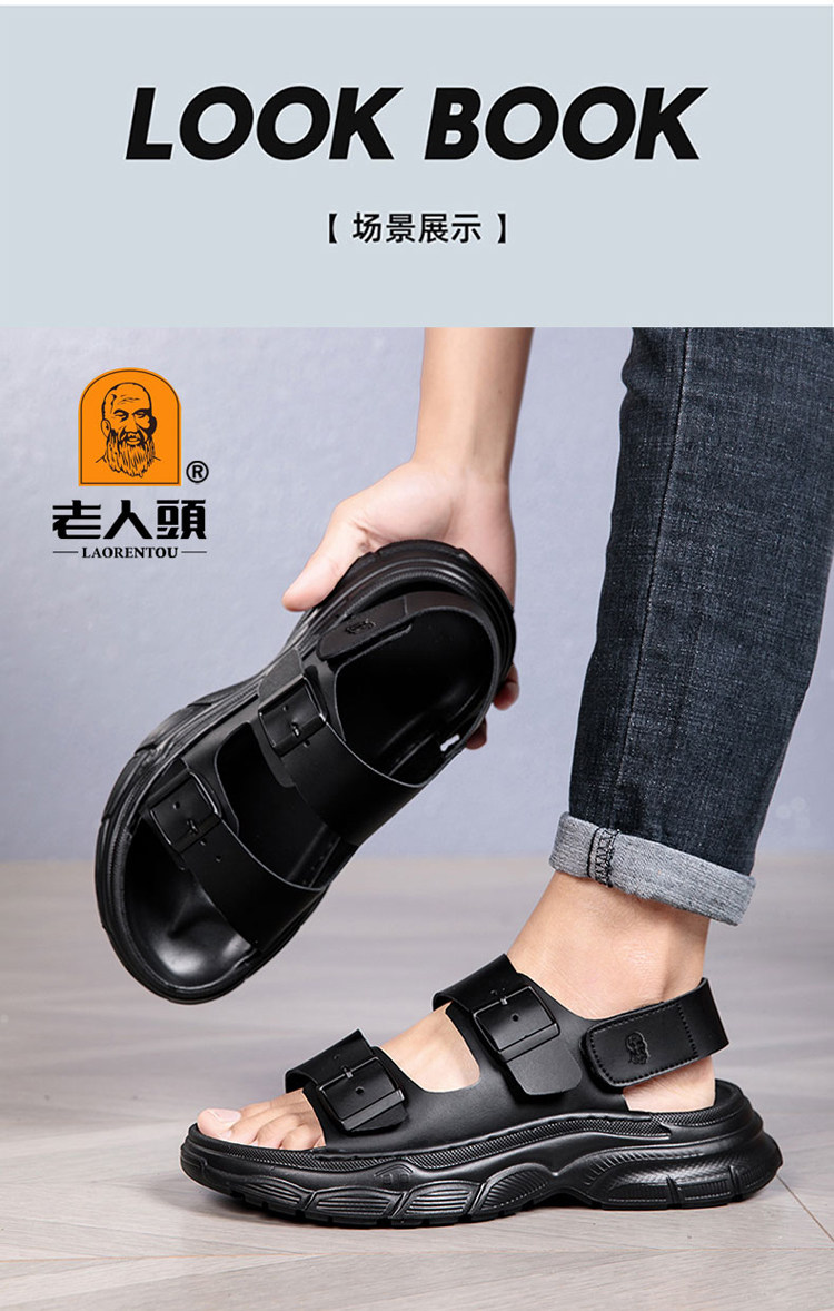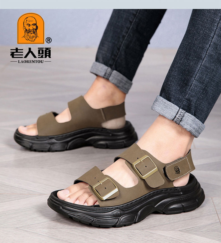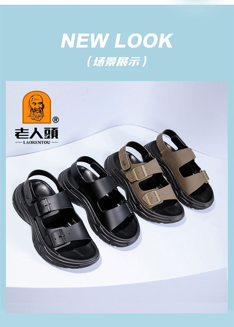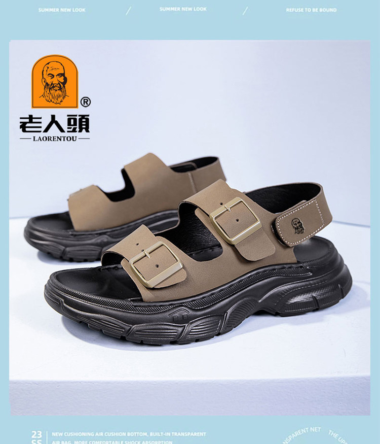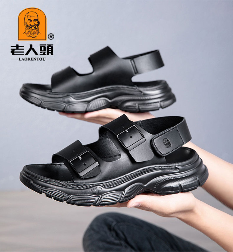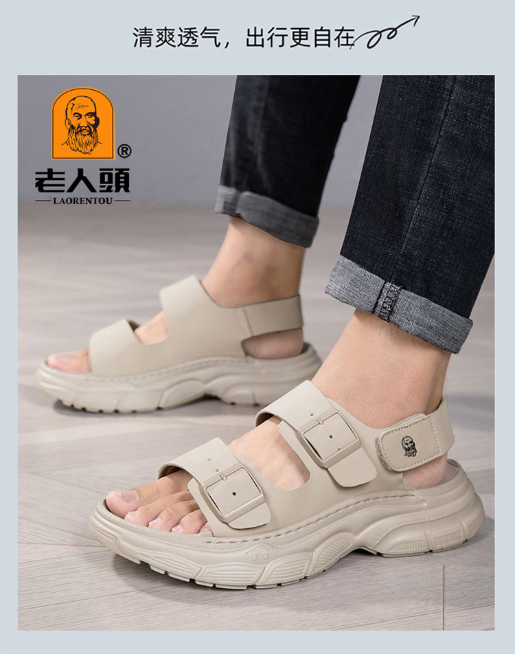 Old Man Head Men's Sandals Summer New Casual Sandals Men's Genuine Leather Outdoor Non-Slip Soft Sole Dad Beach Shoes
