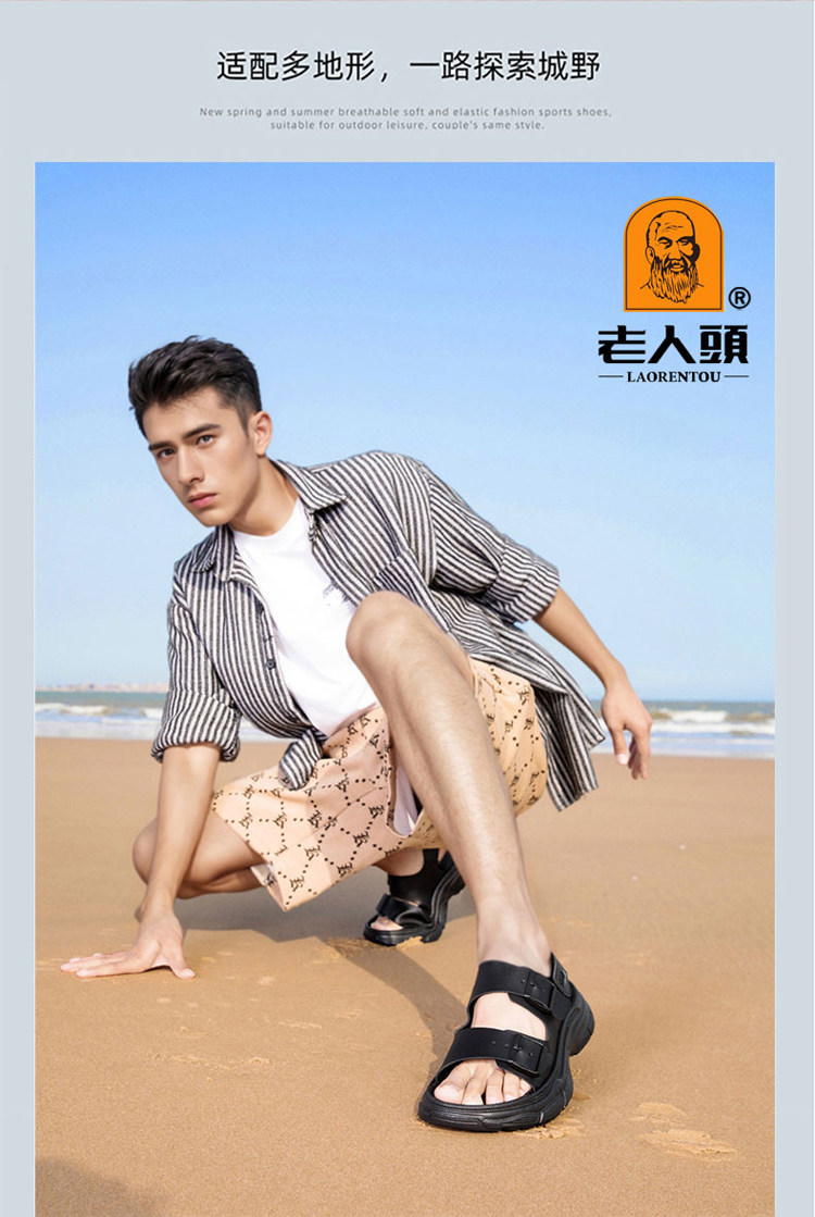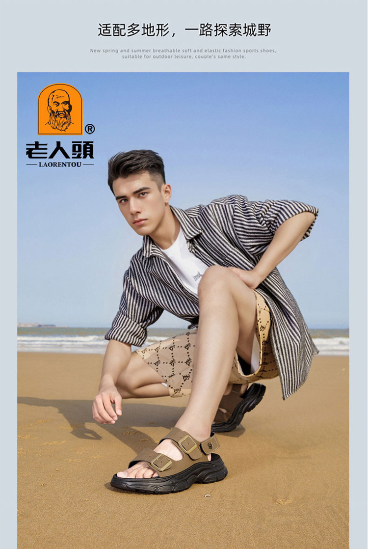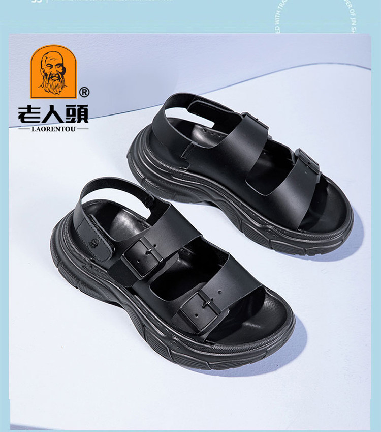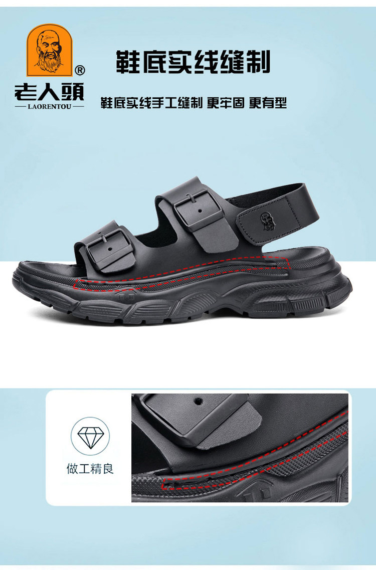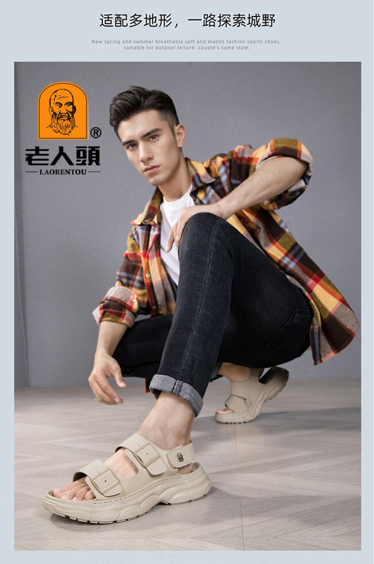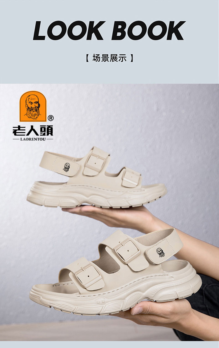 Old Man Head Men's Sandals Summer New Casual Sandals Men's Genuine Leather Outdoor Non-Slip Soft Sole Dad Beach Shoes