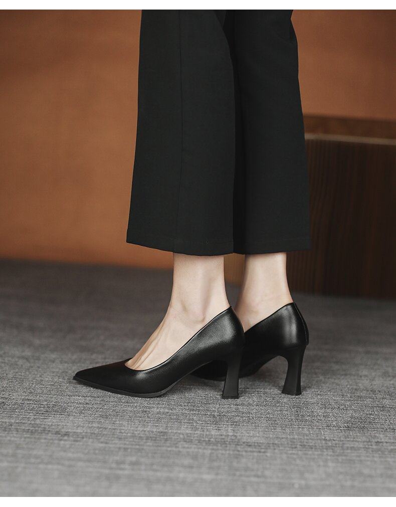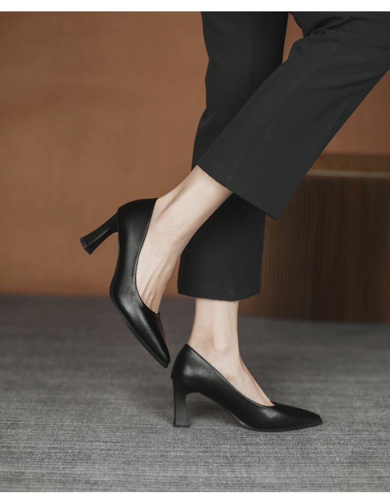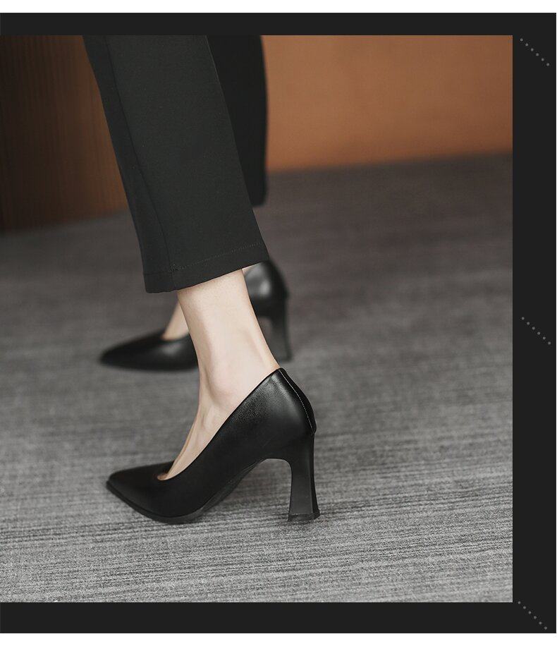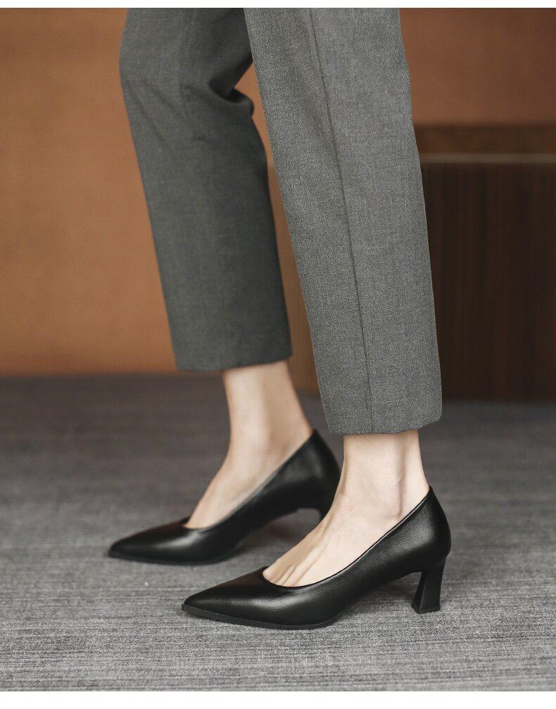 Italy~Vimi Great Flight Attendant High Heels Professional Work Interview Soft Sole Non-Tiring Small Heel Leather Shoes for Women