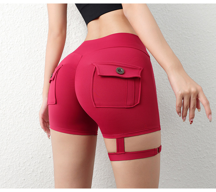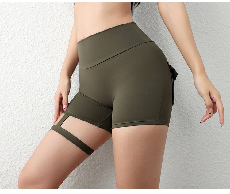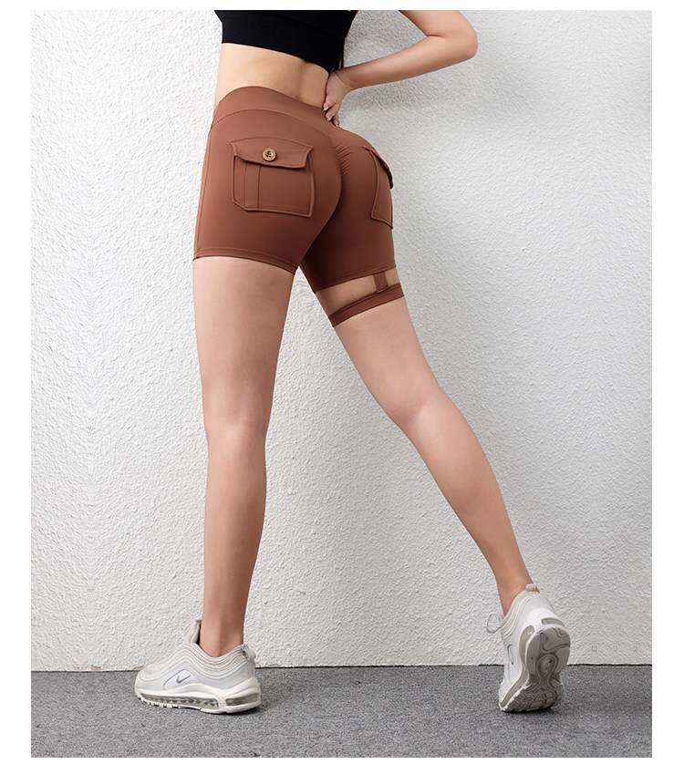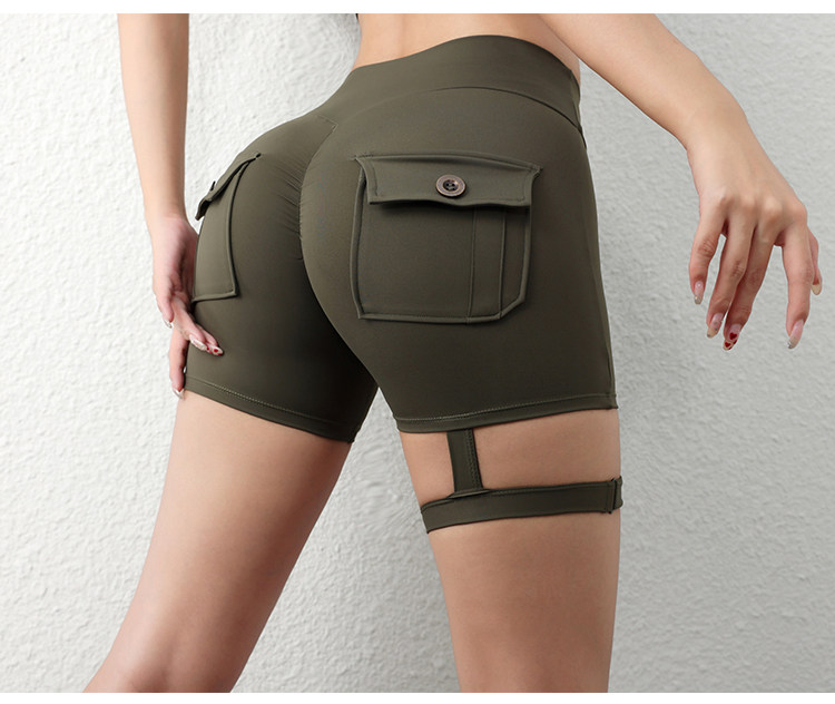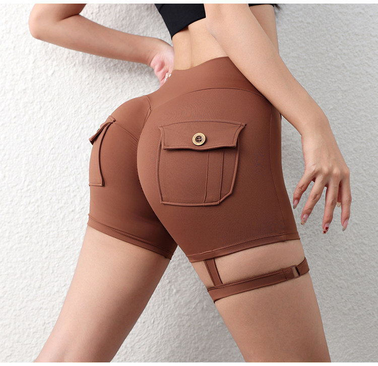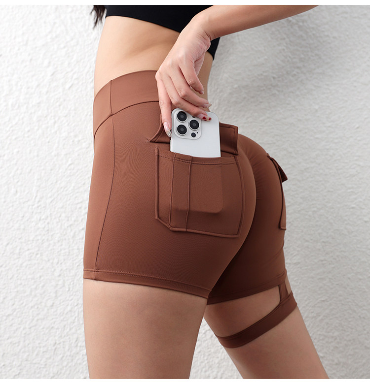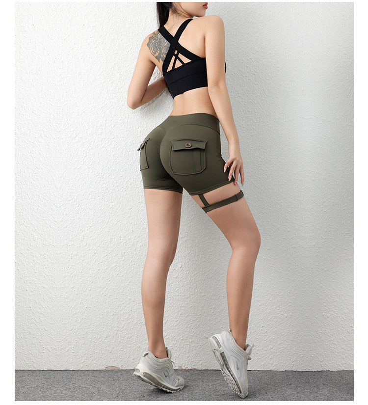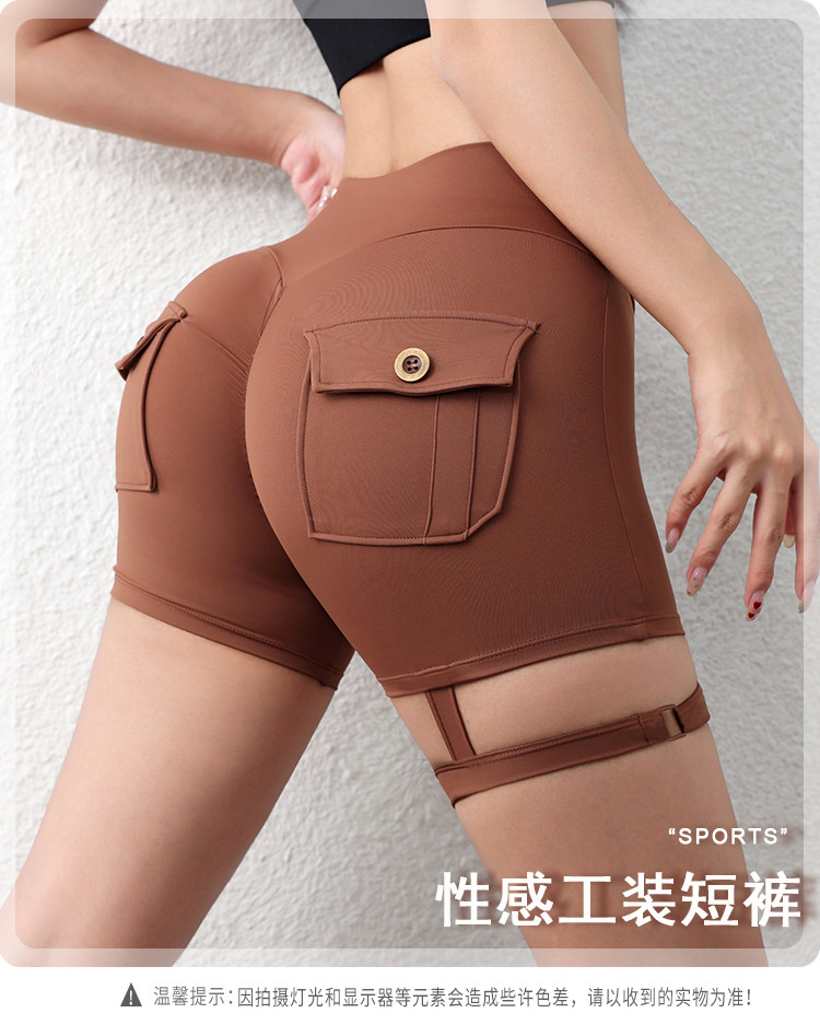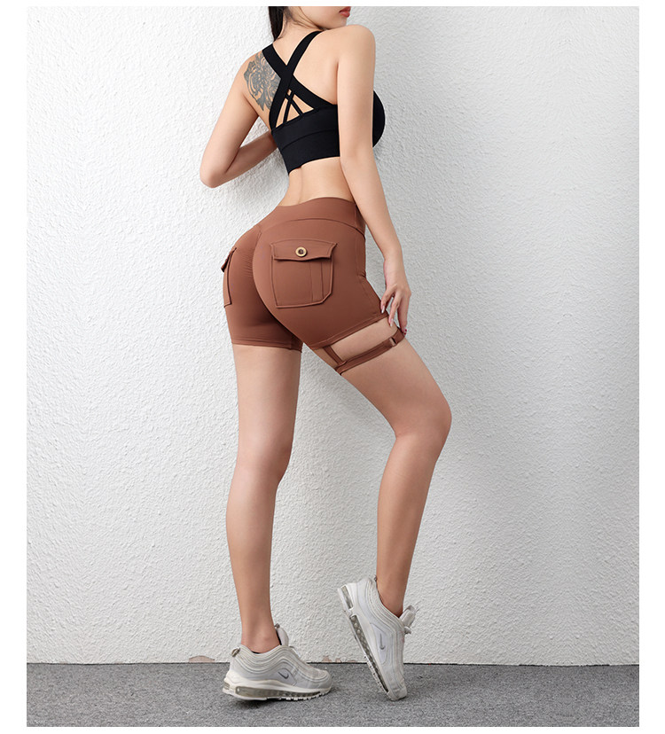Jiumai Yipin European and American Style Workwear Pocket Butt-Lifting Fitness Shorts Women's Tight Leg Ring Sports Pants Peach Butt Yoga Pants