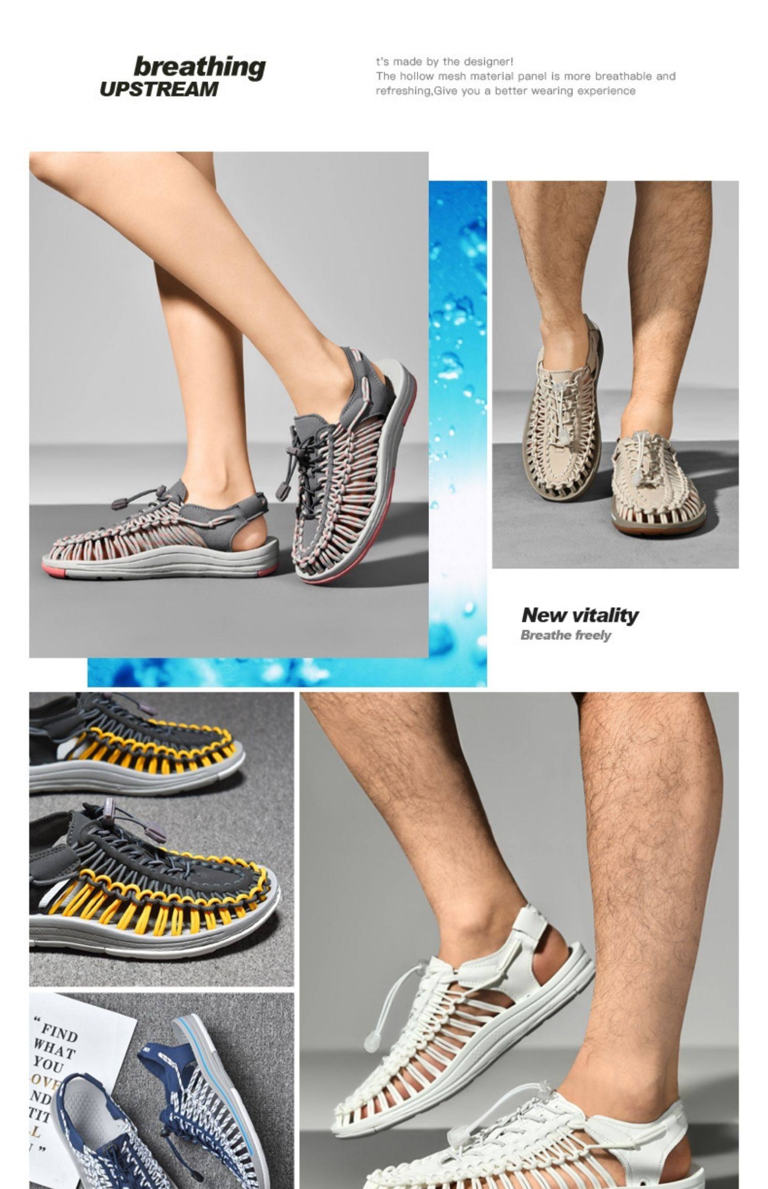 48 Large Size 47 Roman Sandals for Men 46 Summer Hand-Woven Closed-Toe Soft Sole Non-Slip Outdoor Sports Beach Sandals