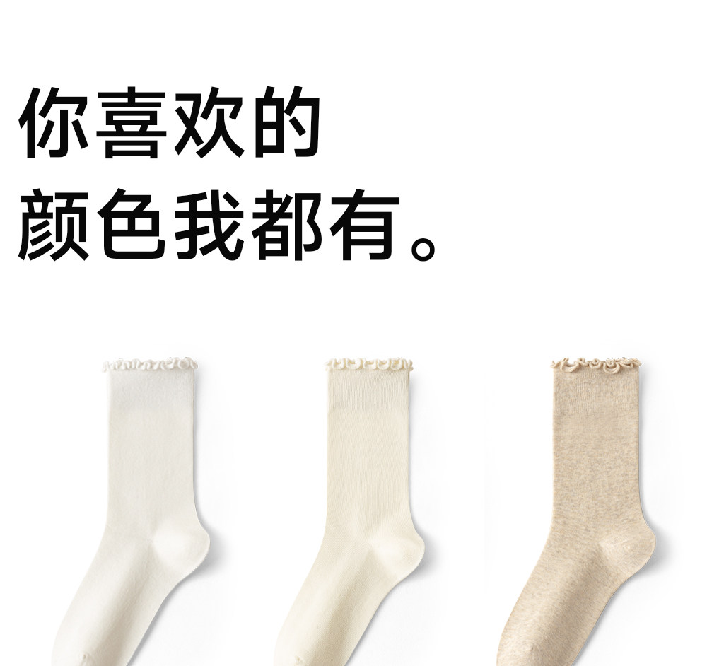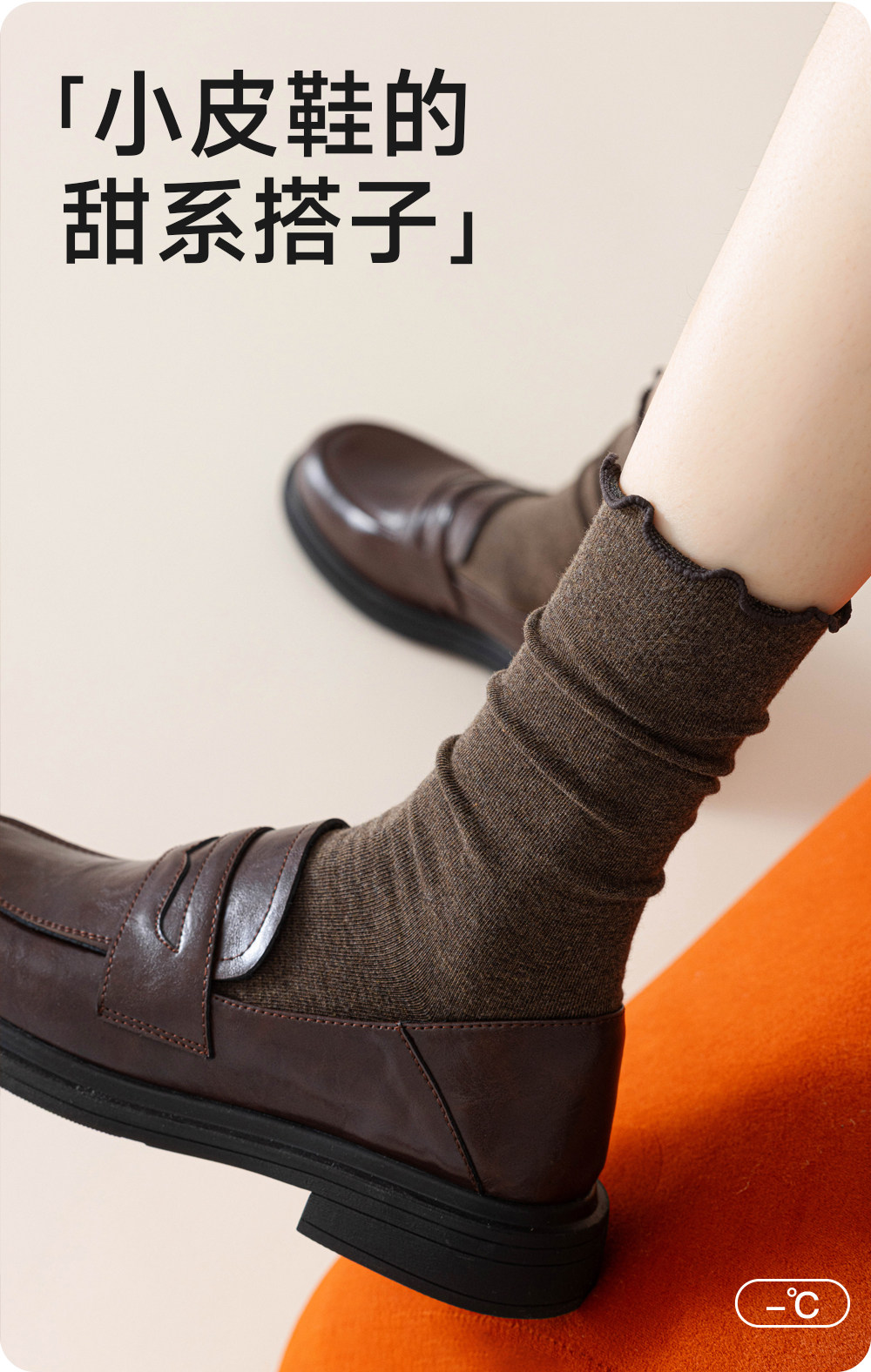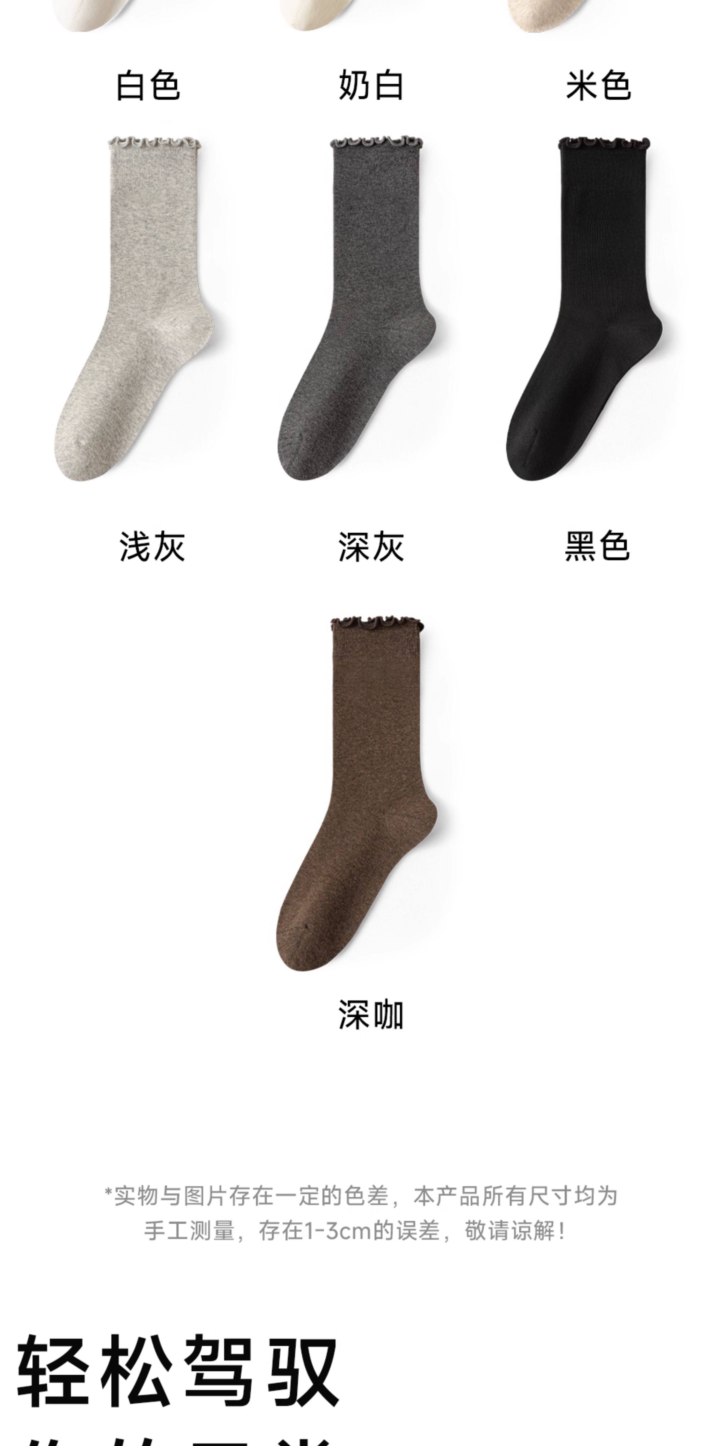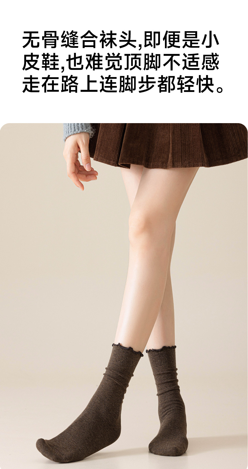 Black Pure Cotton Mid-Calf Socks with Ruffled Edges for Women, Suitable for Autumn and Winter, to Pair with Loafers or Casual Shoes, Maternity Long Socks