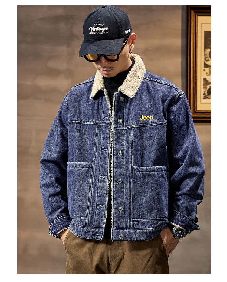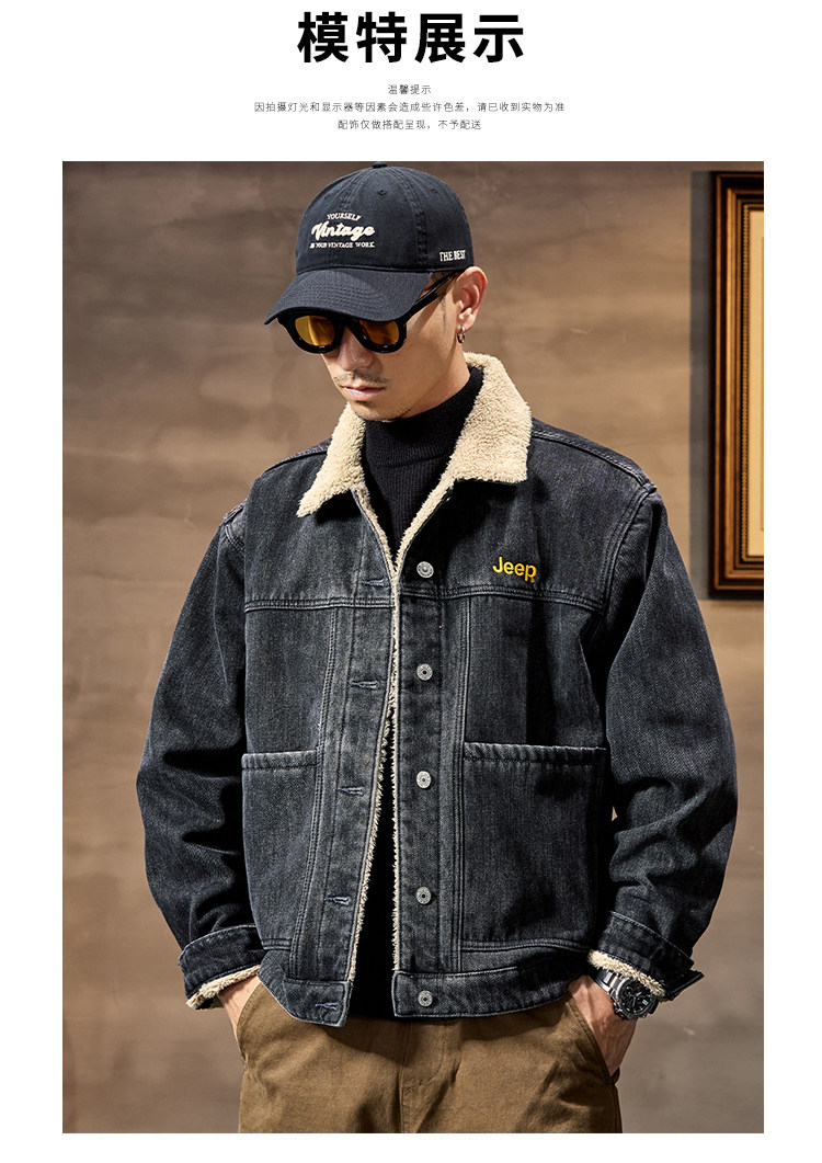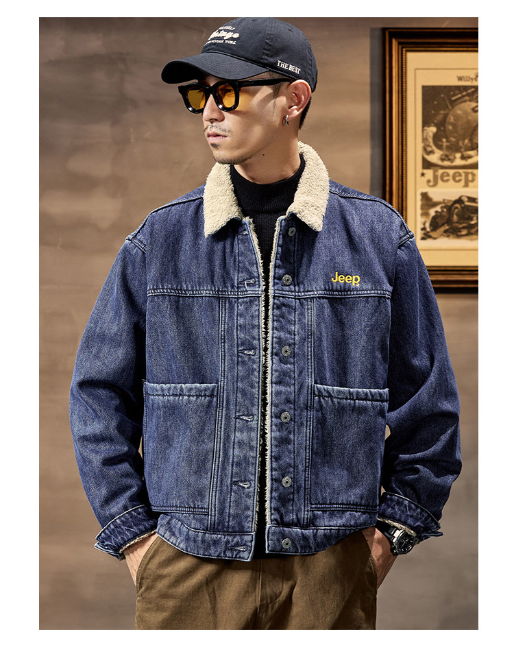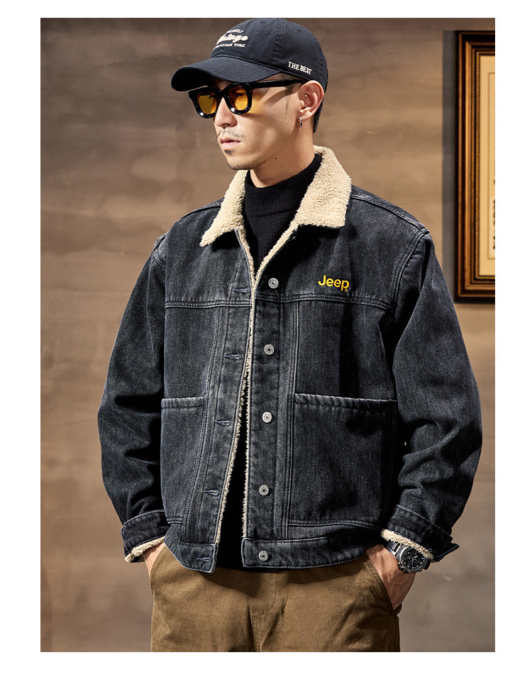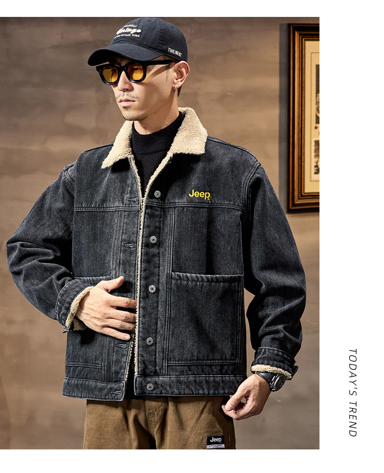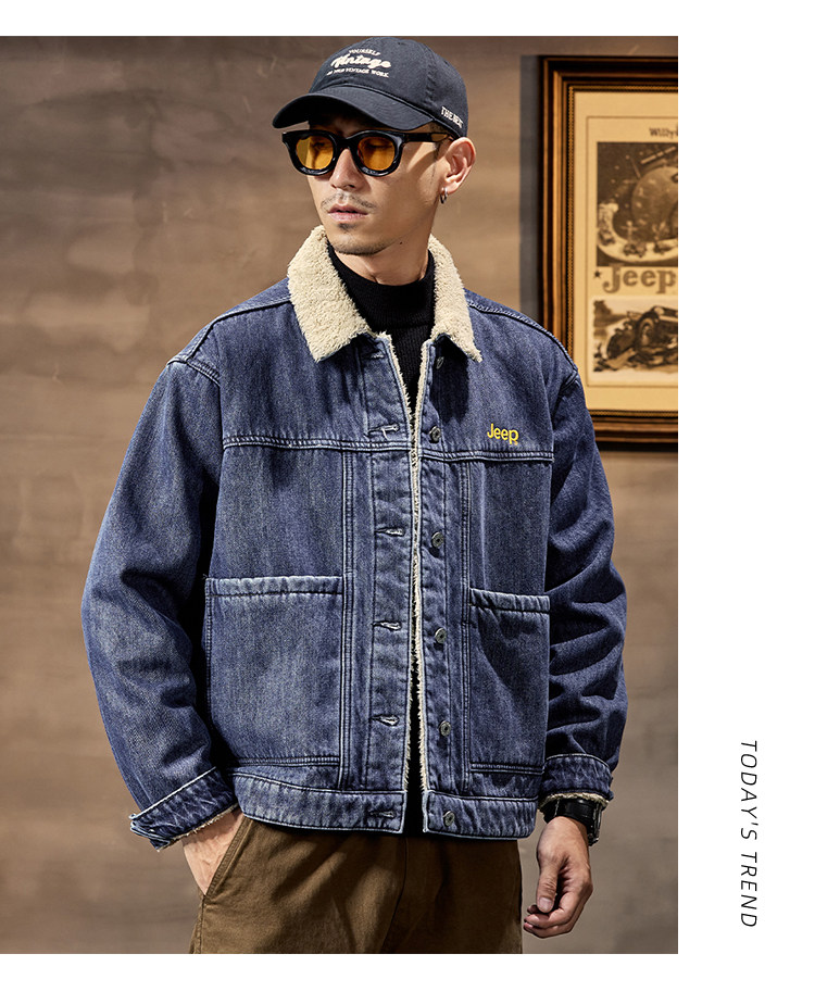 Jeep Men's Lamb Wool Denim Jacket 2025 Autumn and Winter Warm Fleece-Lined Thickened Loose Casual Jacket