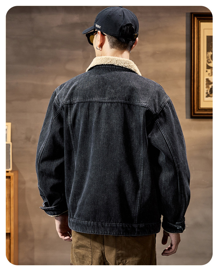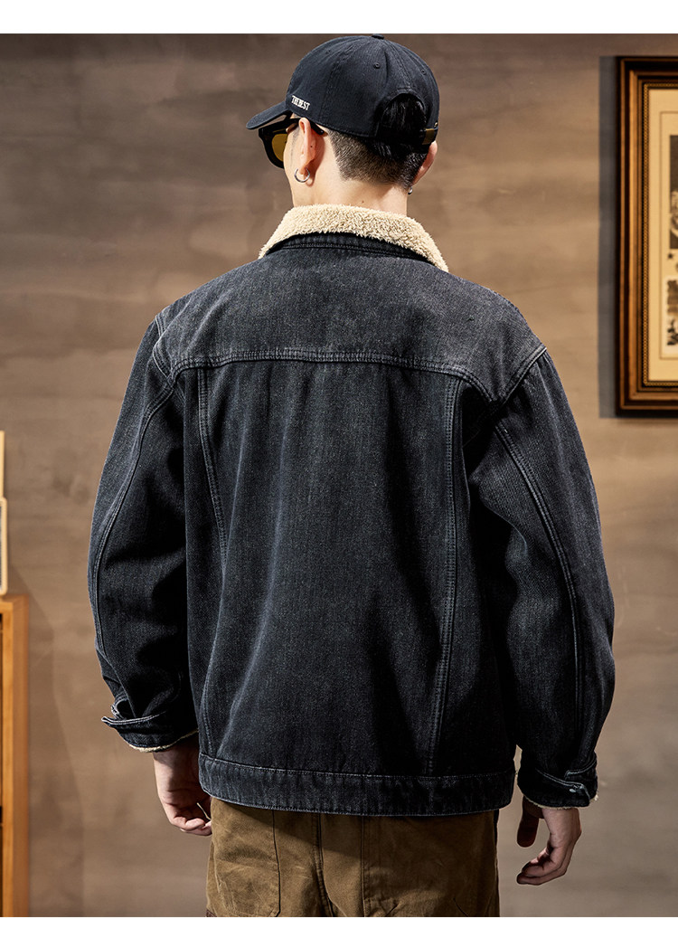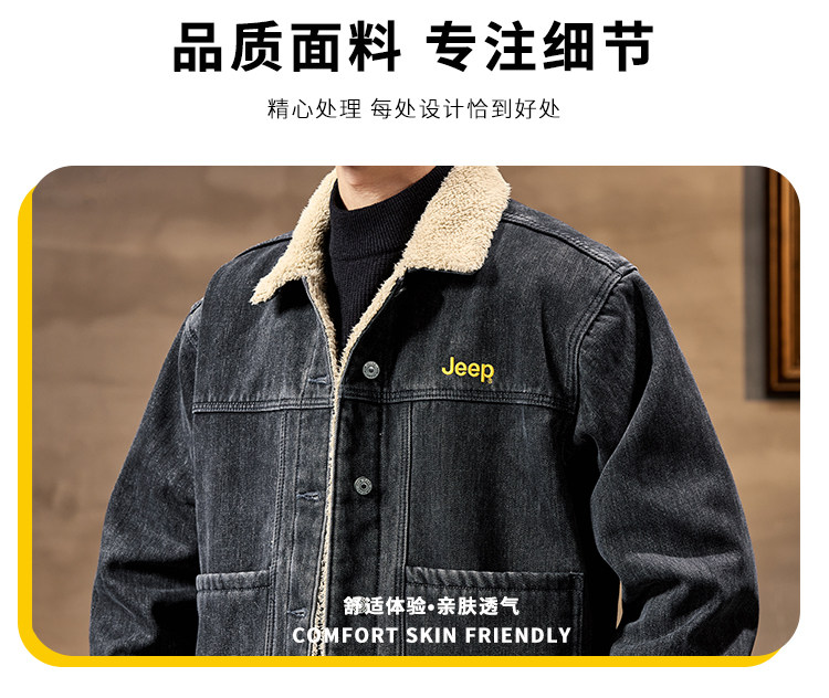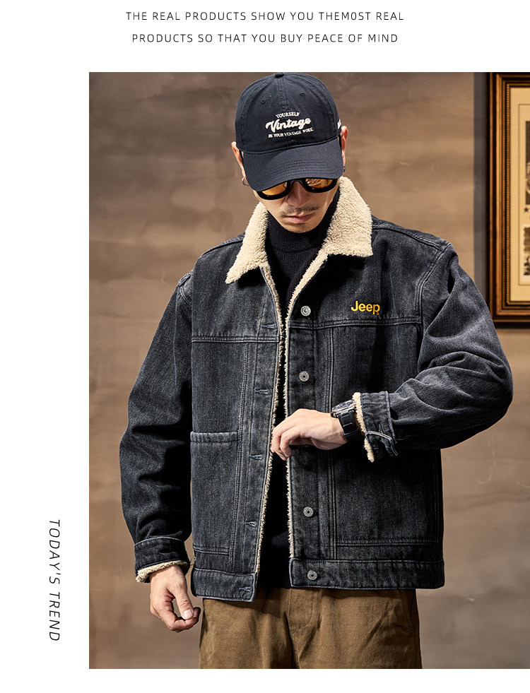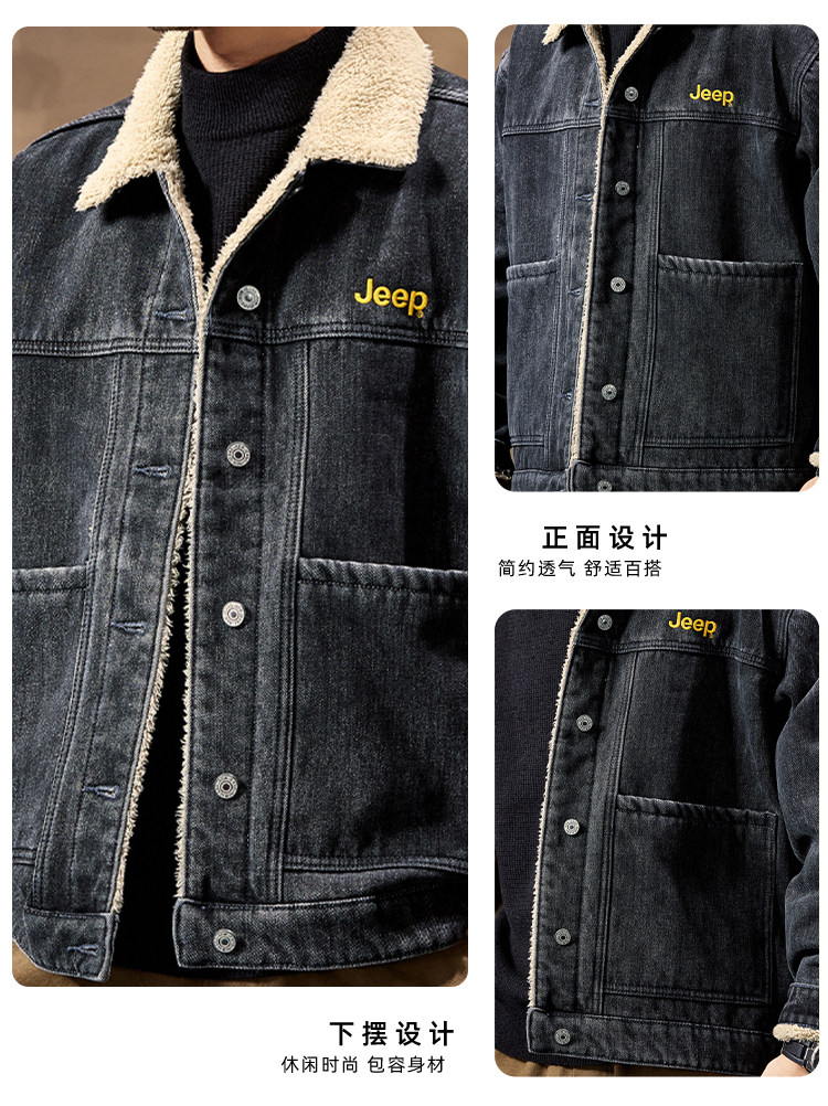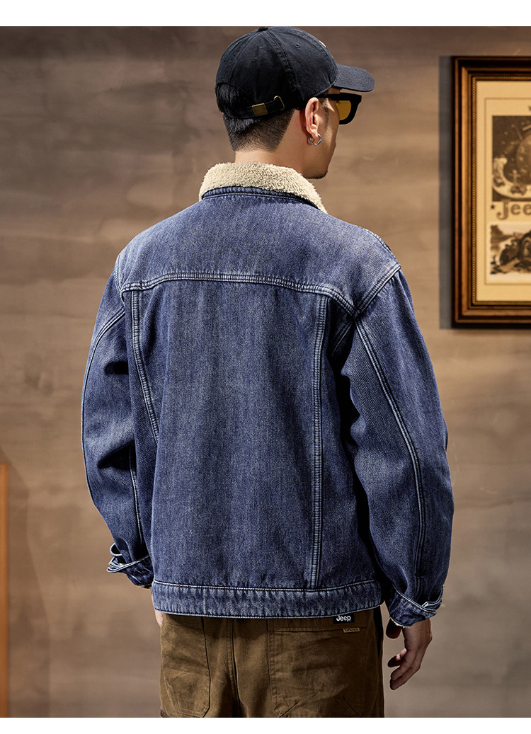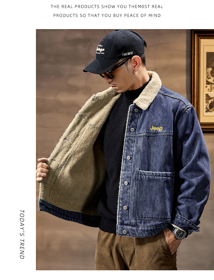 Jeep Men's Lamb Wool Denim Jacket 2025 Autumn and Winter Warm Fleece-Lined Thickened Loose Casual Jacket