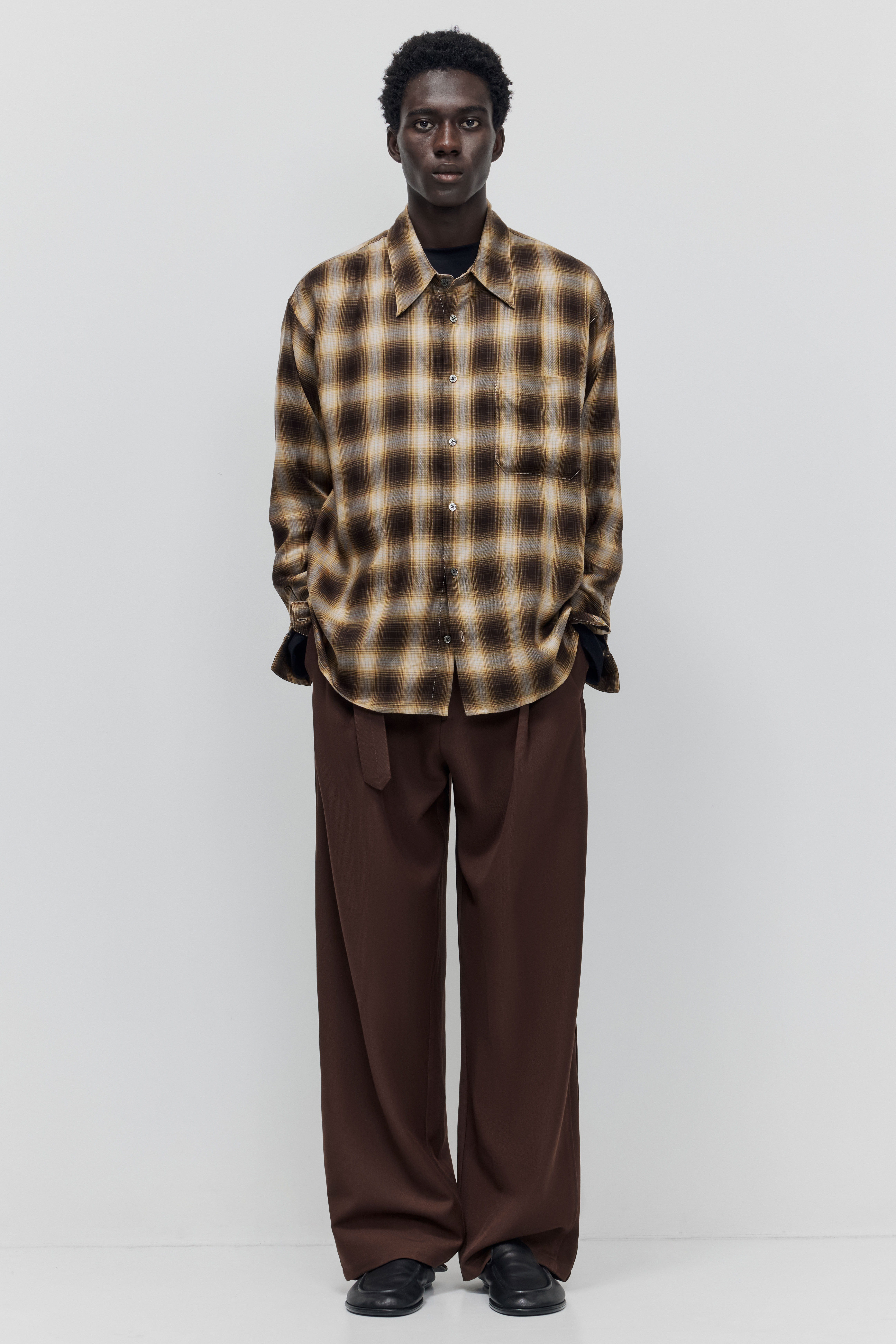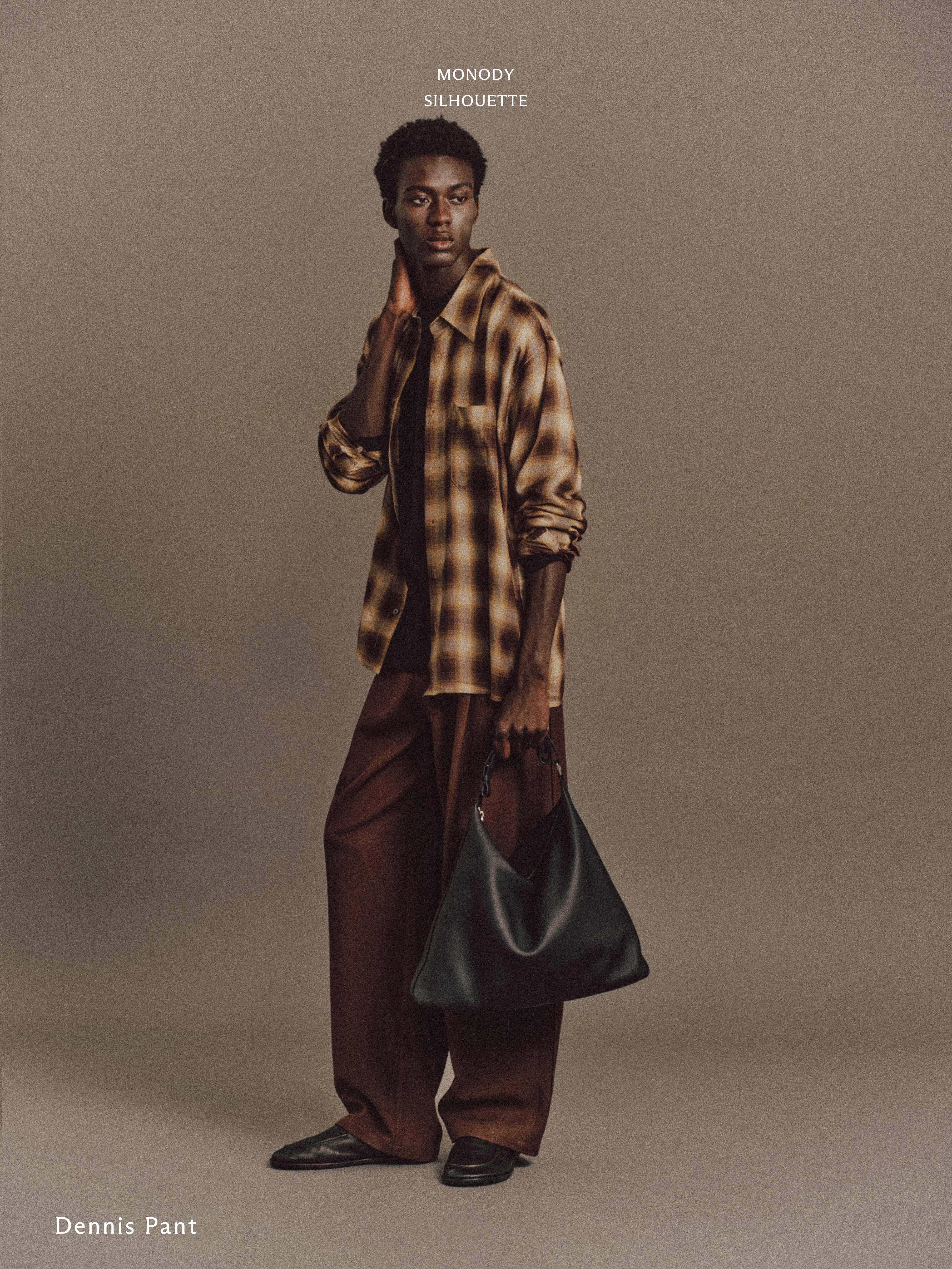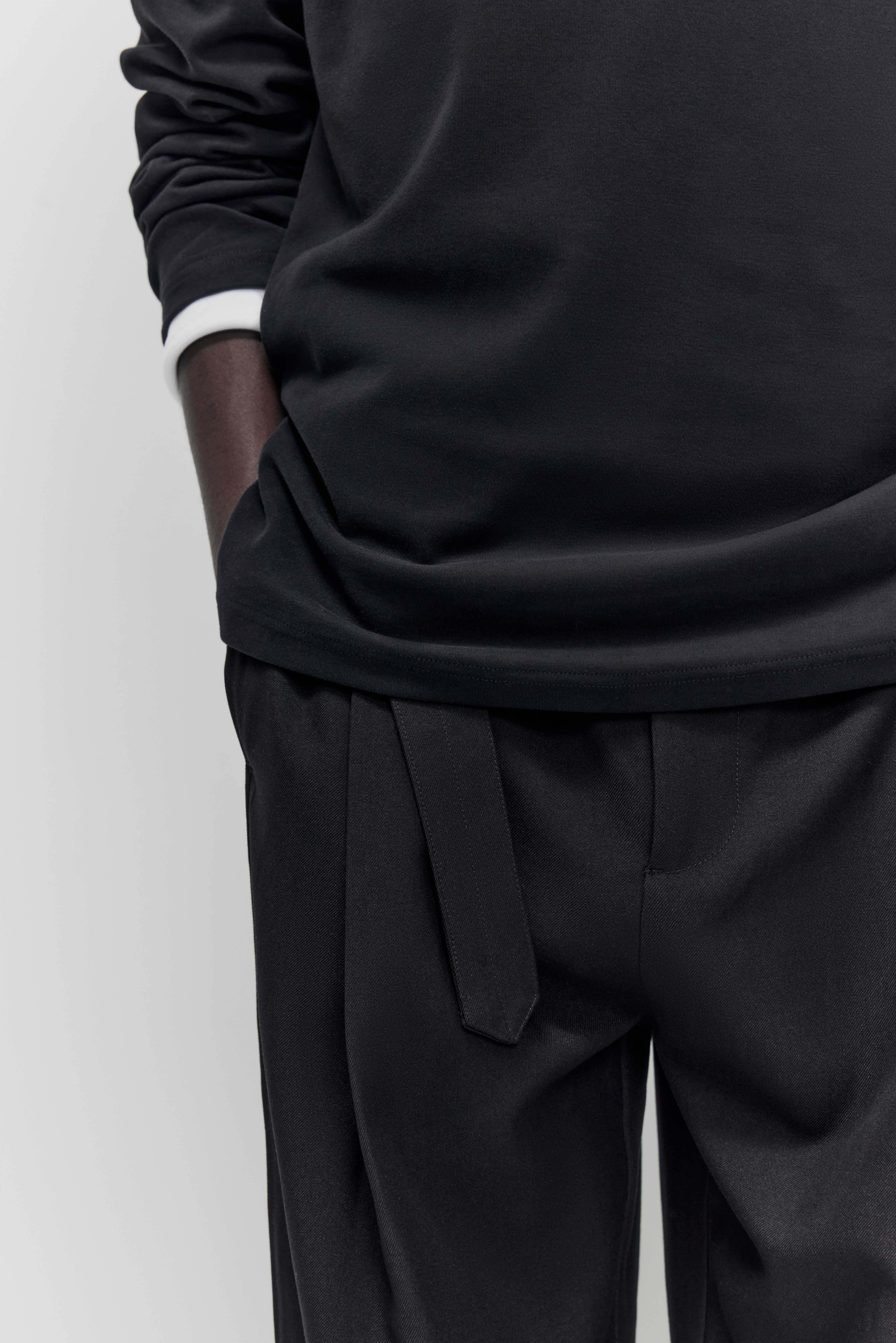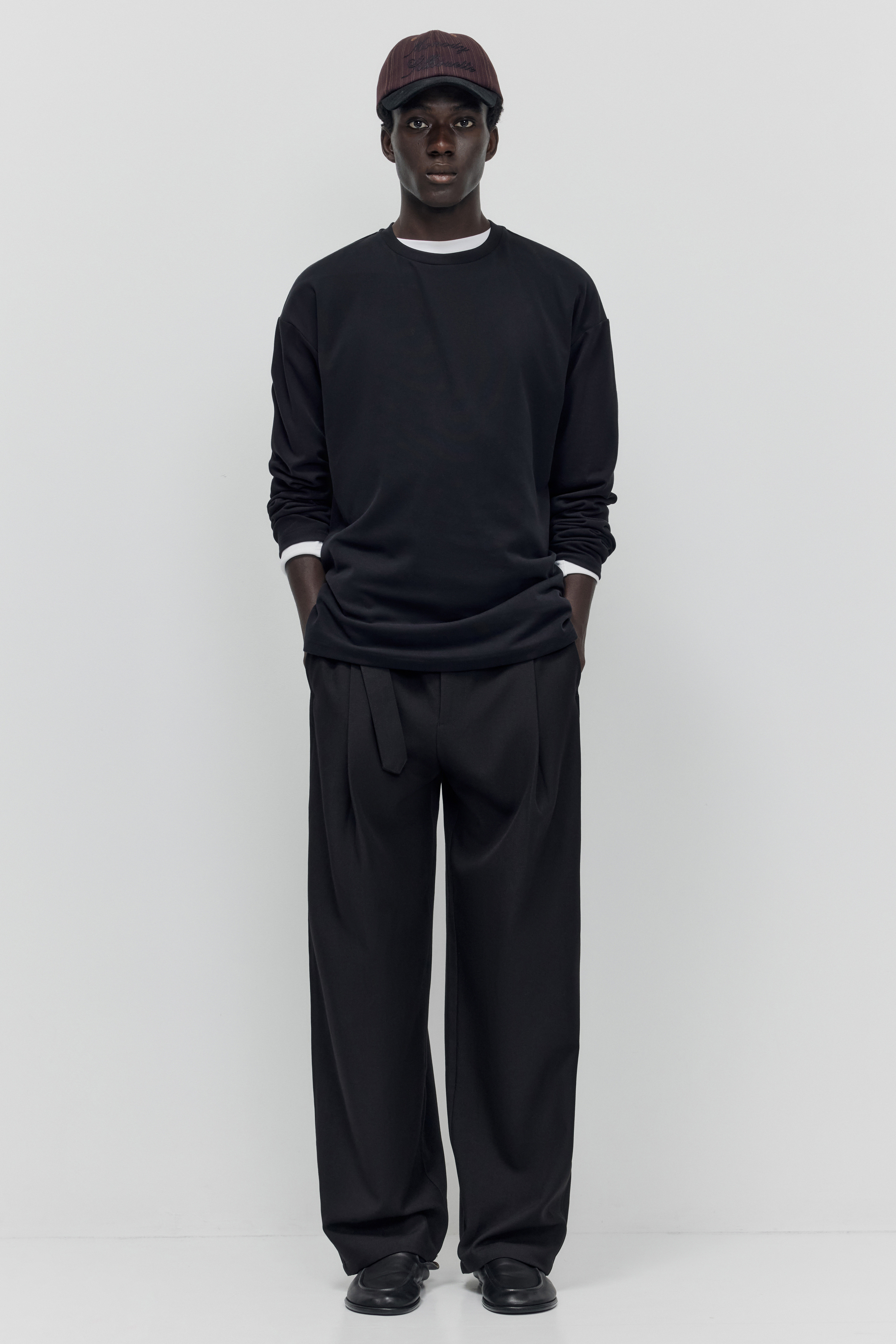 「Dennis」Belted Pleated Loose Easy-Care Trousers Monody Silhouette