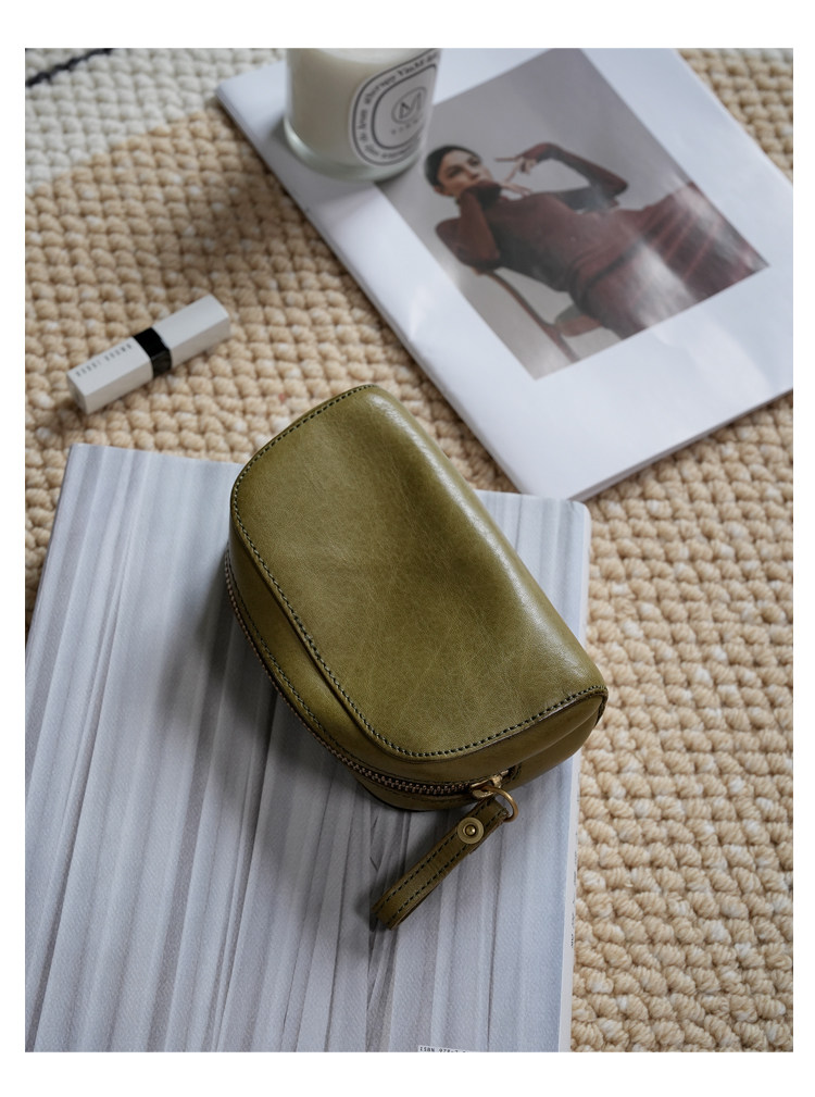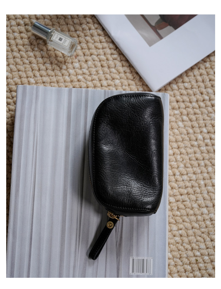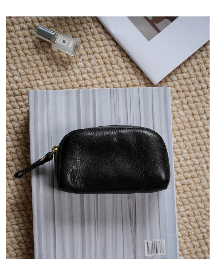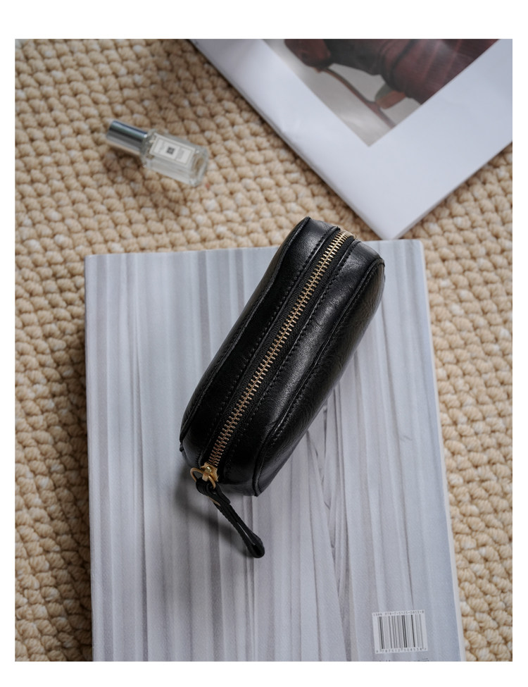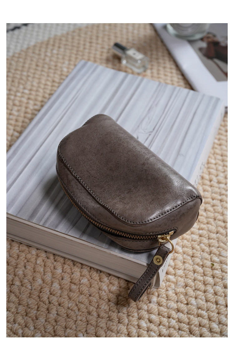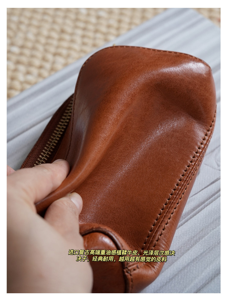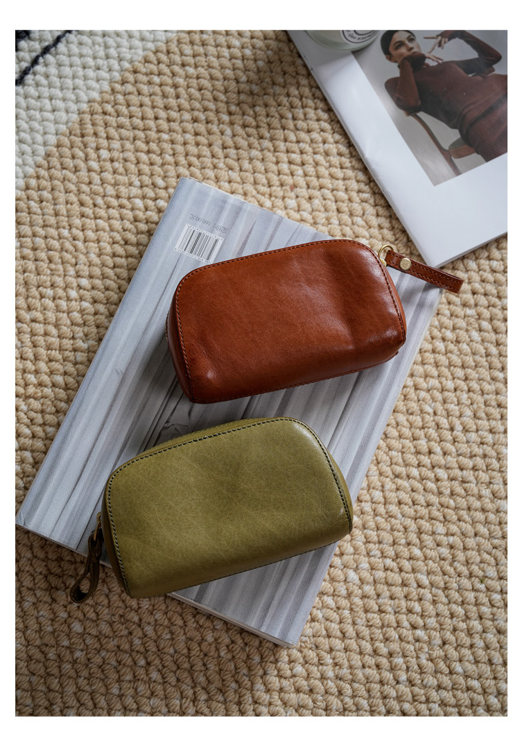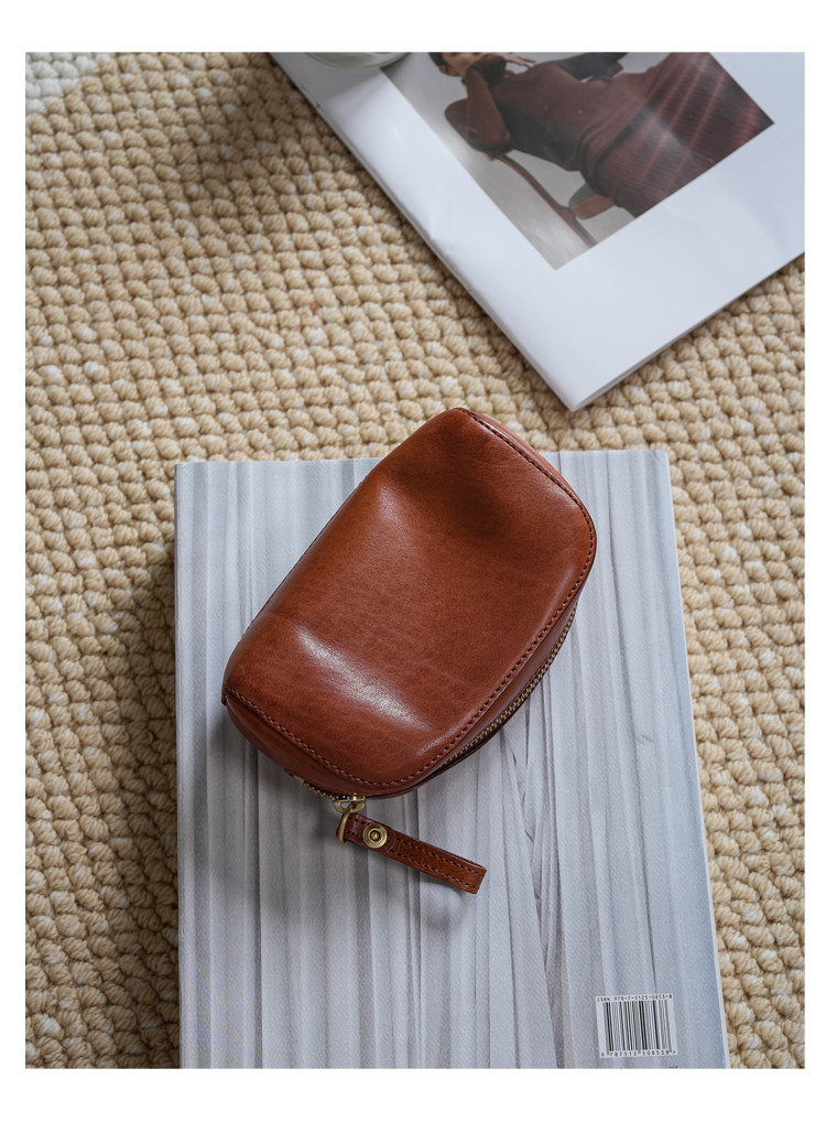 Genuine Leather Vintage Vegetable-Tanned First-Layer Cowhide Women's Compact Coin Key Earphone Makeup Storage Zipper Clutch Bag for Women