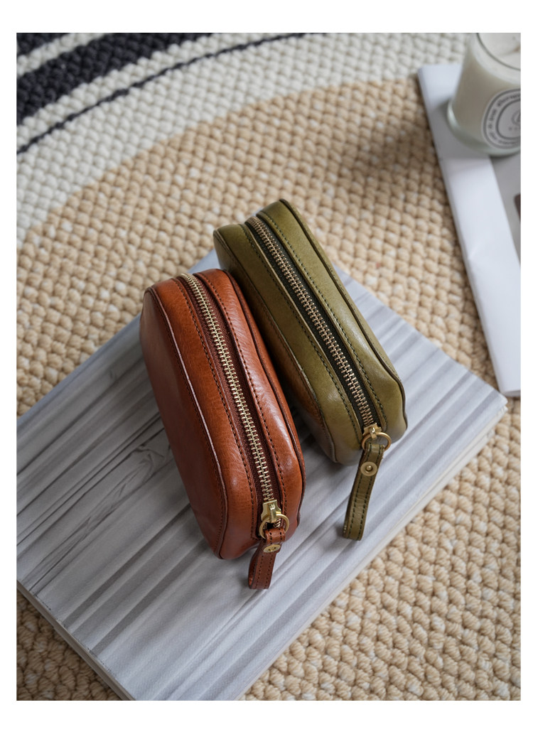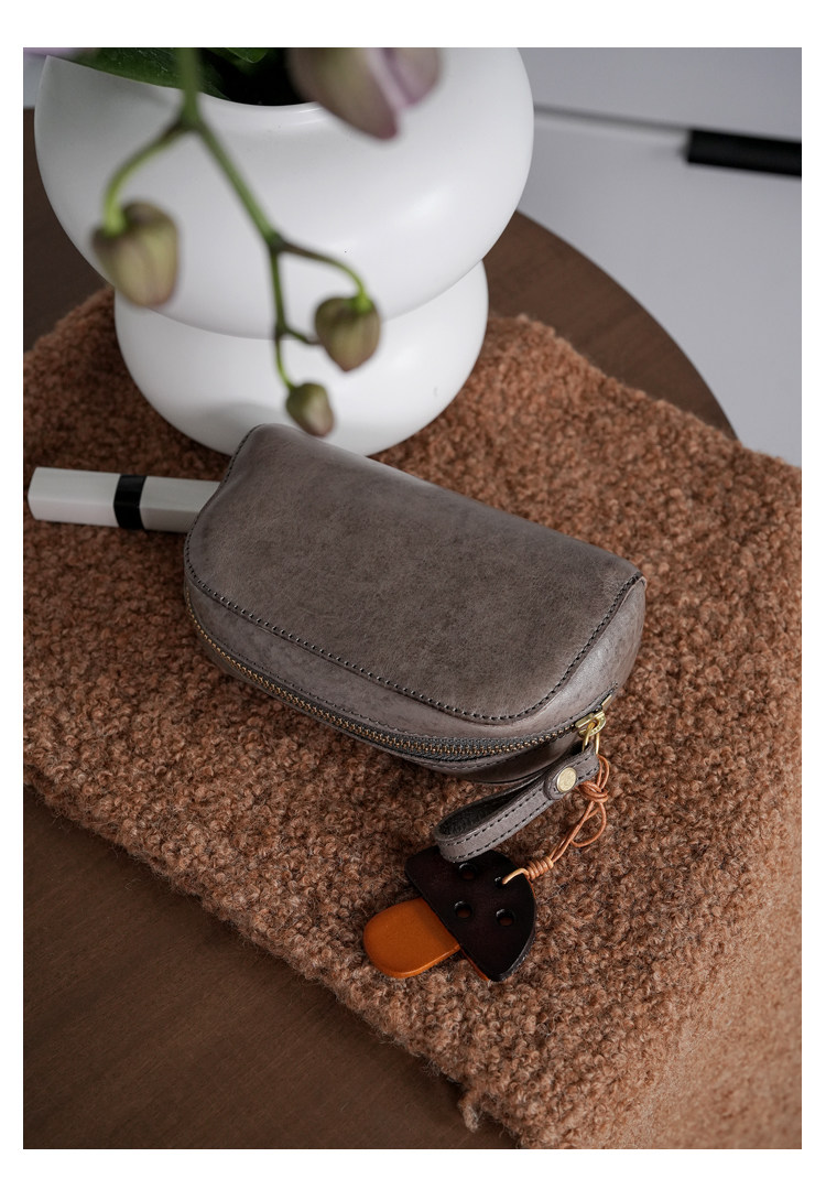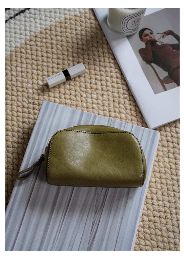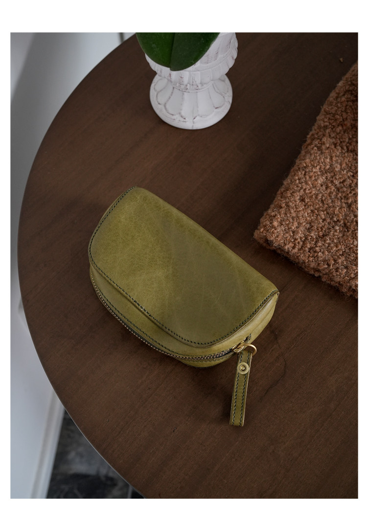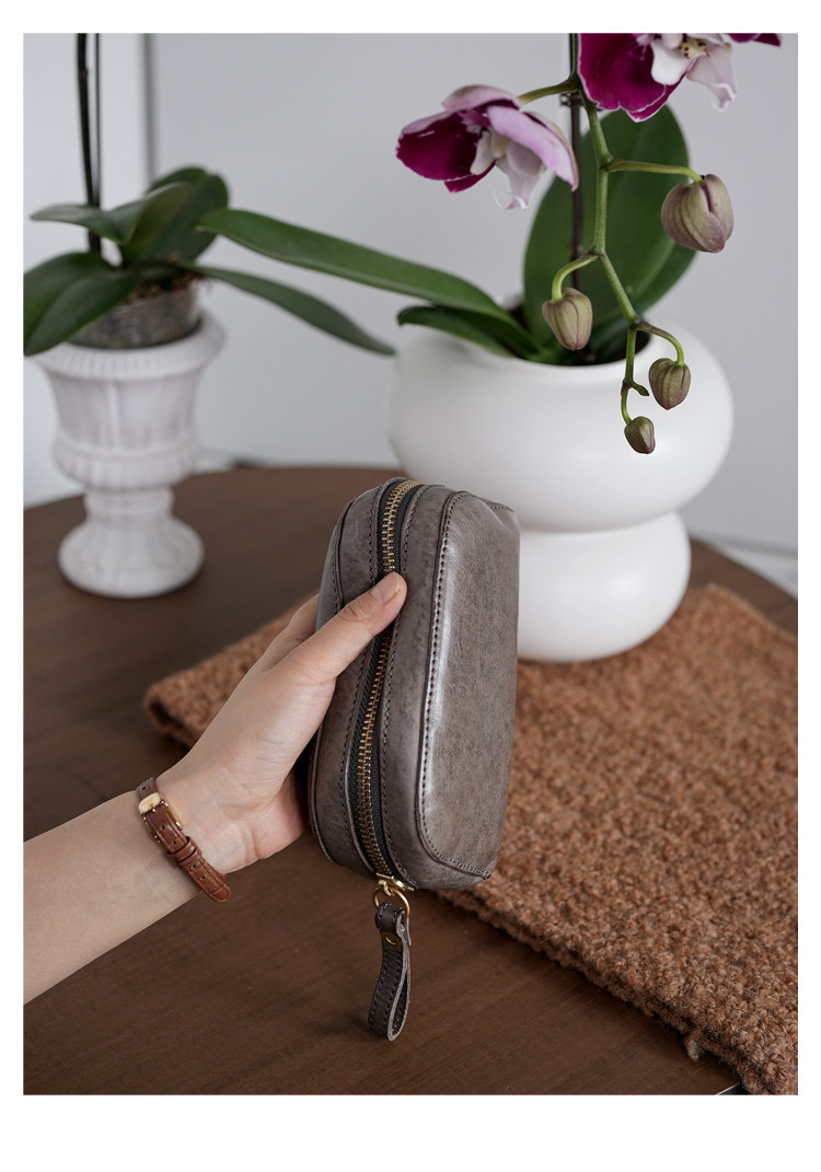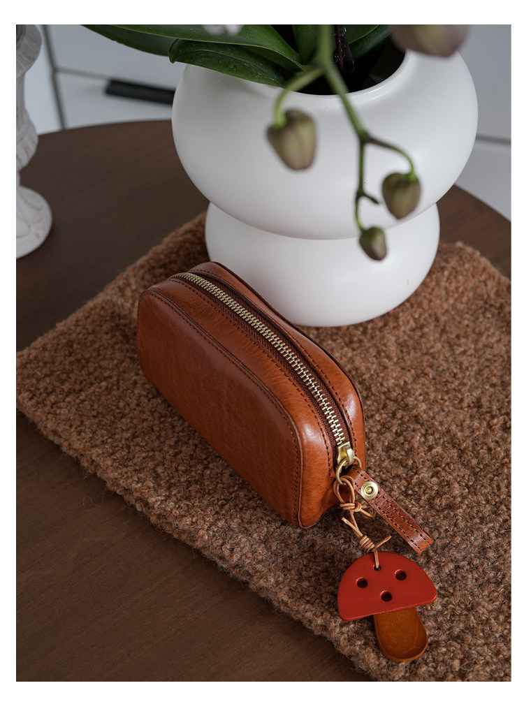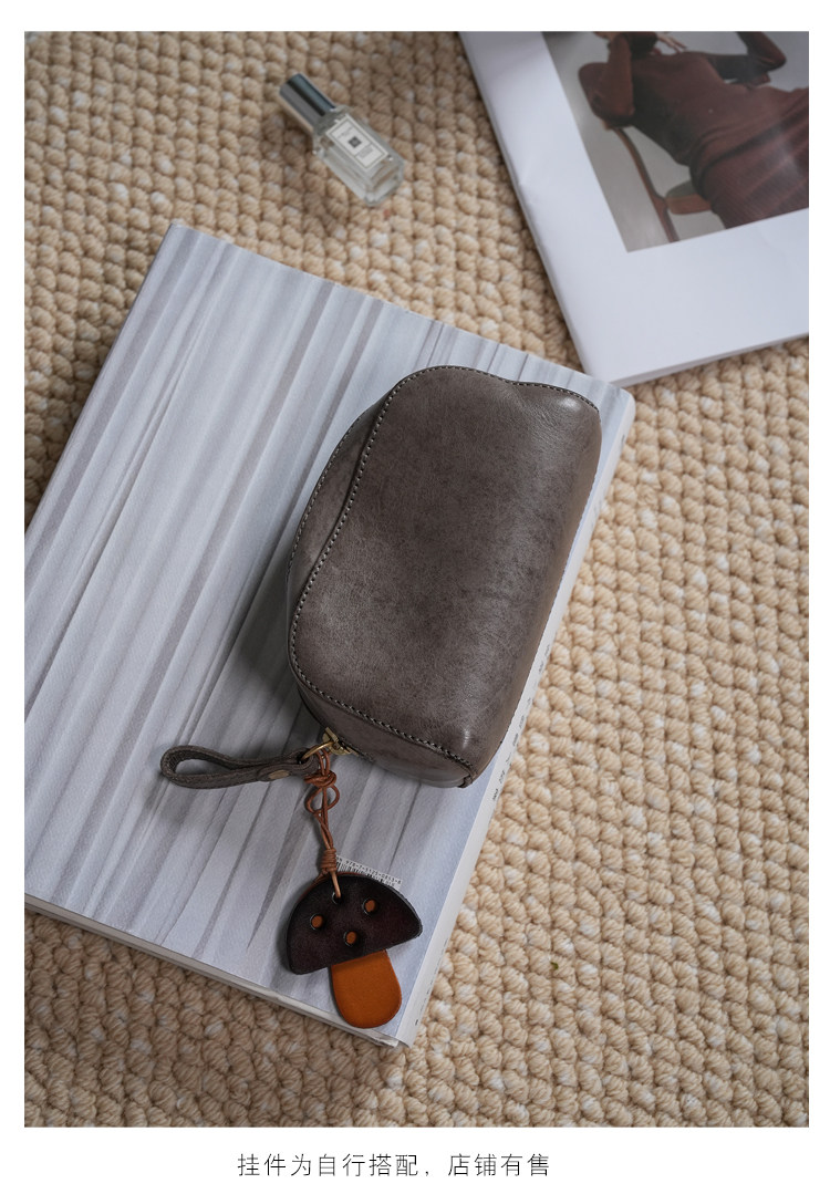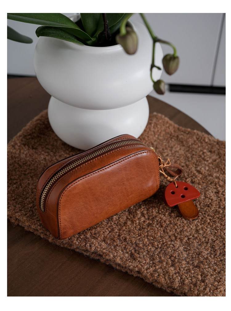 Genuine Leather Vintage Vegetable-Tanned First-Layer Cowhide Women's Compact Coin Key Earphone Makeup Storage Zipper Clutch Bag for Women