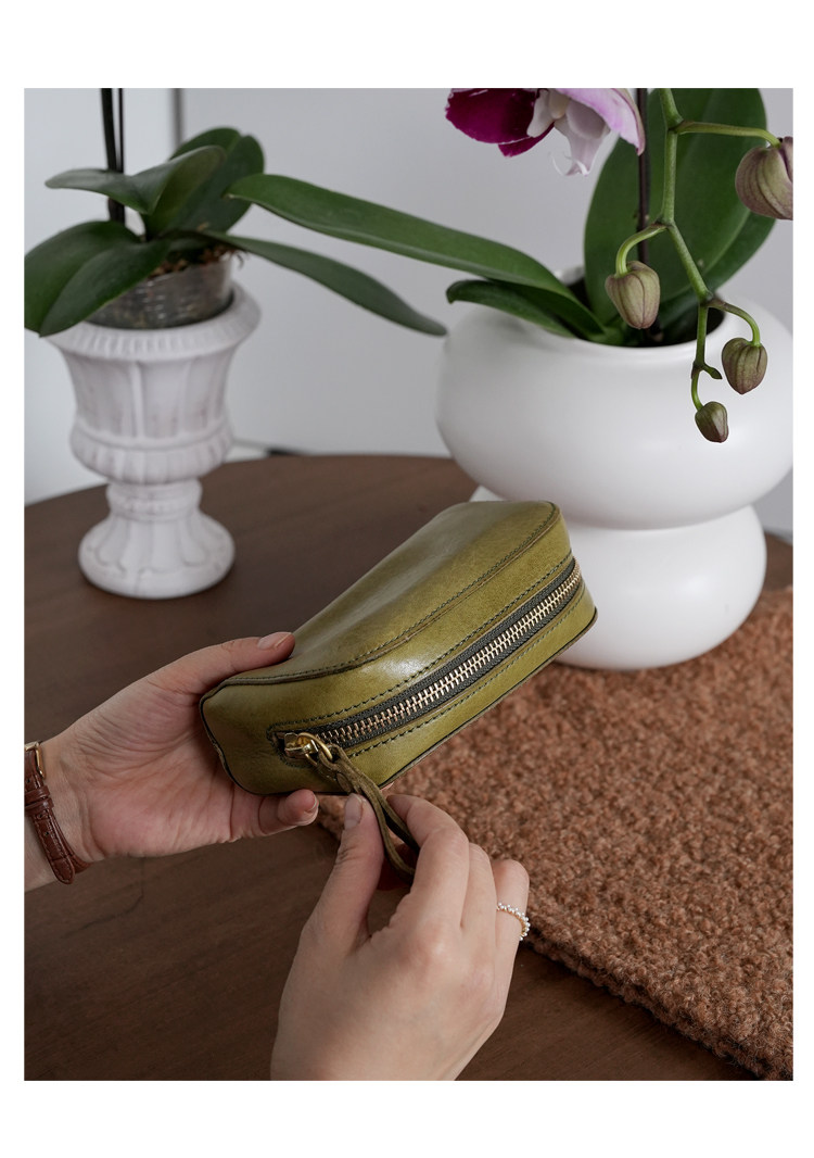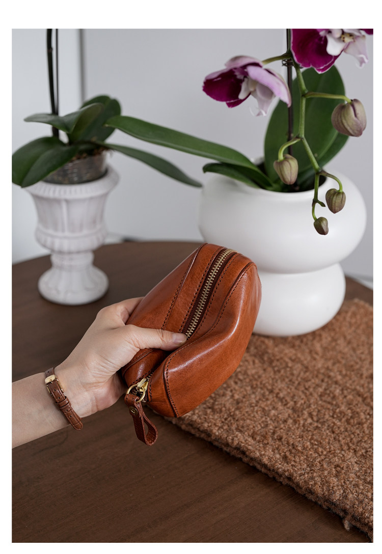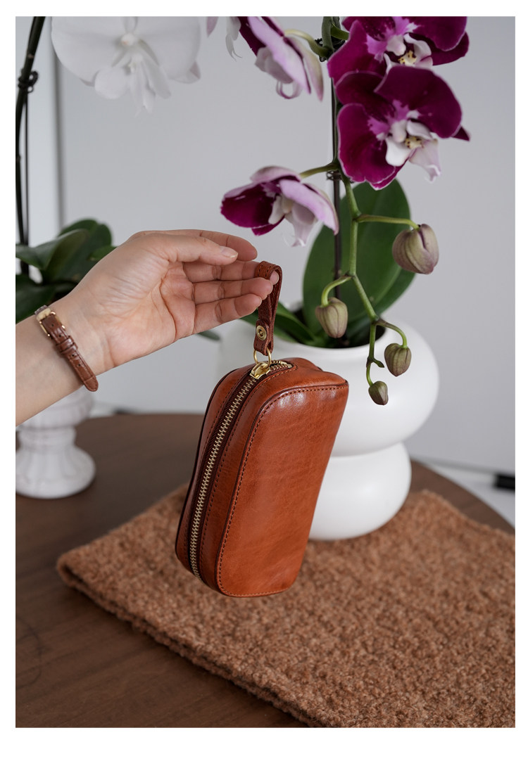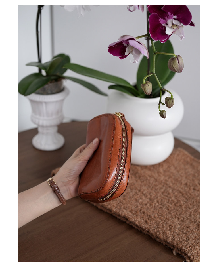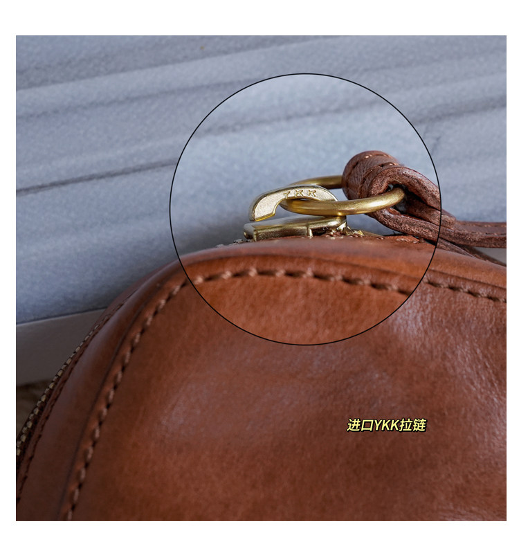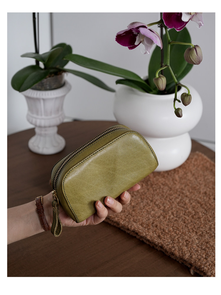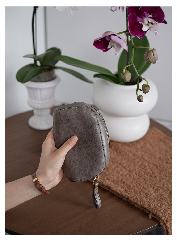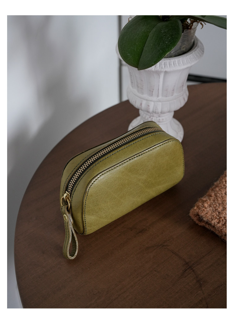 Genuine Leather Vintage Vegetable-Tanned First-Layer Cowhide Women's Compact Coin Key Earphone Makeup Storage Zipper Clutch Bag for Women