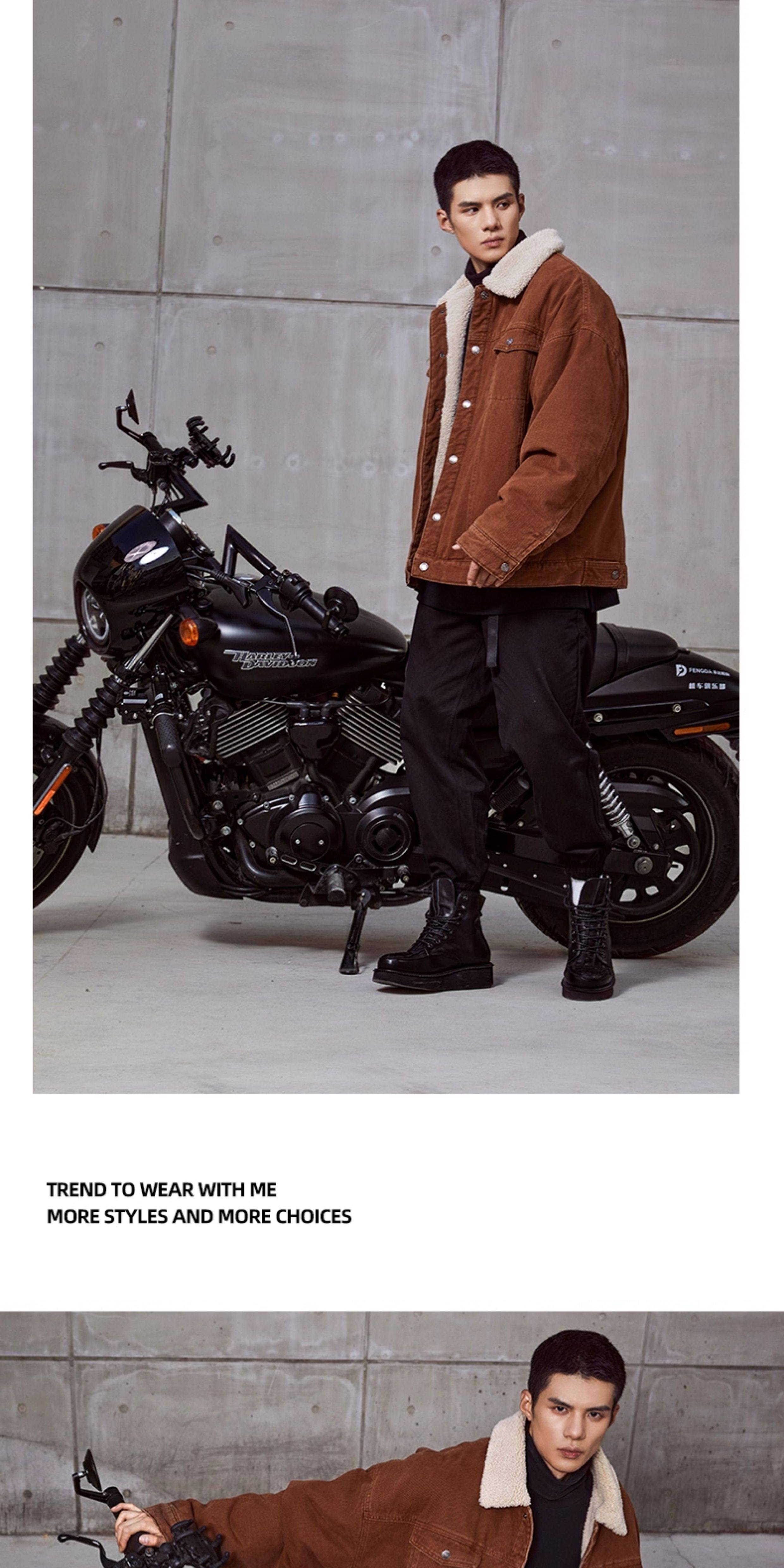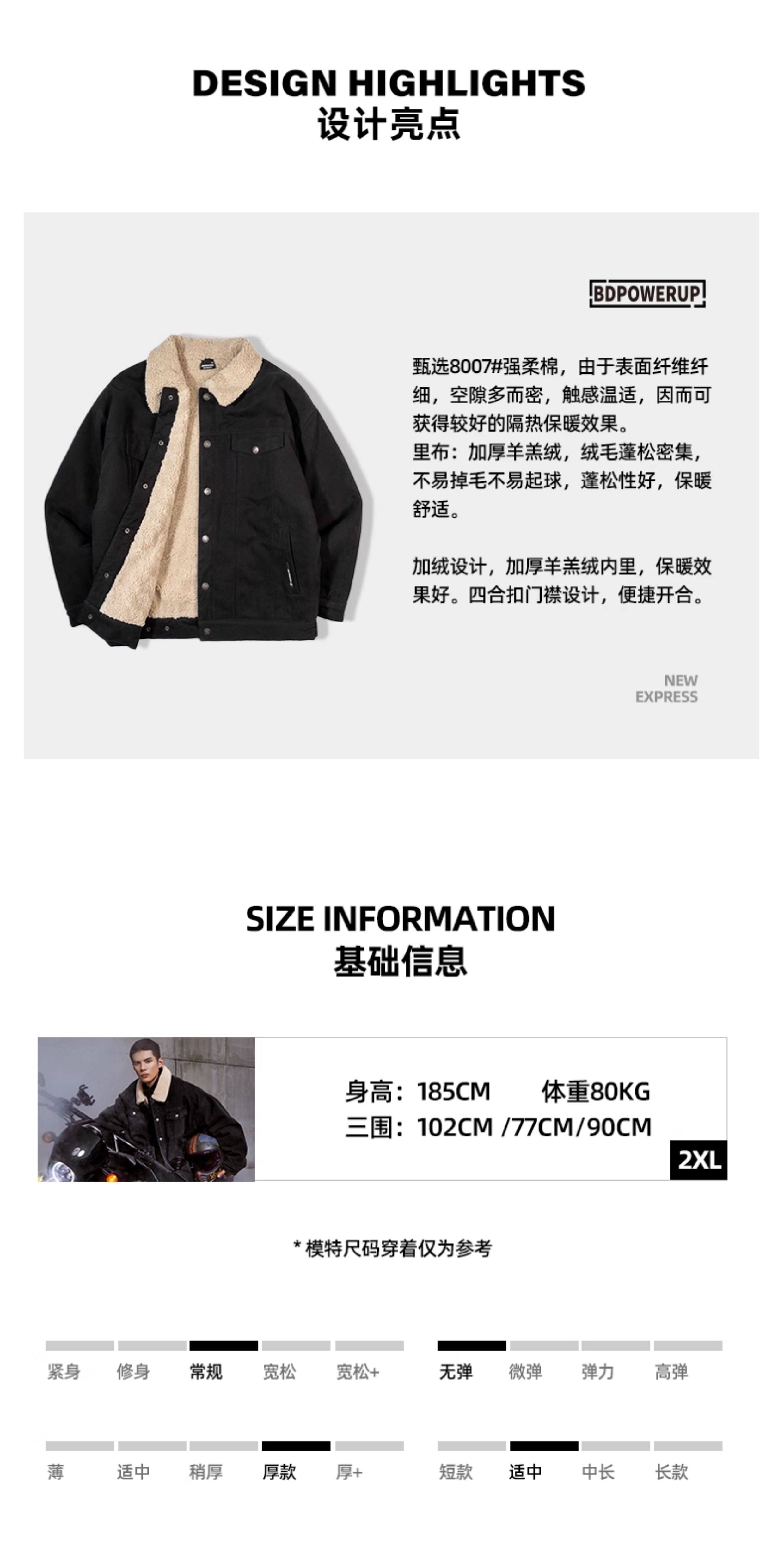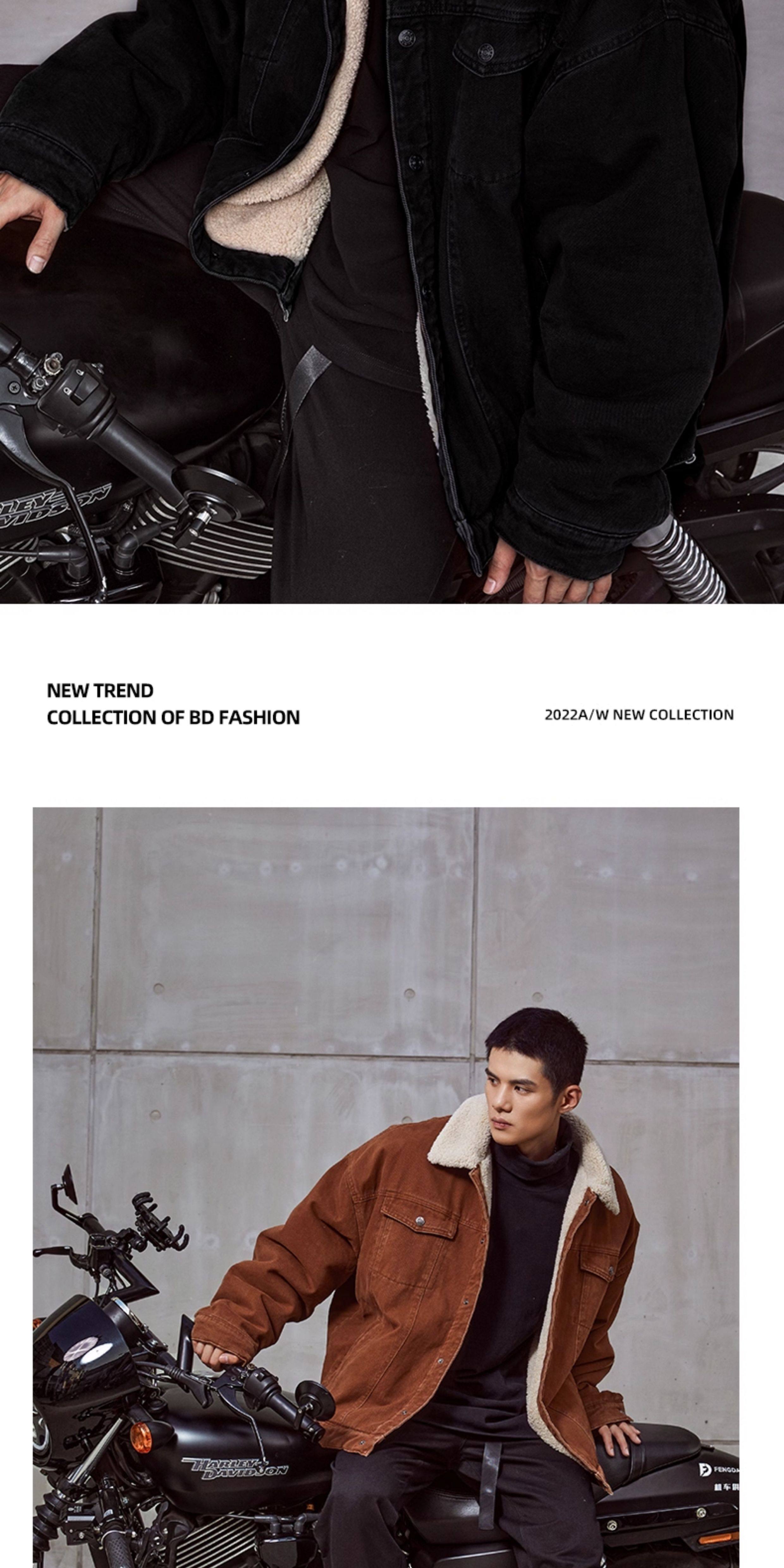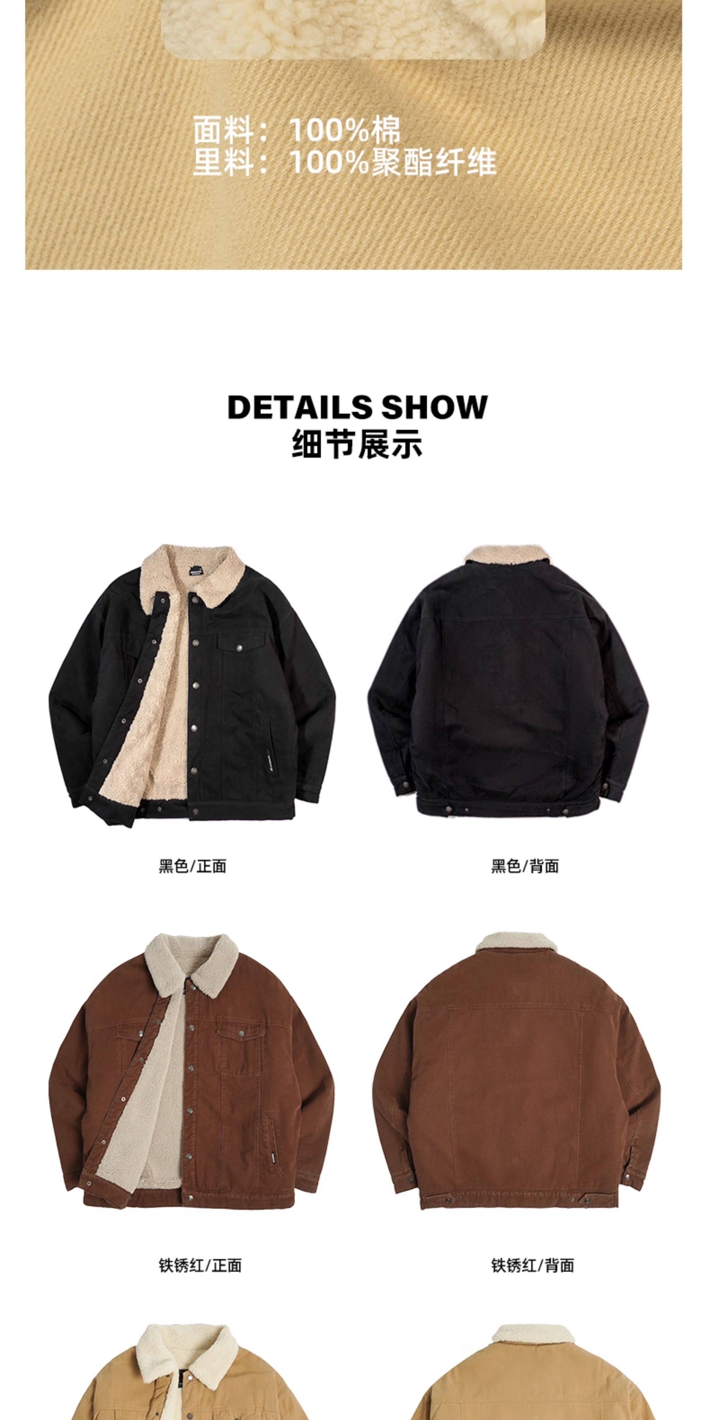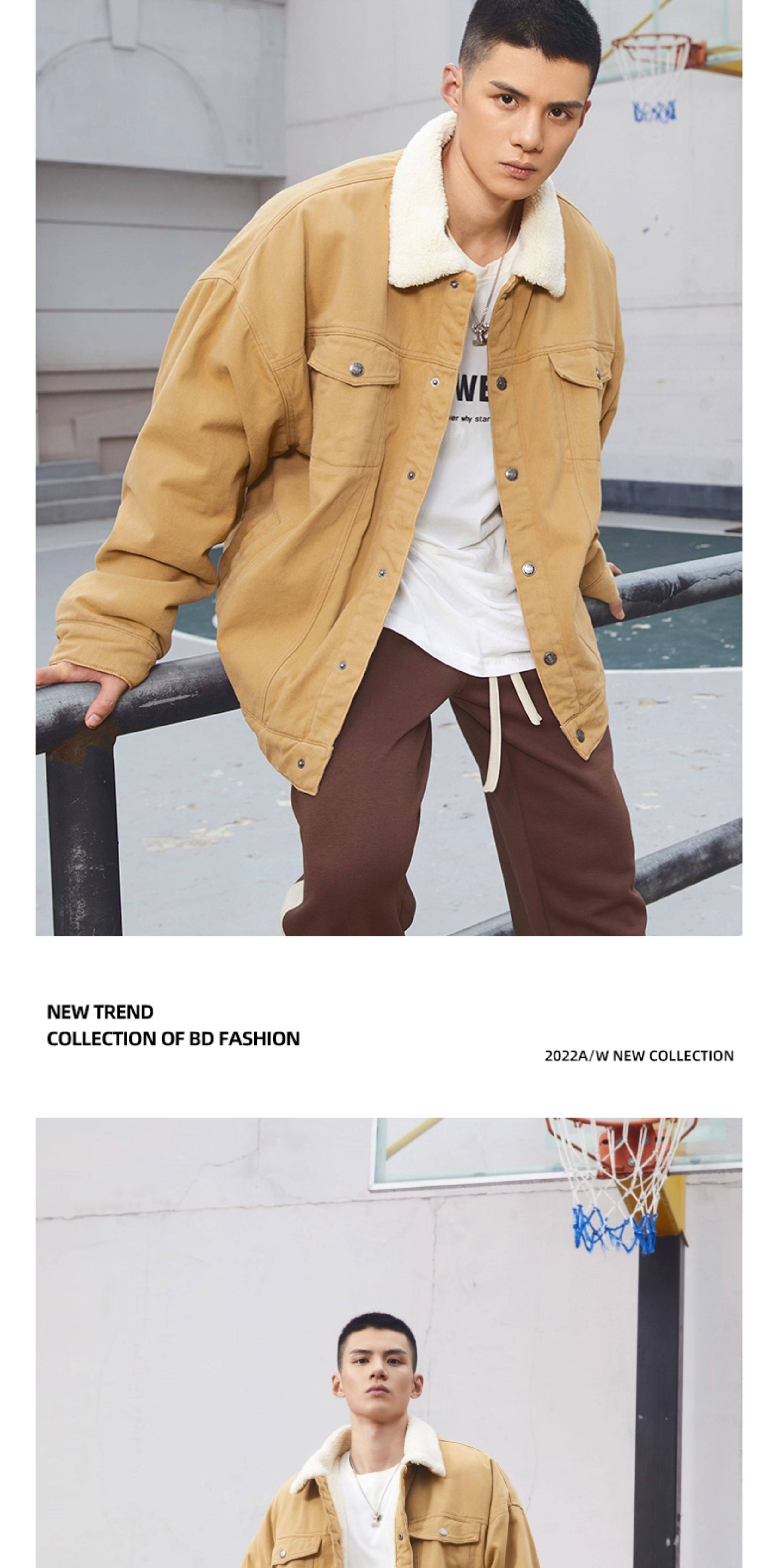 Bdpowerup Winter Barn Style Thickened Lamb Wool Jacket Men's Loose Fleece-Lined Warm Cotton Jacket Coat