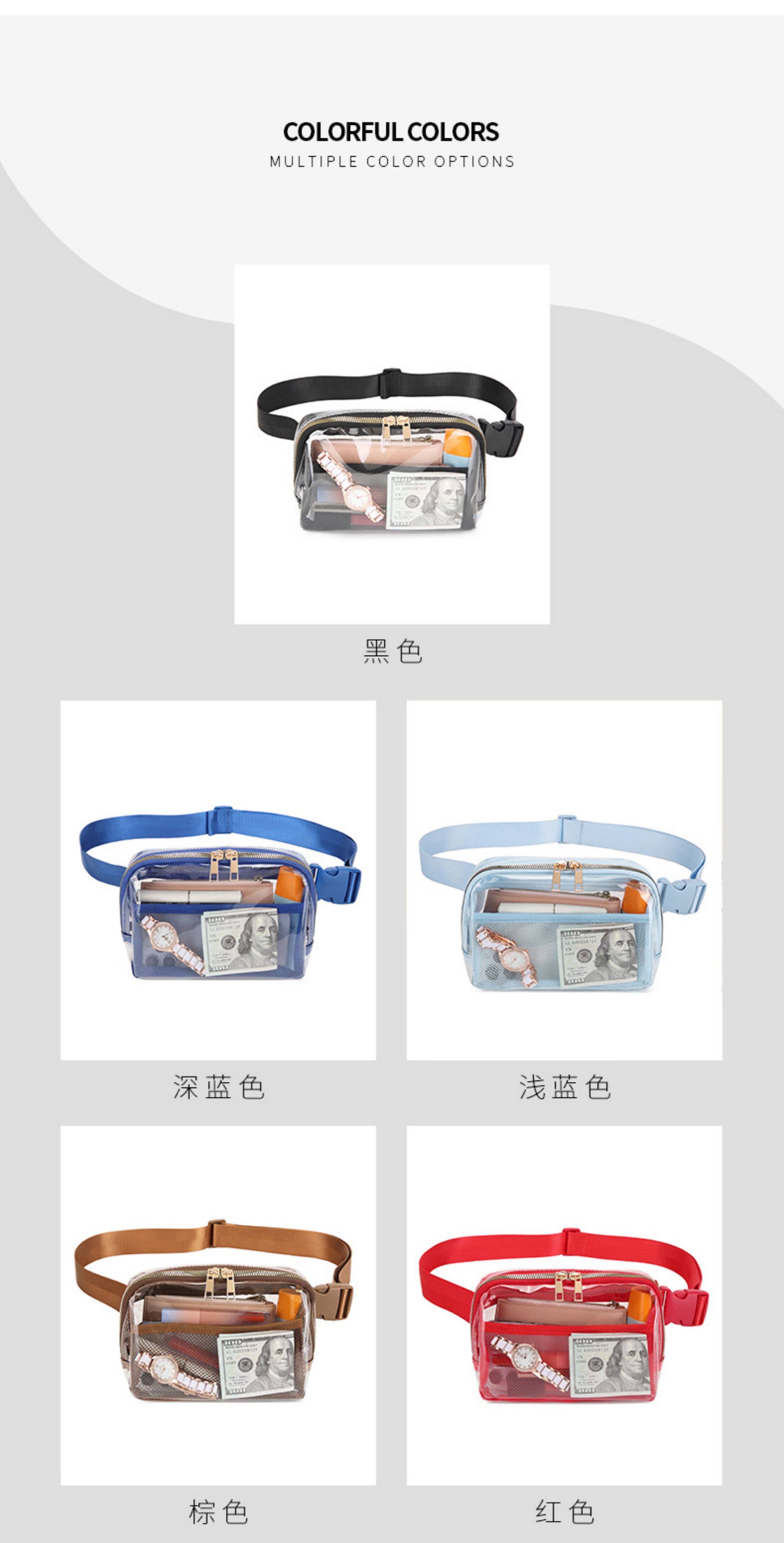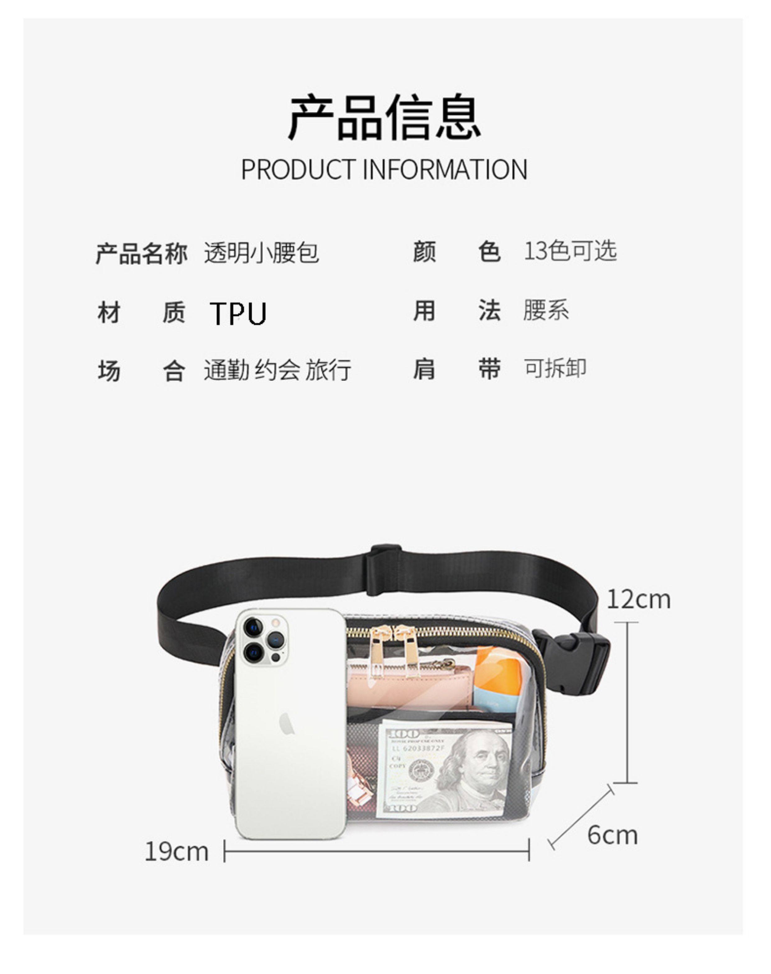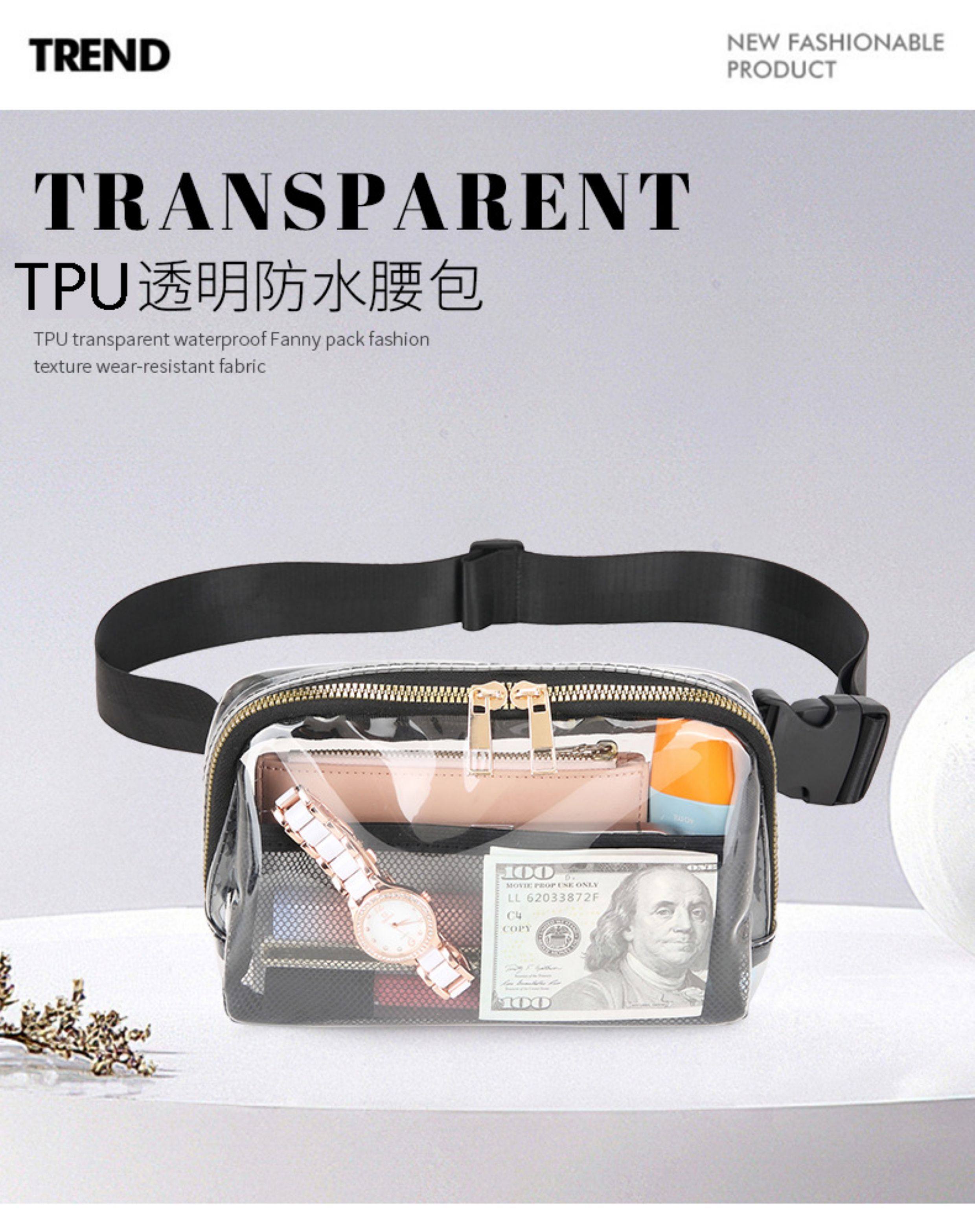 New Lulu-Style Tpu Waterproof Transparent Waist Bag for Outdoor Sports Running Crossbody Bag with Adjustable Belt Wallet