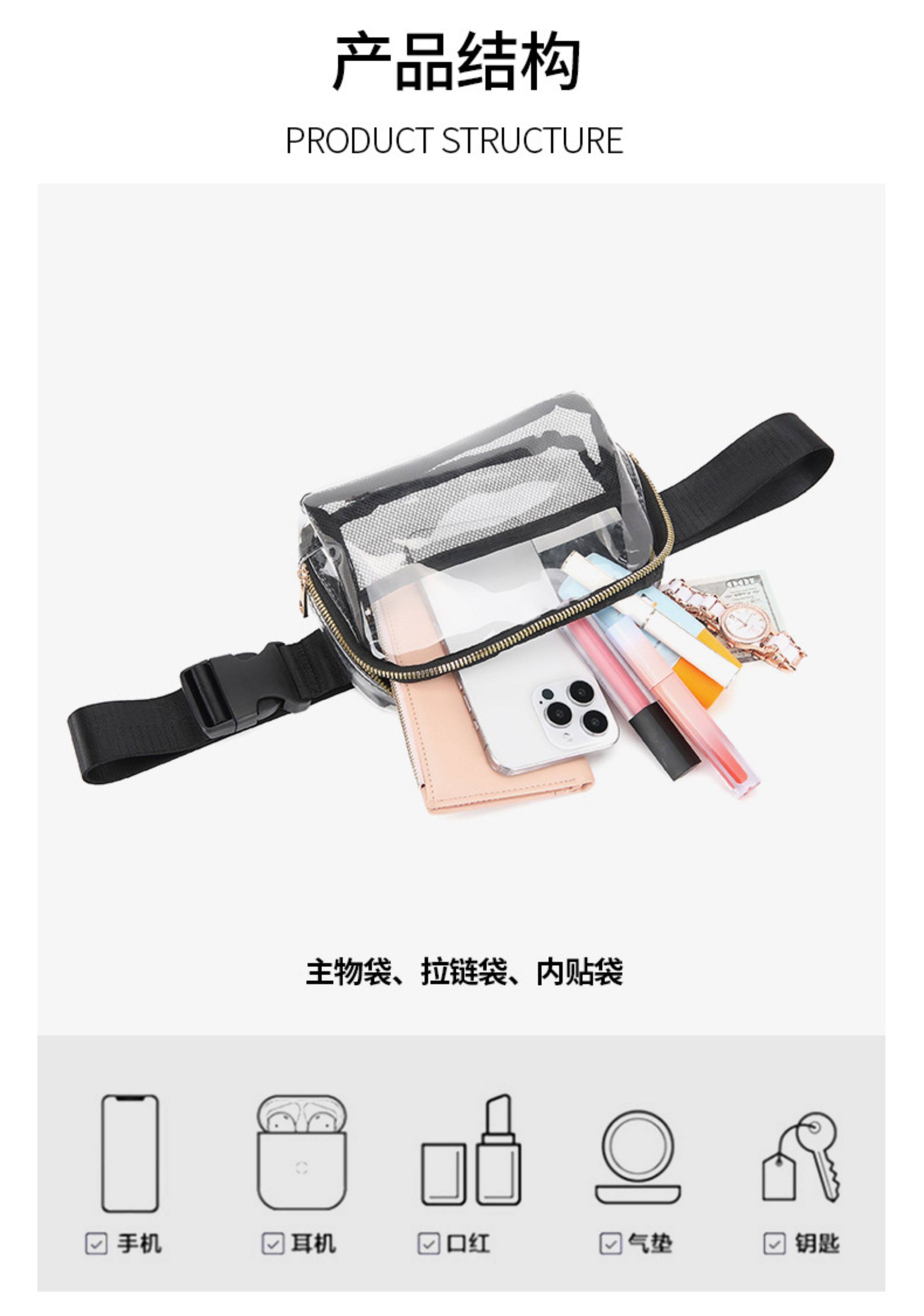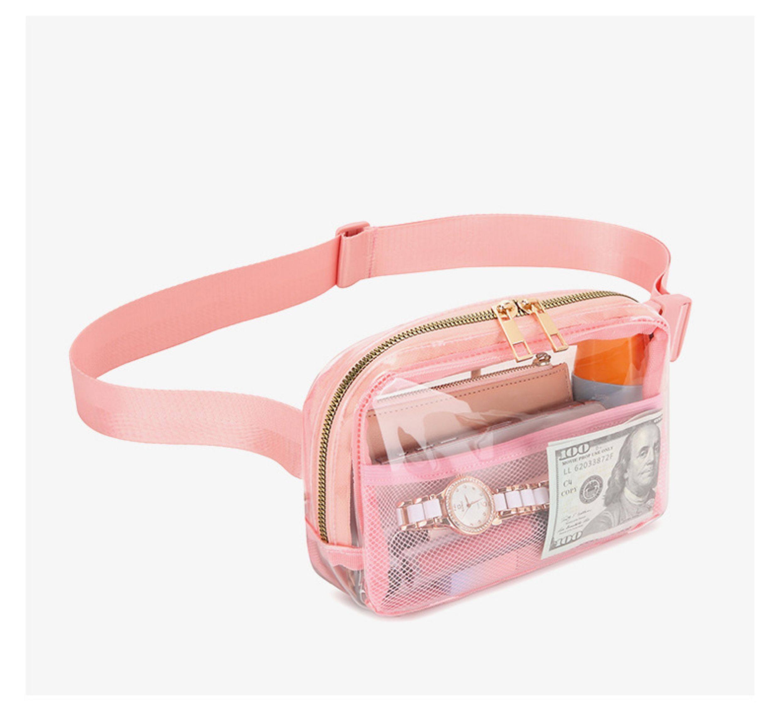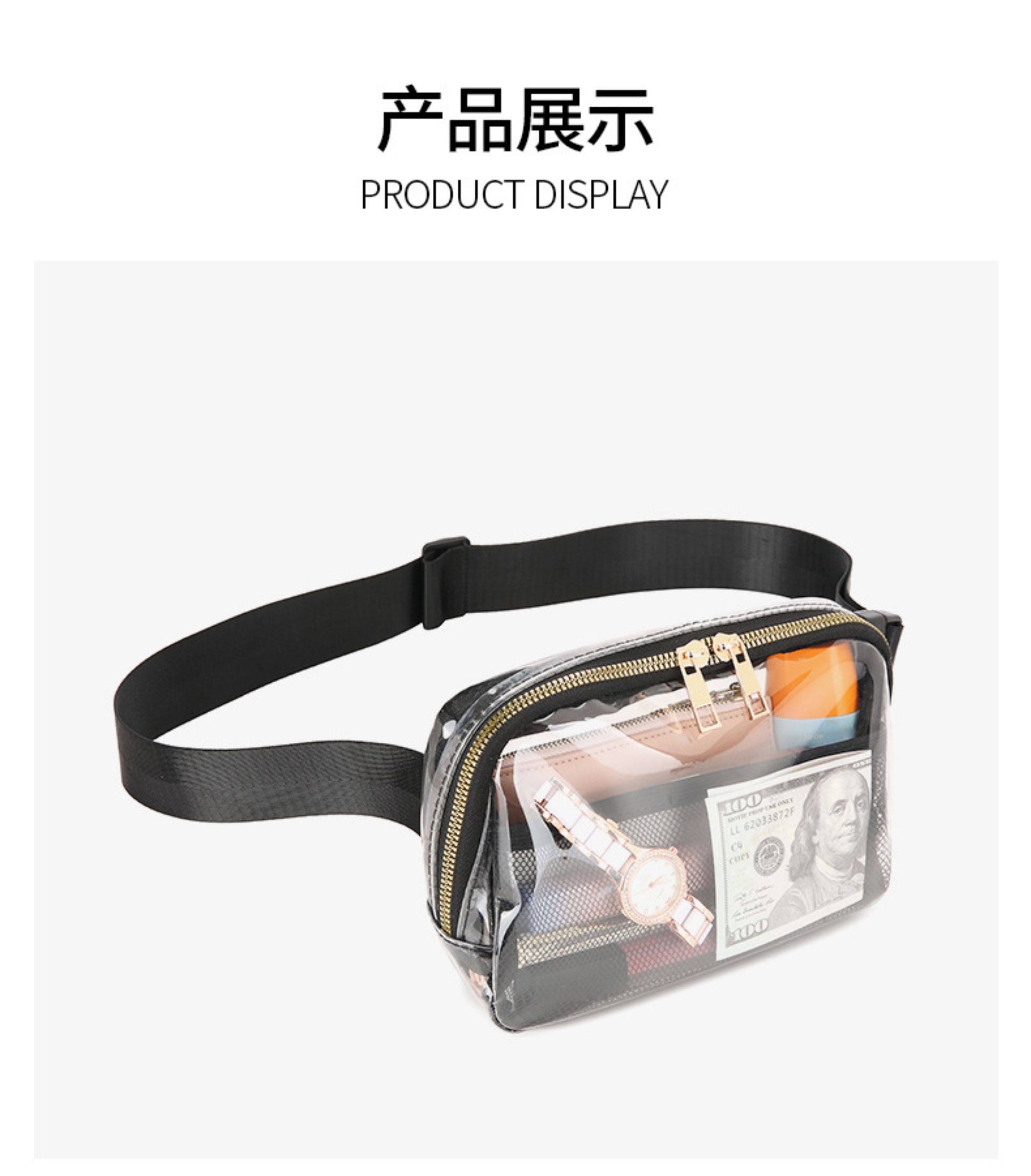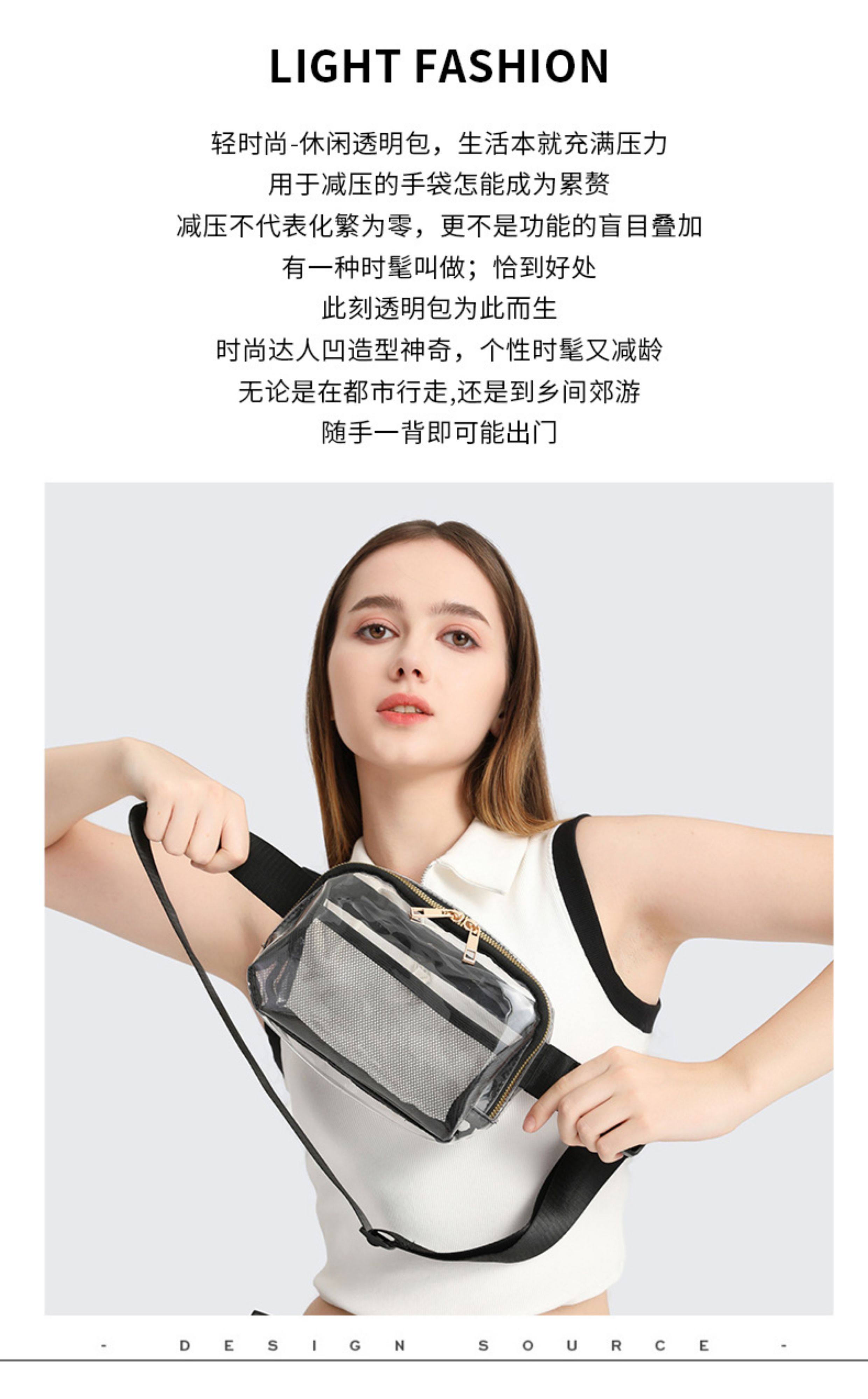 New Lulu-Style Tpu Waterproof Transparent Waist Bag for Outdoor Sports Running Crossbody Bag with Adjustable Belt Wallet