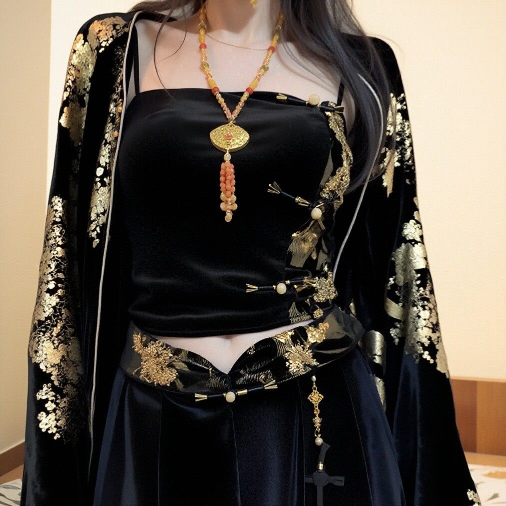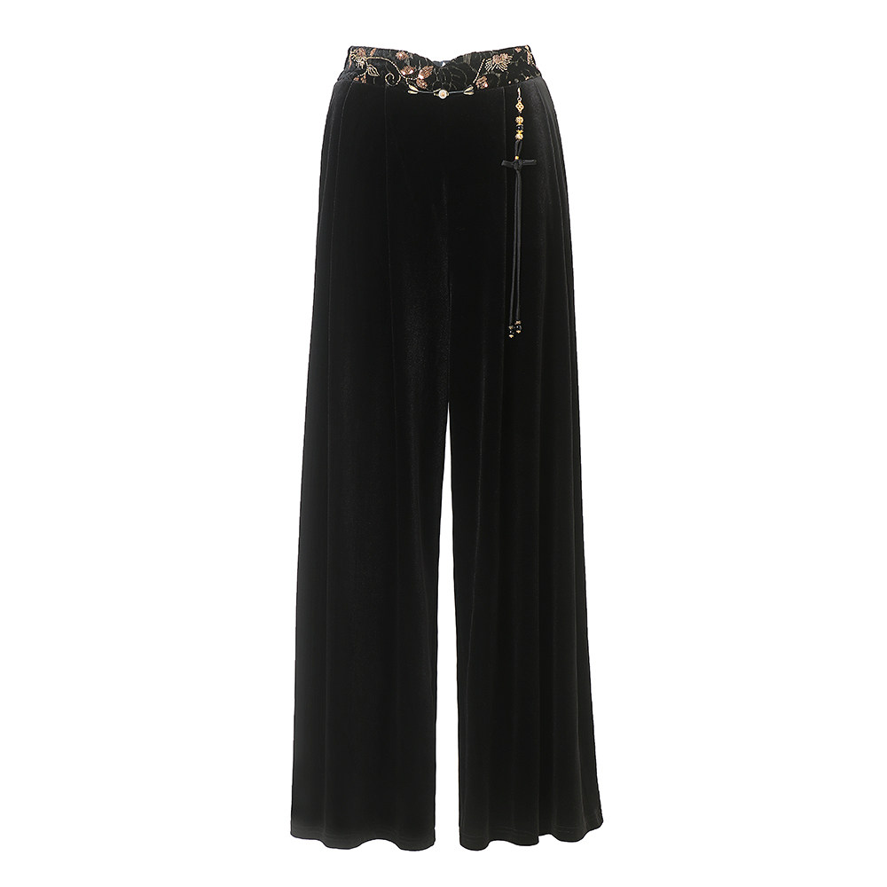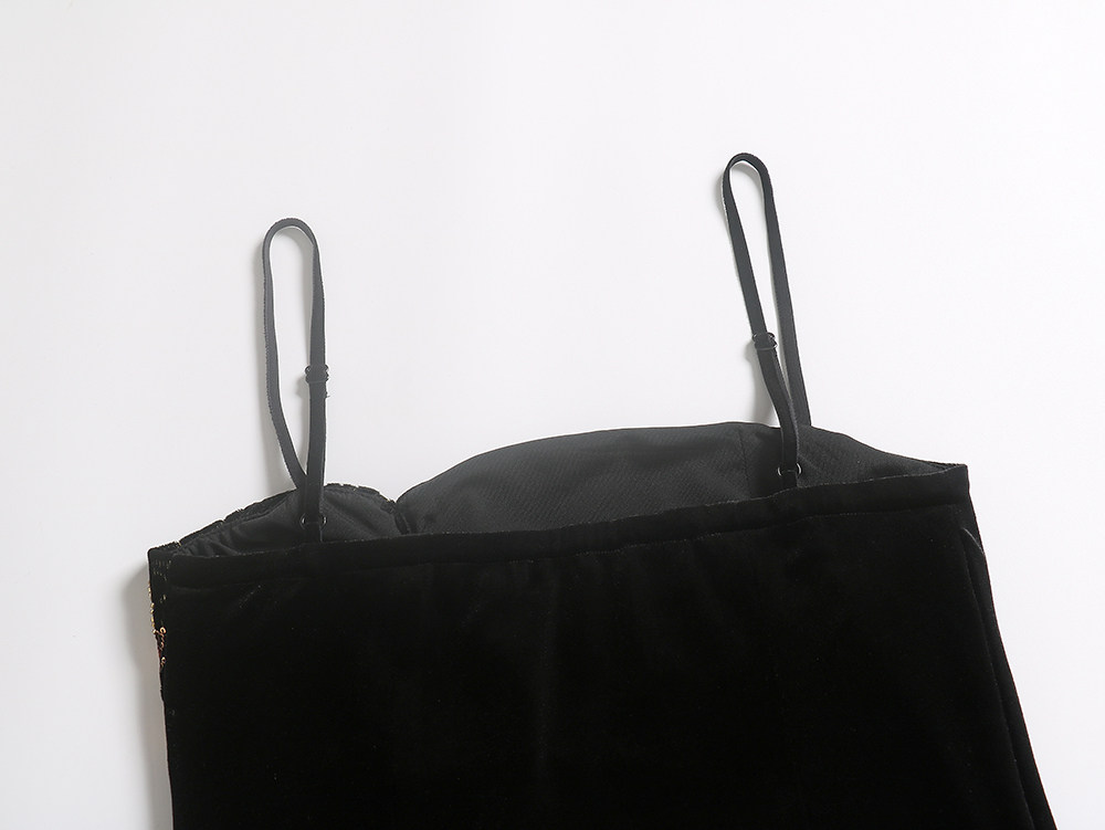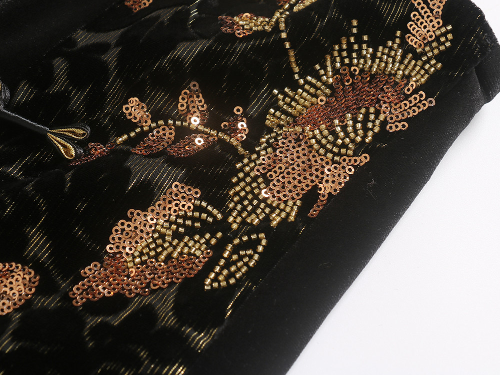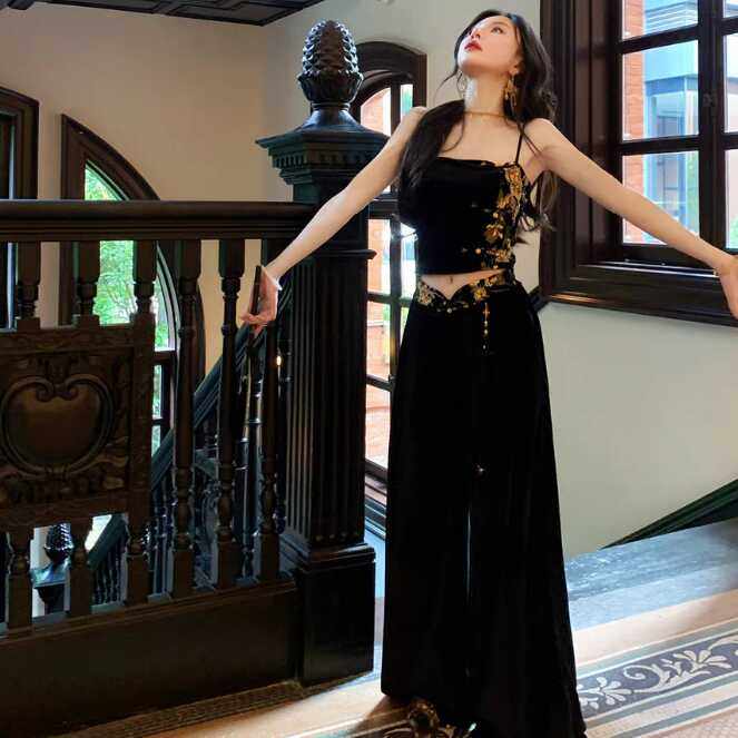 Avlinva【Golden Jade Robe】National Style New Chinese Embroidery Color-Block Fitted Autumn Velvet Camisole Women's Long Dress