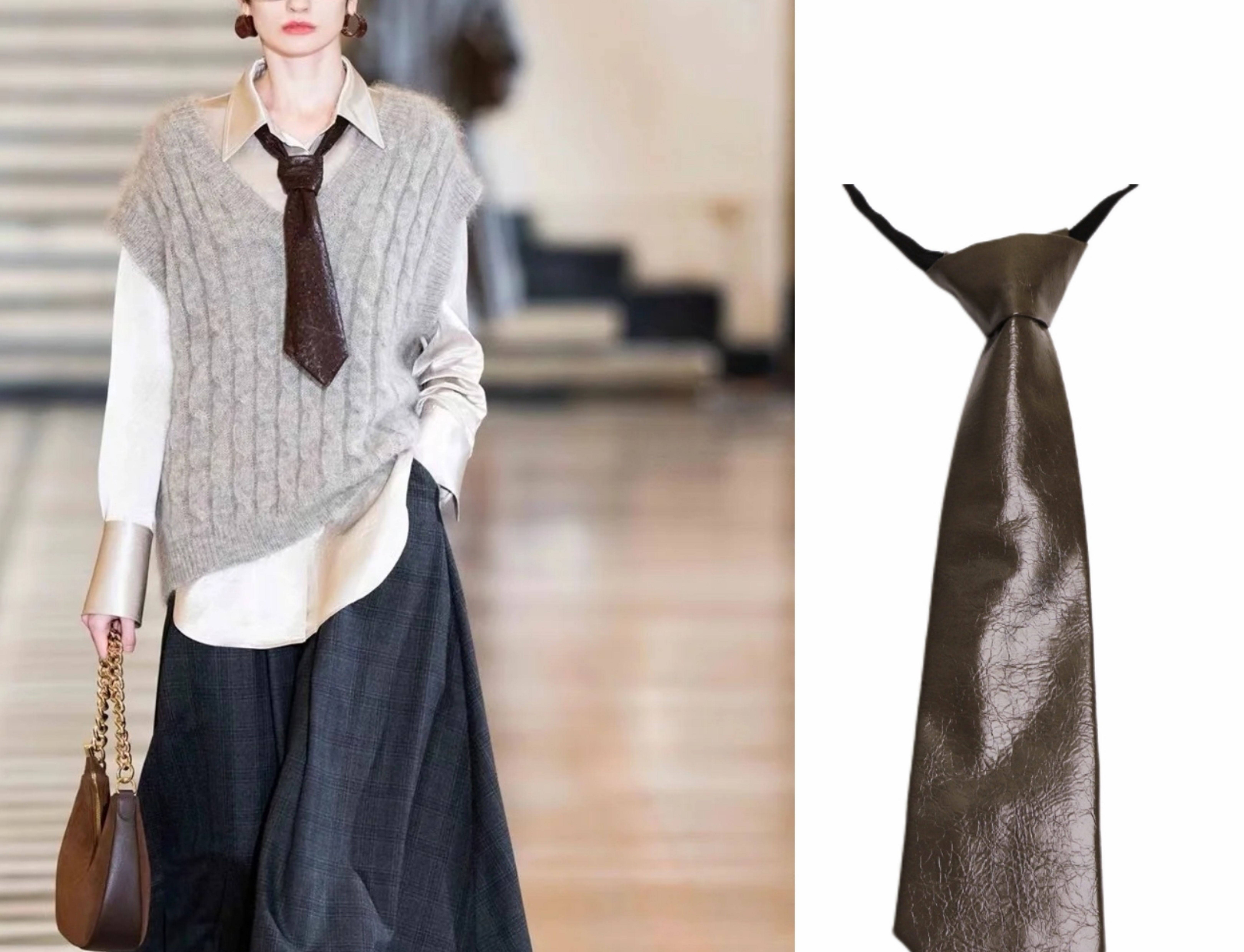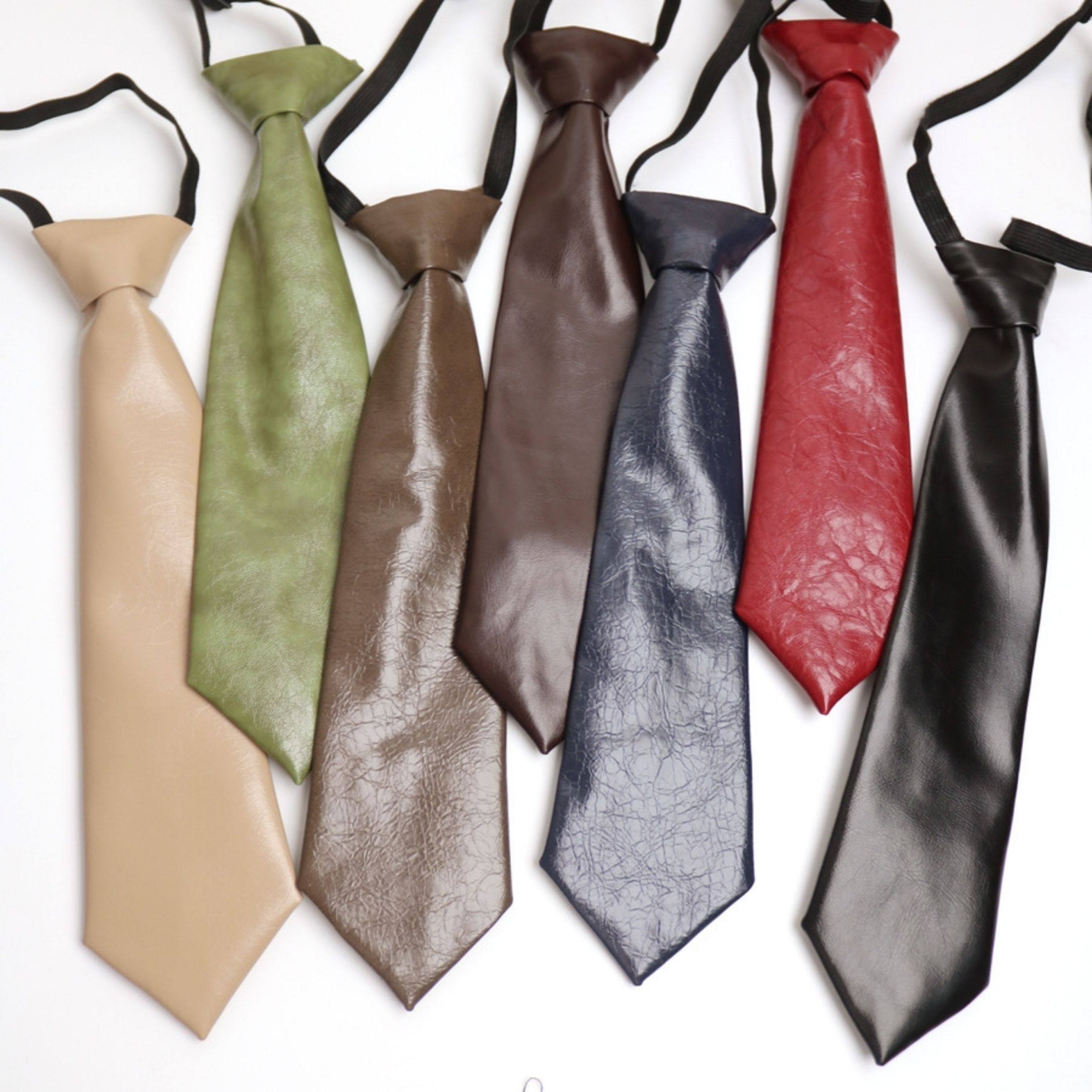 Fashionable Leather-Like Tie for Autumn and Winter, Short Casual Accessory with Elastic Band, No Need to Tie, Adjustable