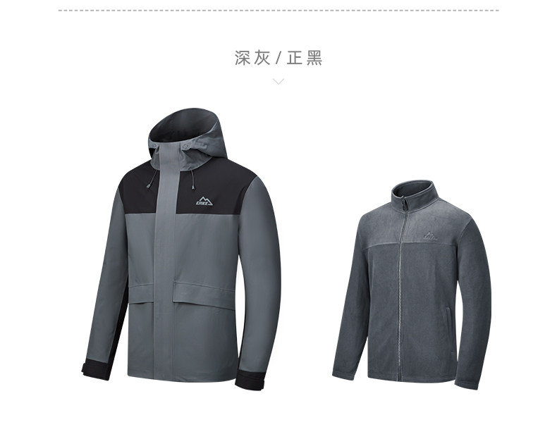 Hongxing Erke Three-In-One Jacket for Men, New Winter Model, Men's Outdoor Hard Shell Thickened Waterproof and Windproof Jacket