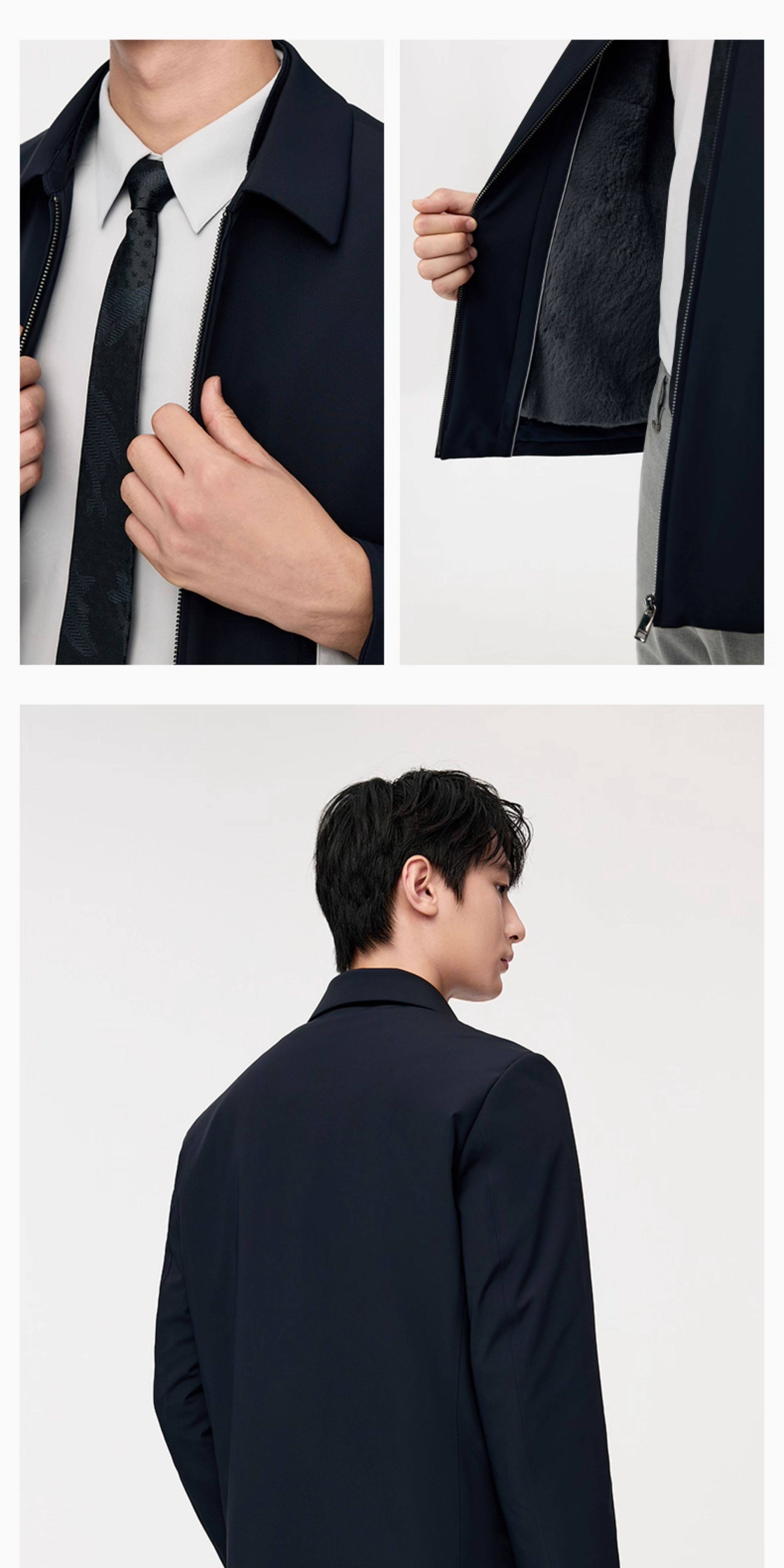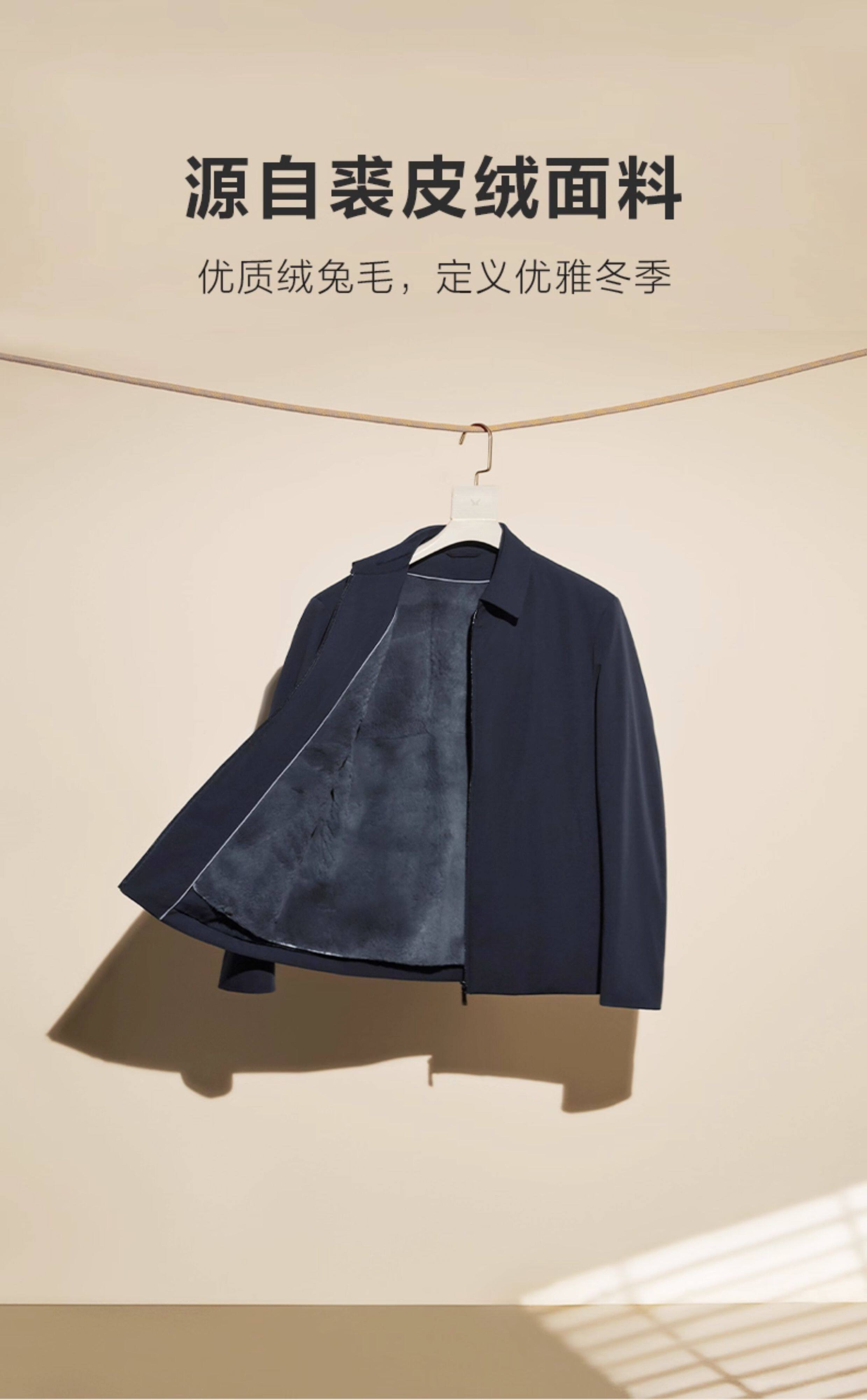 【Fur】Jiumuwang Men's Autumn and Winter Turn-Down Collar Executive Fleece-Lined Warm Jacket Rabbit Fur Coat