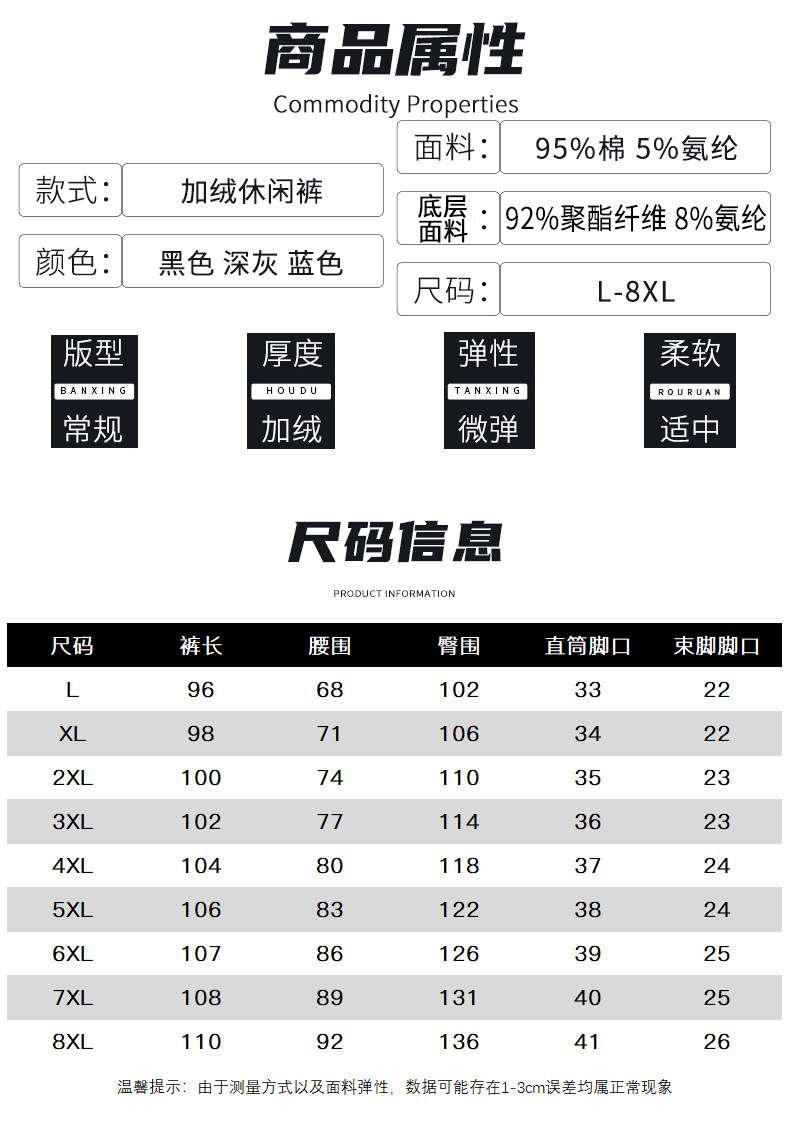 Men's Casual Pants for Autumn and Winter, Thickened, Warm, Fleece-Lined, Loose Fit, Plus Size, Extra Large, Cotton Sweatpants for Big and Tall Men