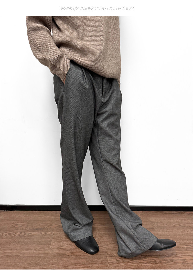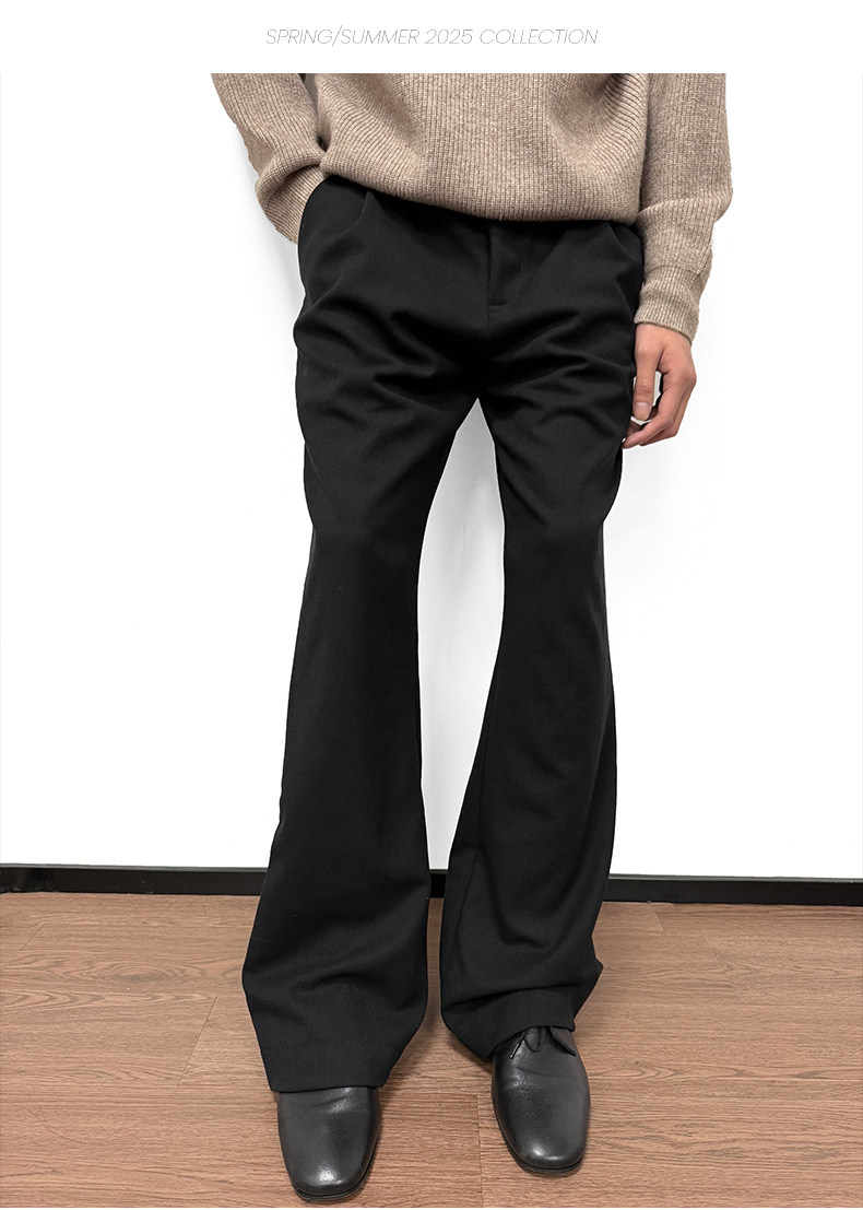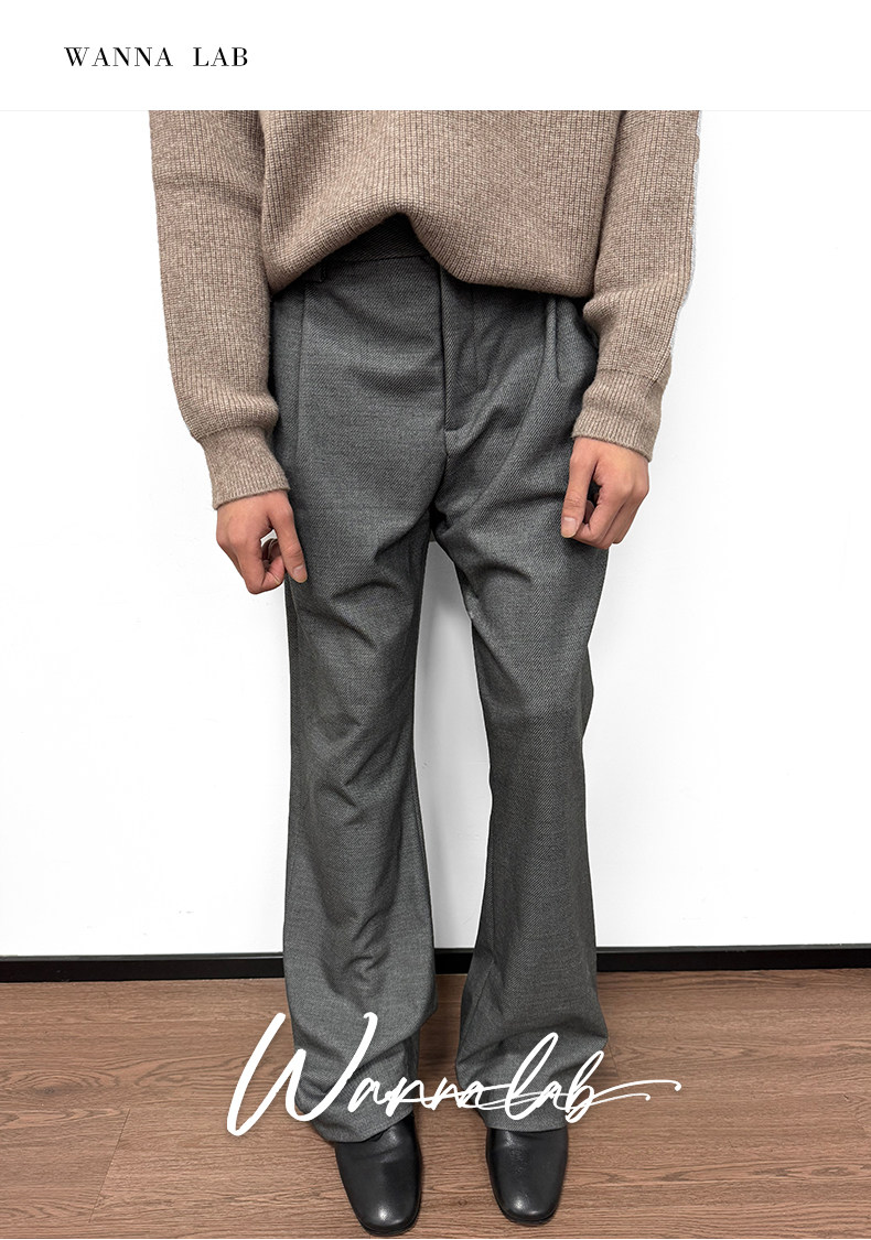Wanna Lab 25Ss Wool Blend Pleated Drapey Flared Suit Trousers with High-End Fully Hemmed Non-Slip Strips