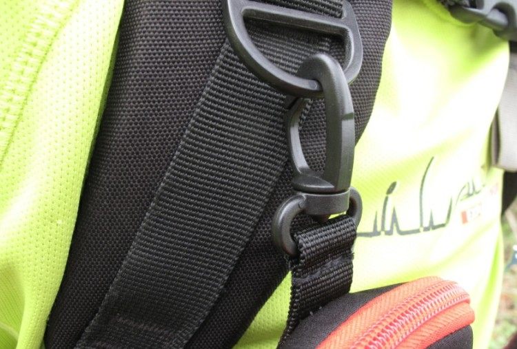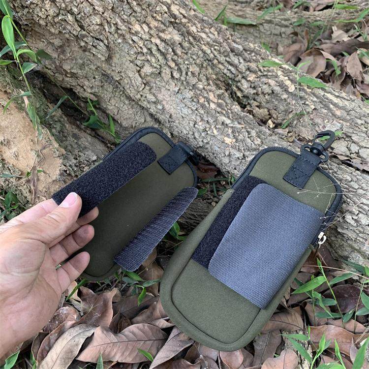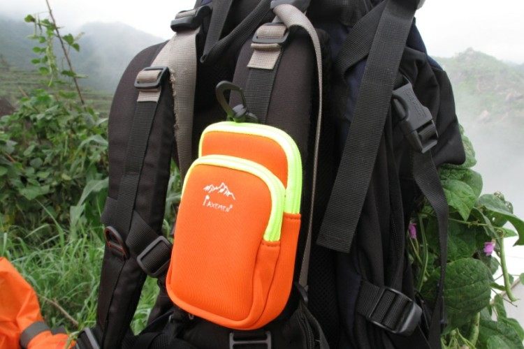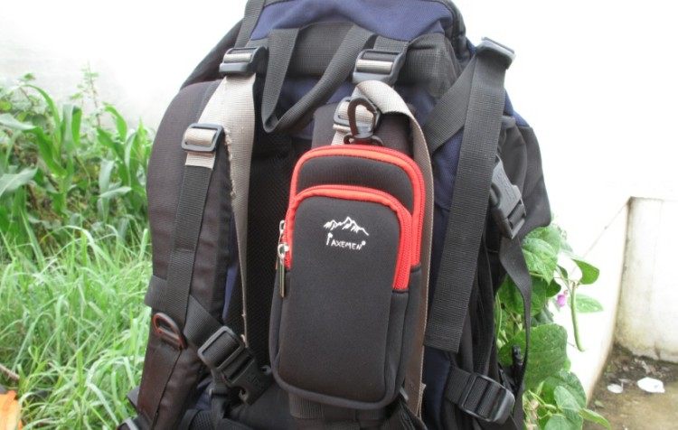 特点:潜水料制成,双拉链袋设计,放置物品方便可靠,面料缓冲保护效果好,且防水(指面料防水,袋子是不能完全防水的,因为拉链和车线处会进水),后部为魔术贴设计,可以方便的固定到背包的肩带上,配有一个可选择的塑料挂钩,可以固定到背包的D环上(多数登山包是有D环设计,具体请根据自己的背包情况,挂钩主要是防止下滑跑位用,不用也可)