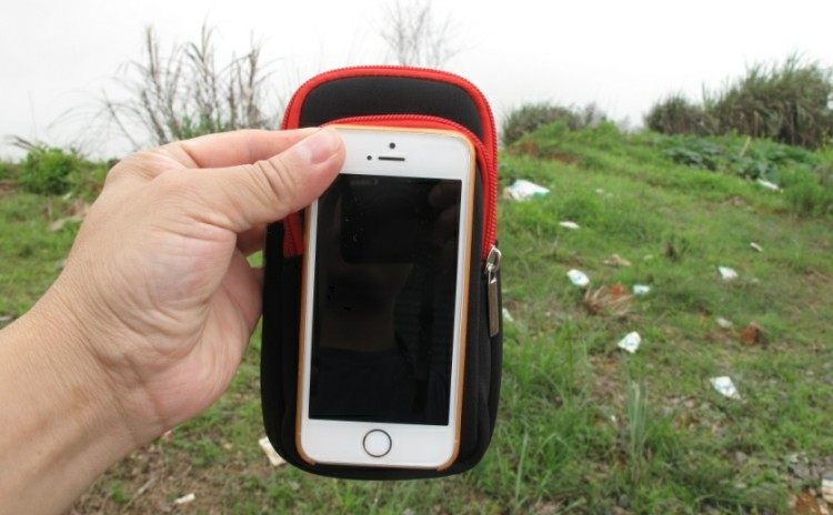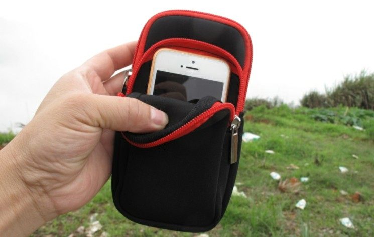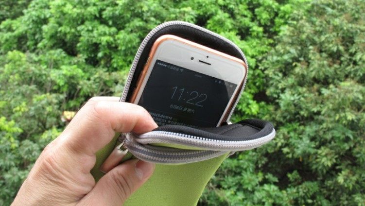 以上是苹果5和大号的对比,苹果5刚好放入大号的前袋里