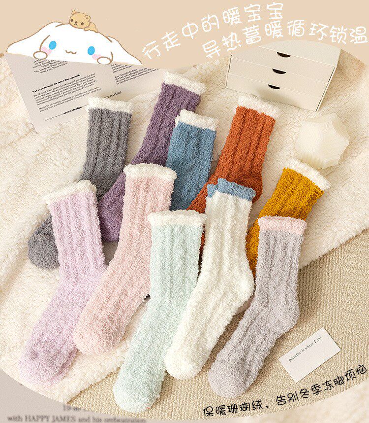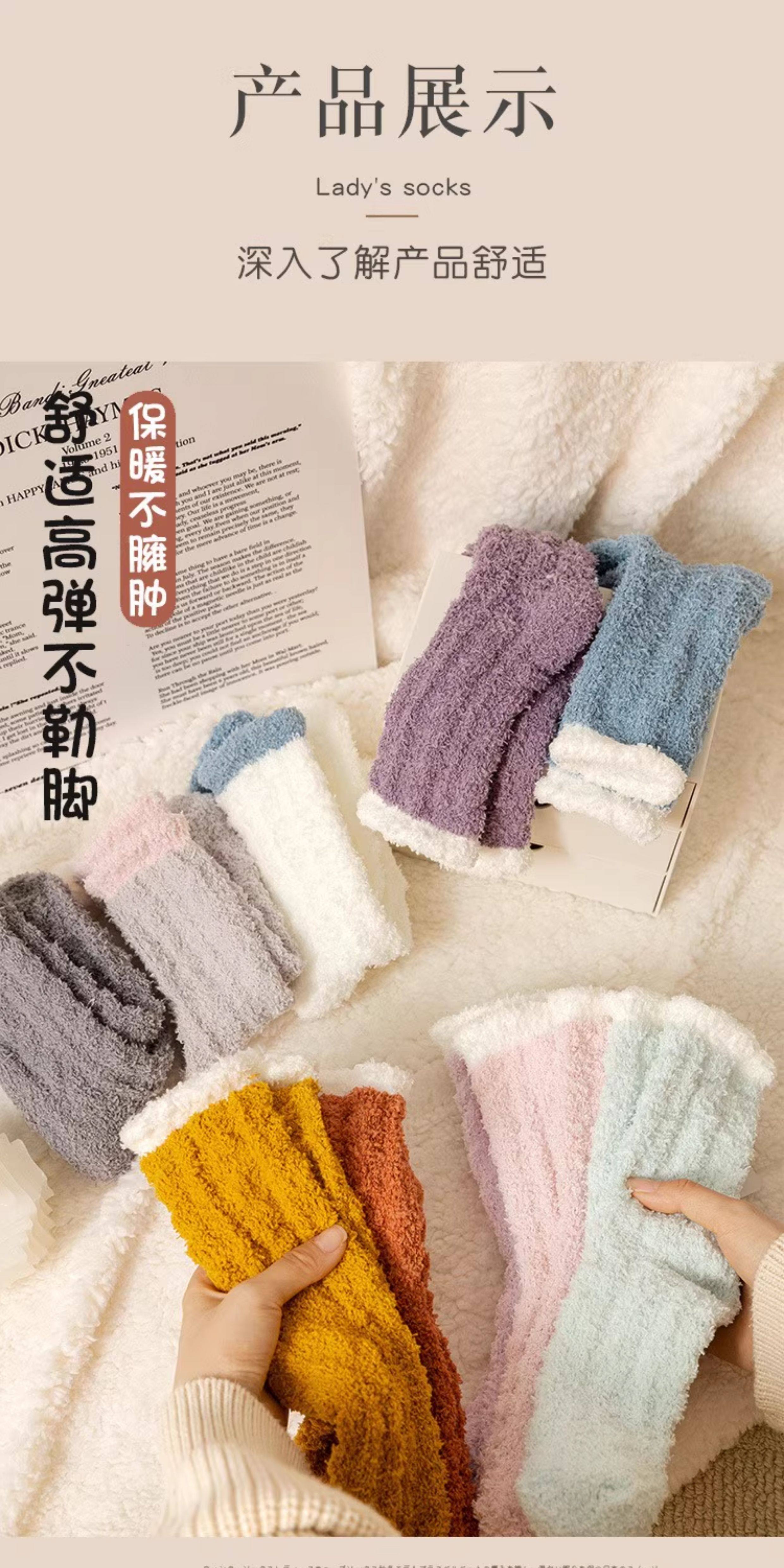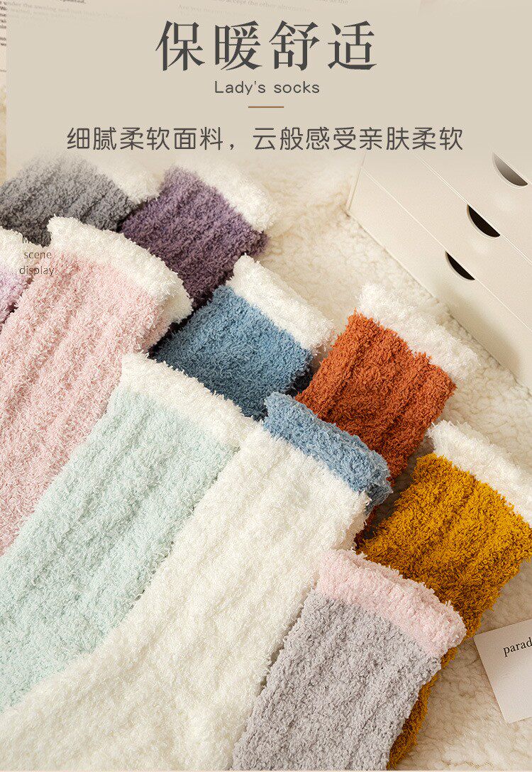 Coral Fleece Maternity Socks for Women, Mid-Calf Length, Postpartum, Autumn and Winter, Fleece-Lined, Thickened, Warm for Winter, Sleep Socks, Towel Socks, Floor Socks