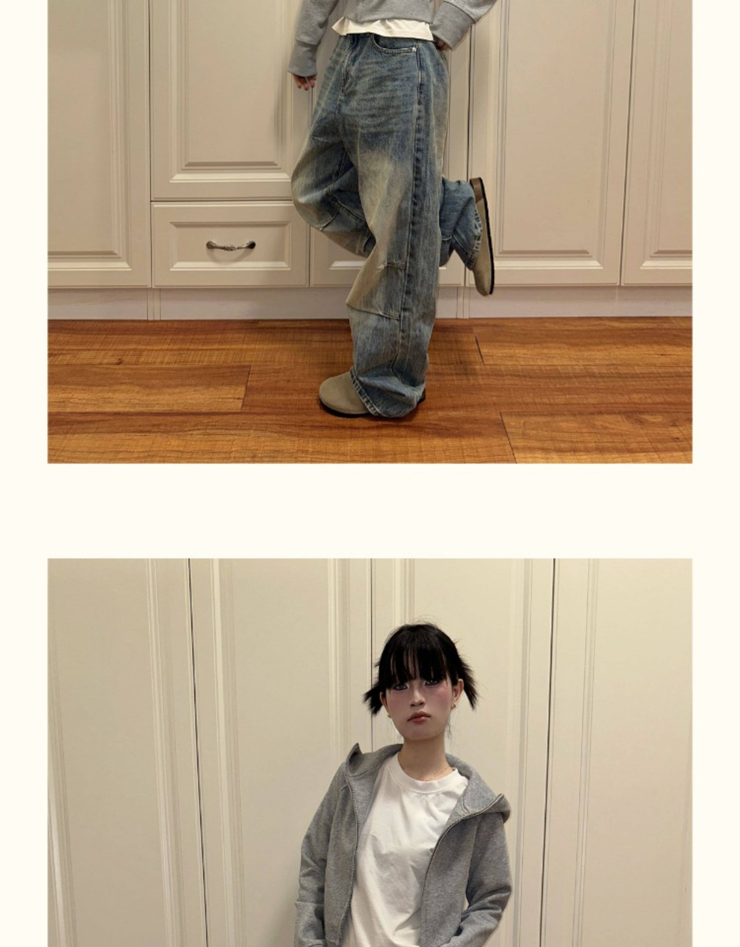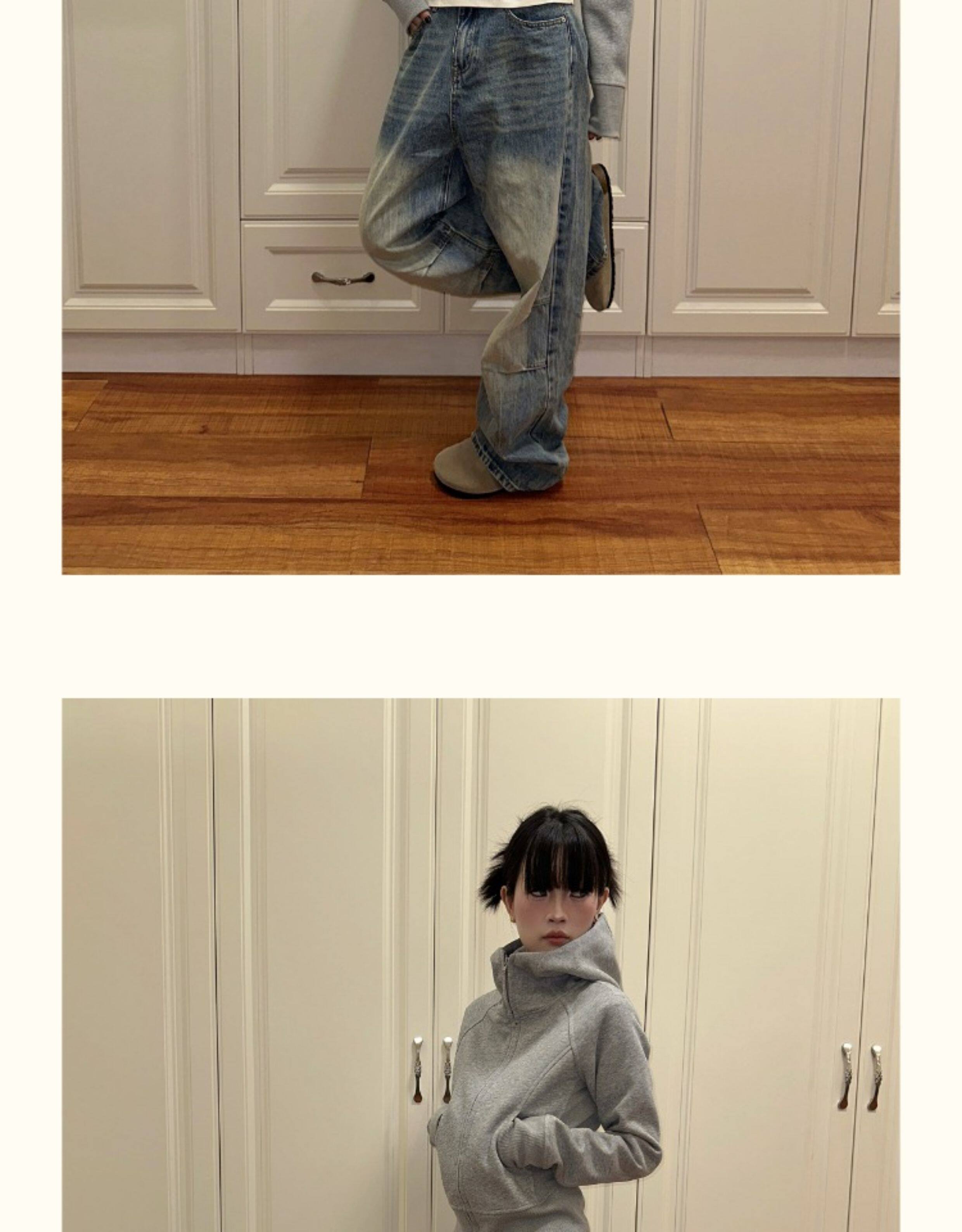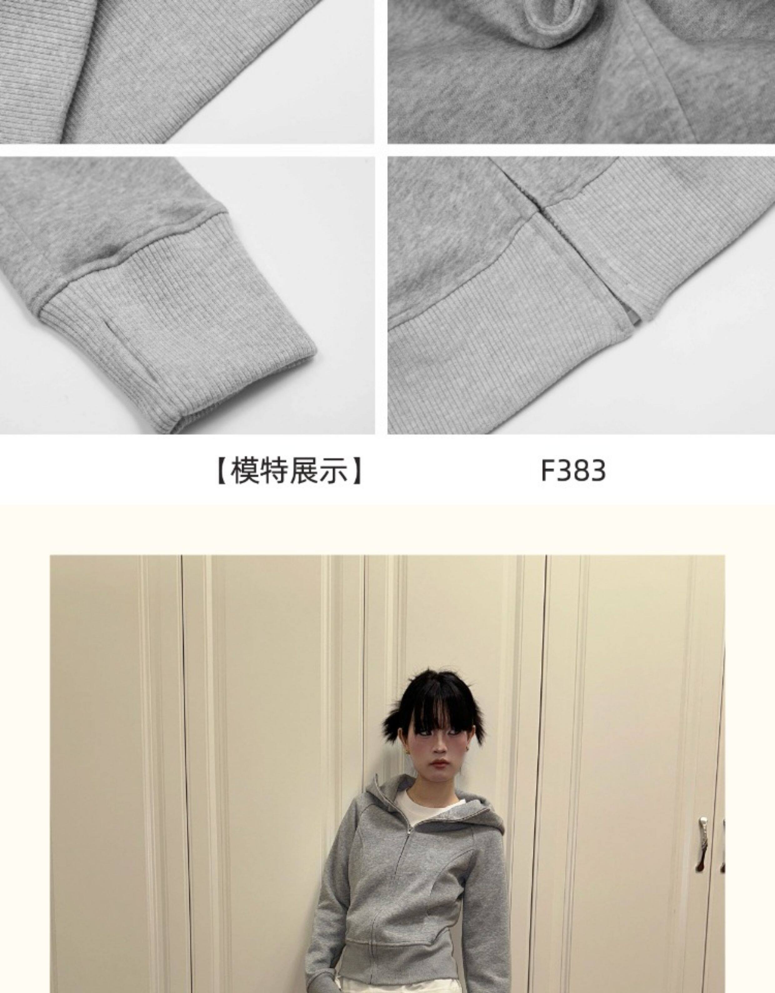 F383 2025 Gray Short Hooded Sweatshirt for Women Early Autumn New Slim Fit Long Sleeve American Style Zipper Jacket