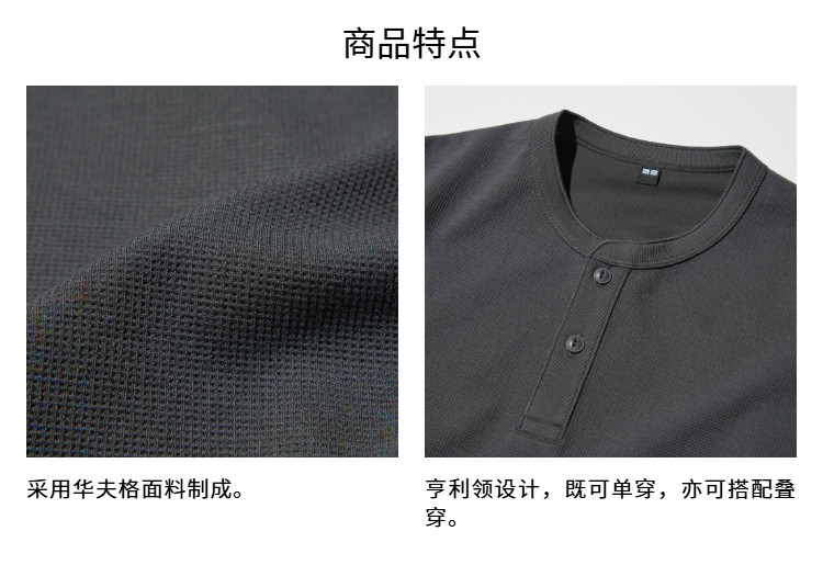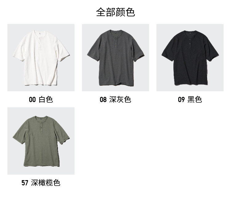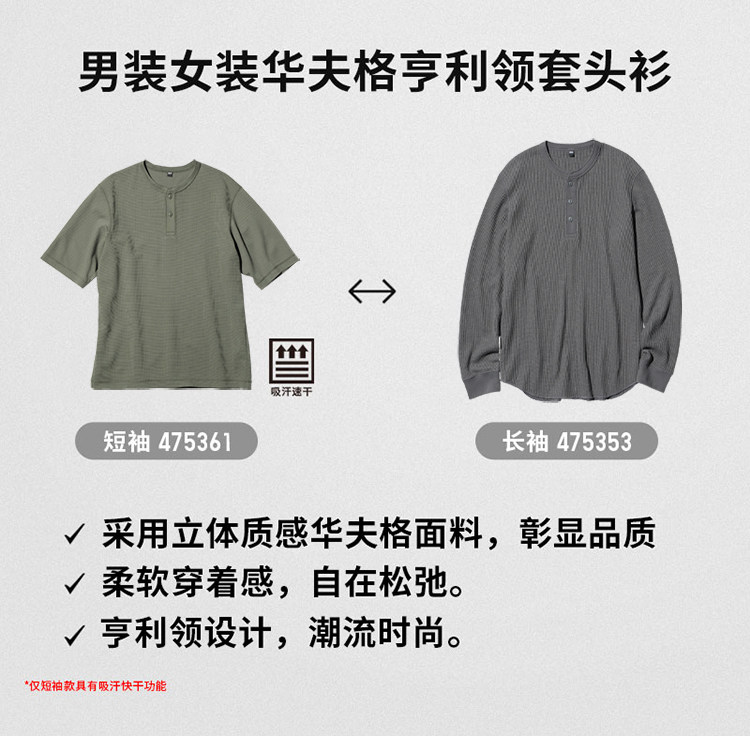 Uniqlo Men's and Women's Couple Quick-Drying Waffle Henley Collar T-Shirt Short-Sleeve T-Shirt with Sweat-Absorbing Texture 475361