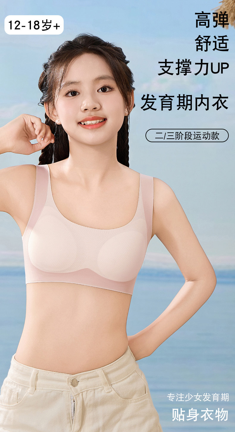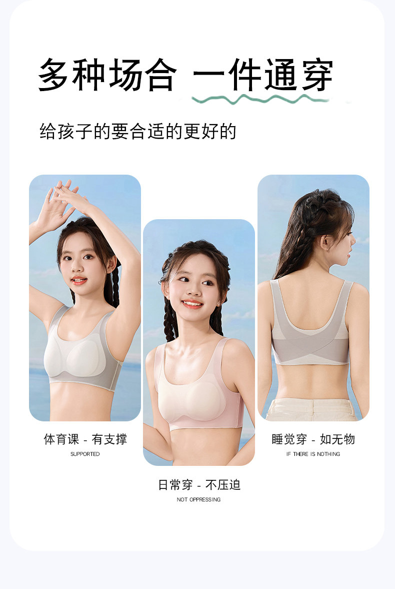 Cat Girl Underwear for Girls in the Second and Third Stages of Puberty, Small Vest Sports Shock-Proof Seamless Bra