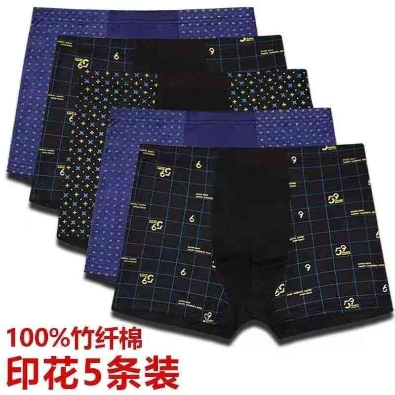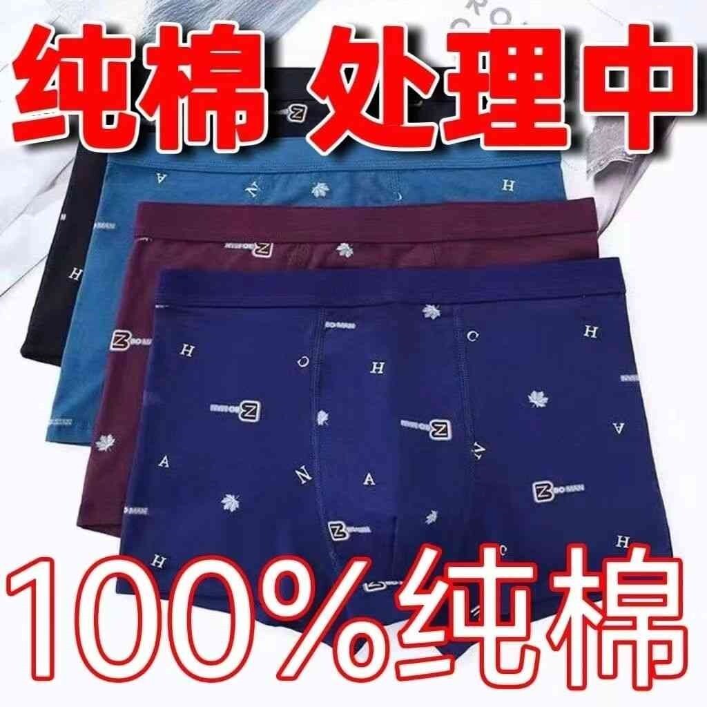 Pure Cotton 100% Men's Boxer Mid-Waist Breathable Sweat-Absorbent Four-Corner Cotton Loose Large Size Fat Man Dad Pants