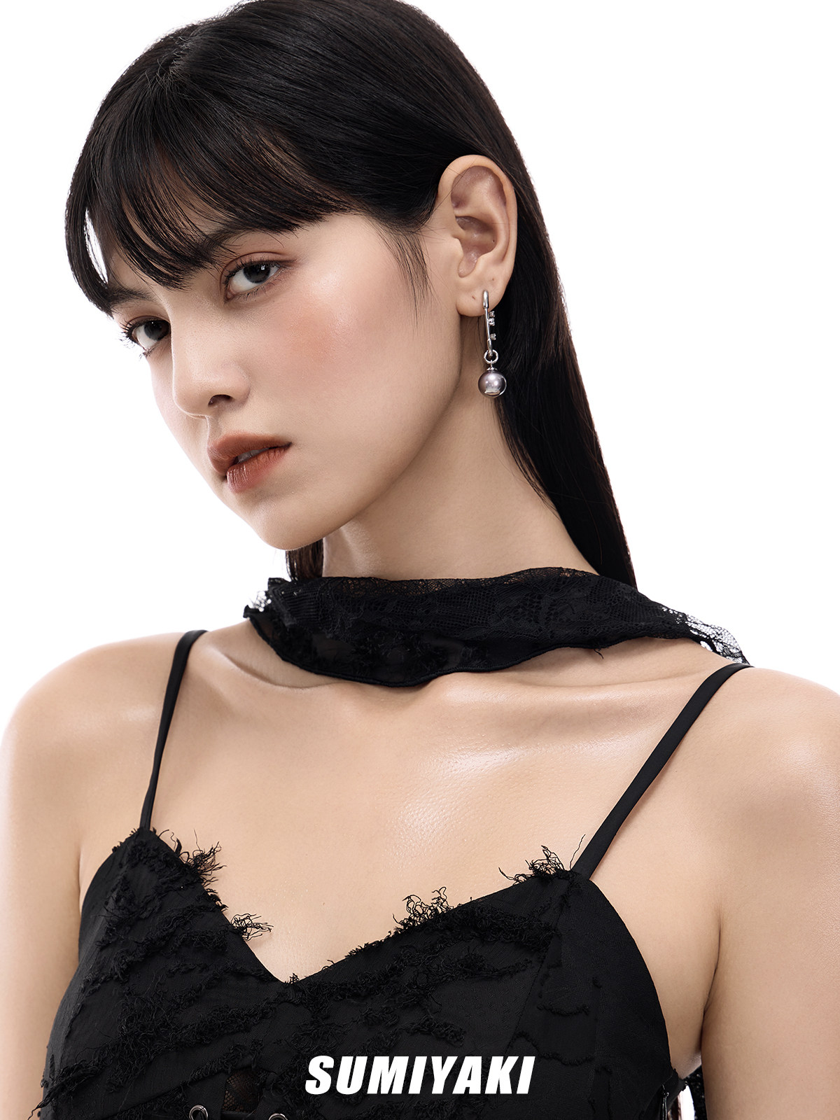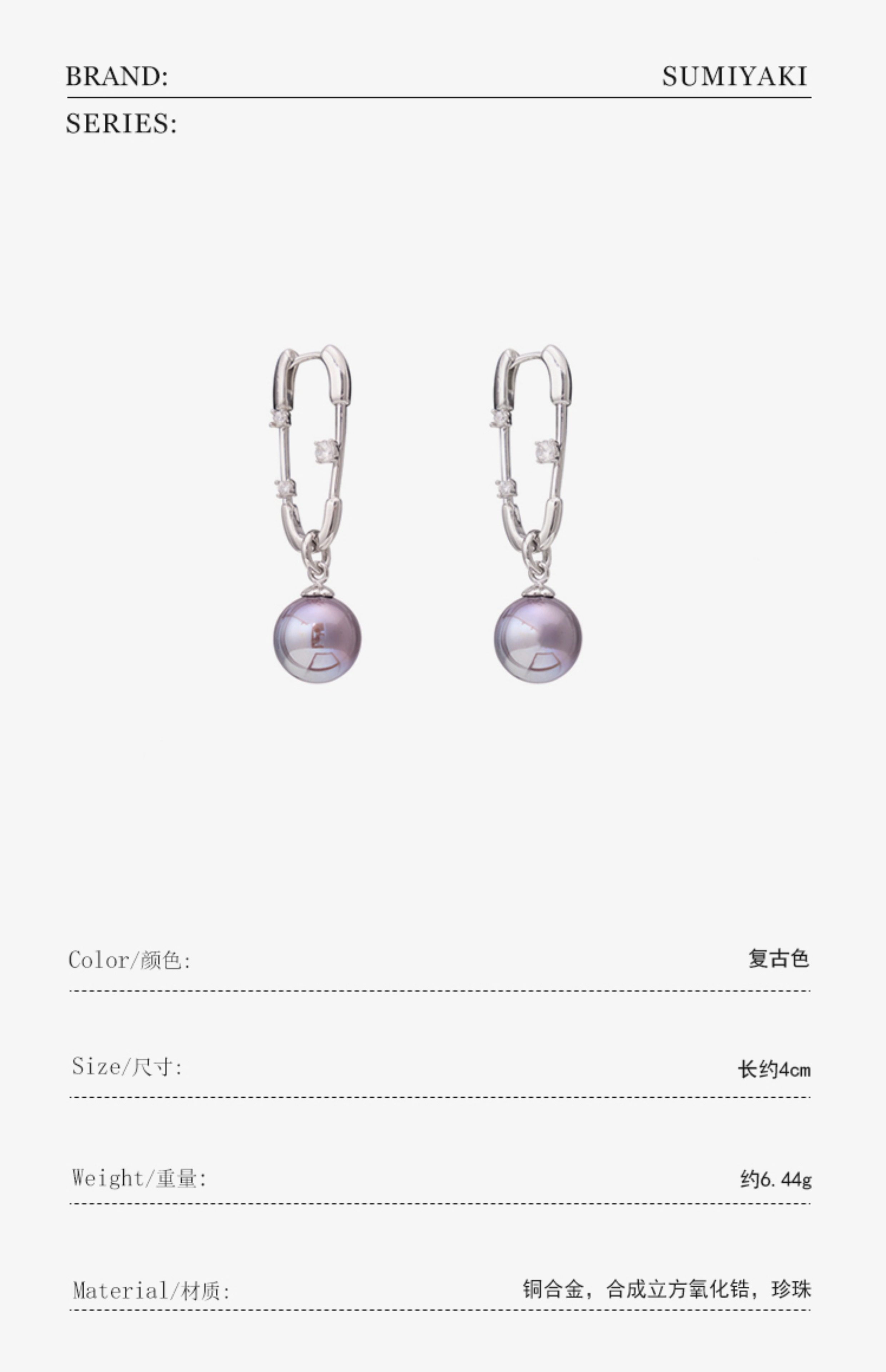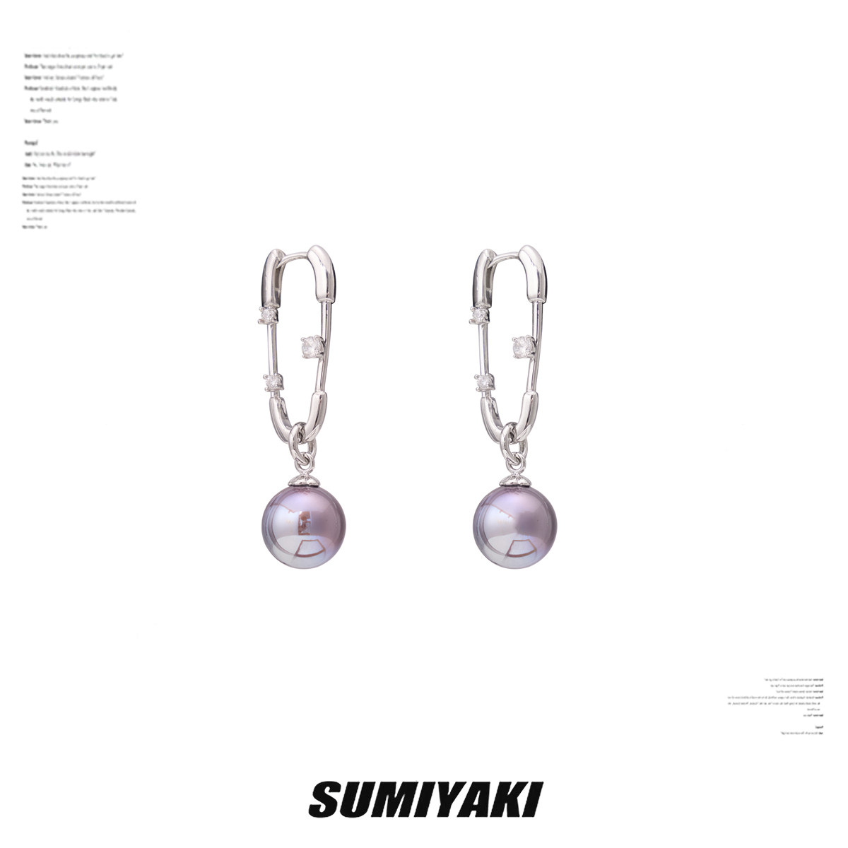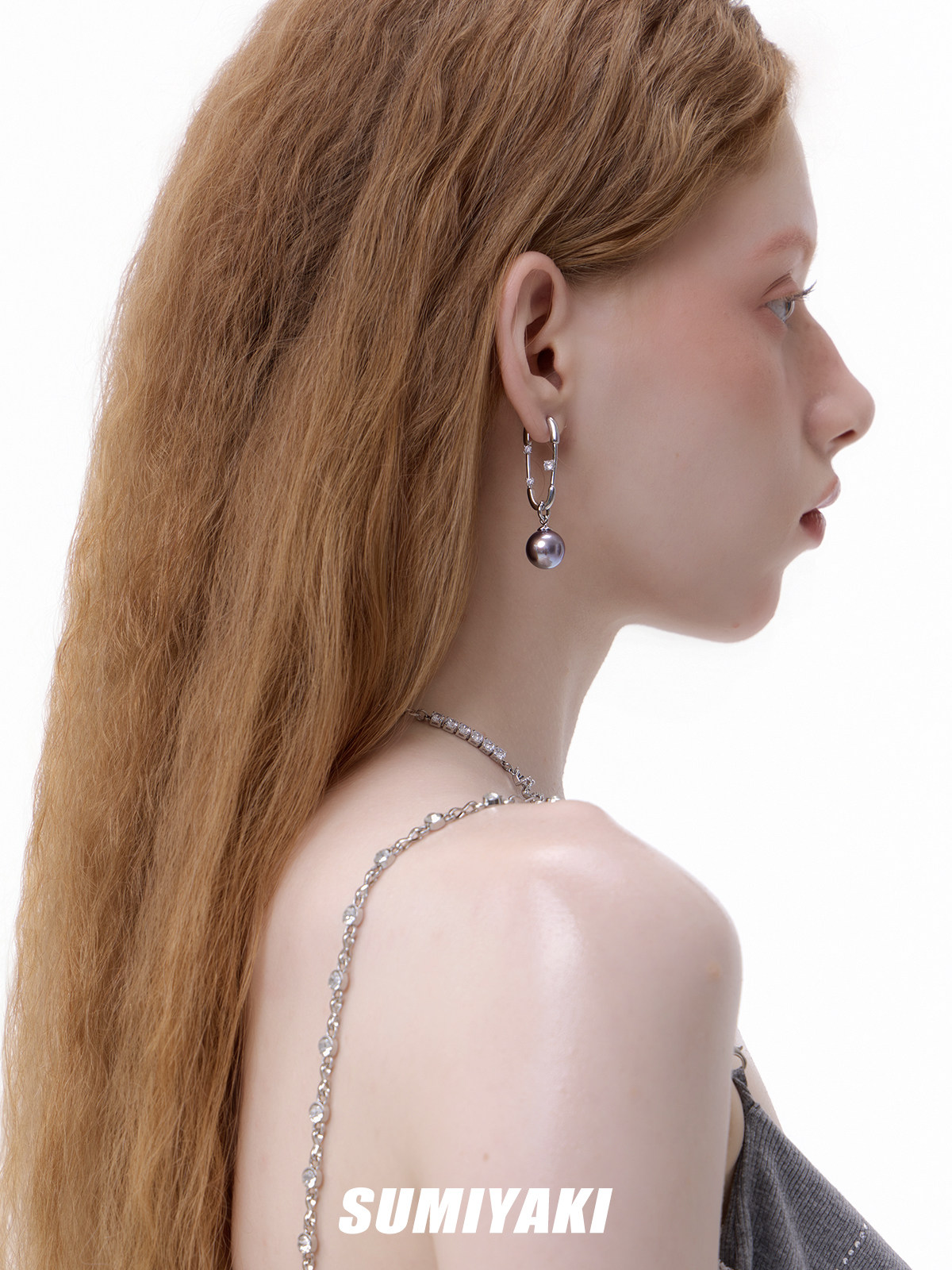 Sumiyaki Diamond-Encrusted Paperclip Round Black Pearl Earrings, Ear Drops, Ear Studs