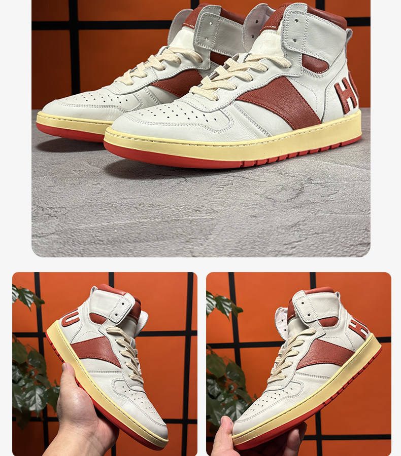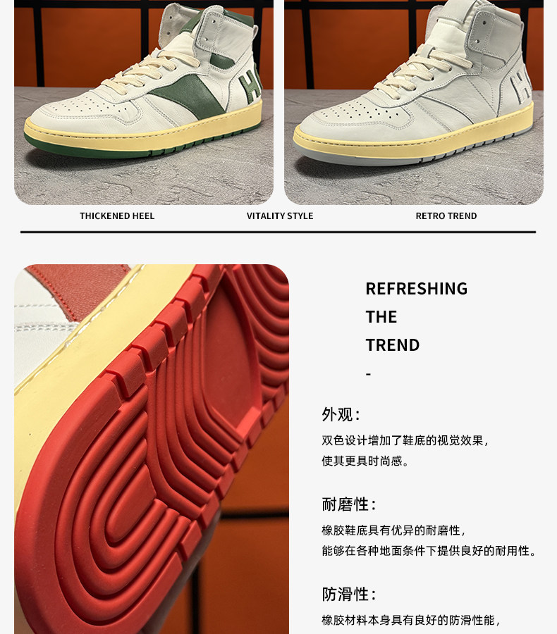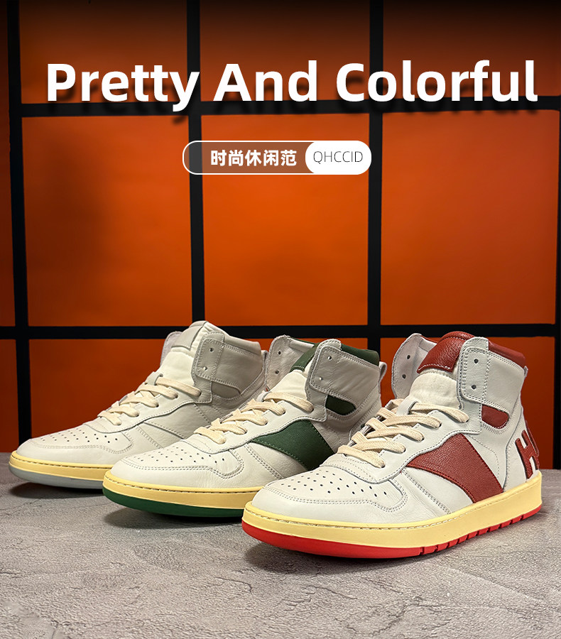 High-Top Shoes Are Very Popular Men's Shoes, British Style Sneakers, Genuine Leather Spring and Autumn Sports Casual White Shoes, Men's Retro Casual Sneakers