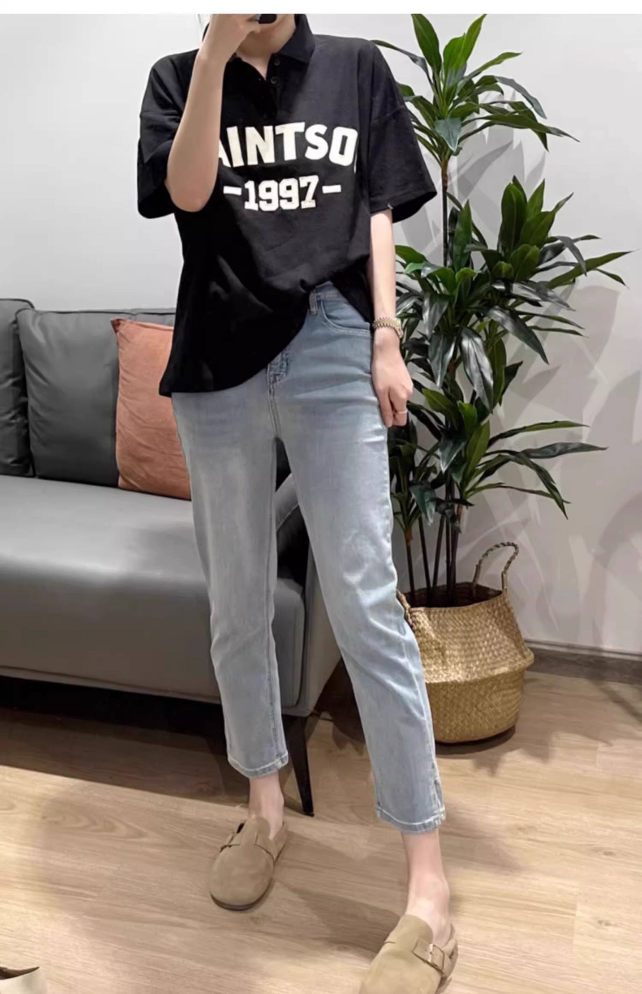 Tencel Jeans for Women, Plus Size, Ice Silk Pants, Summer Thin Style, Petite, High-Waisted, Slimming, Cropped Straight-Leg Cigarette Pants