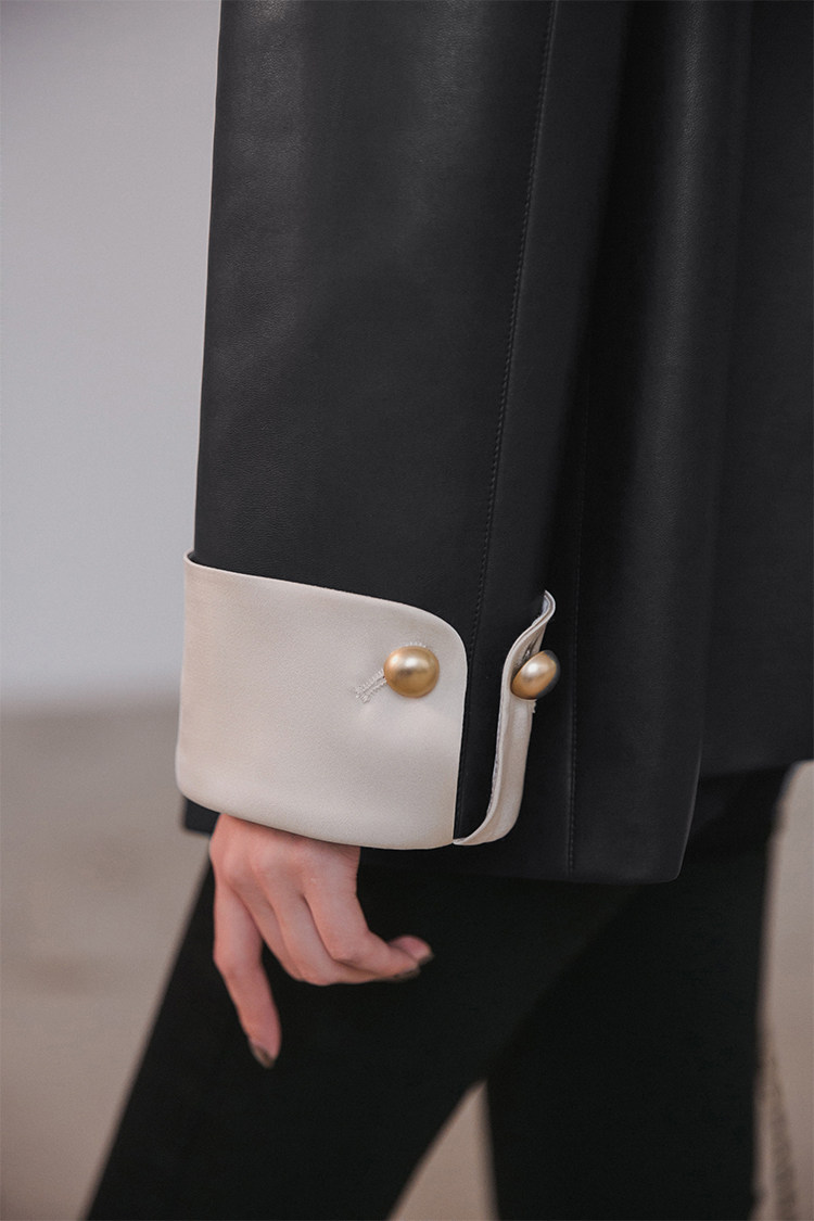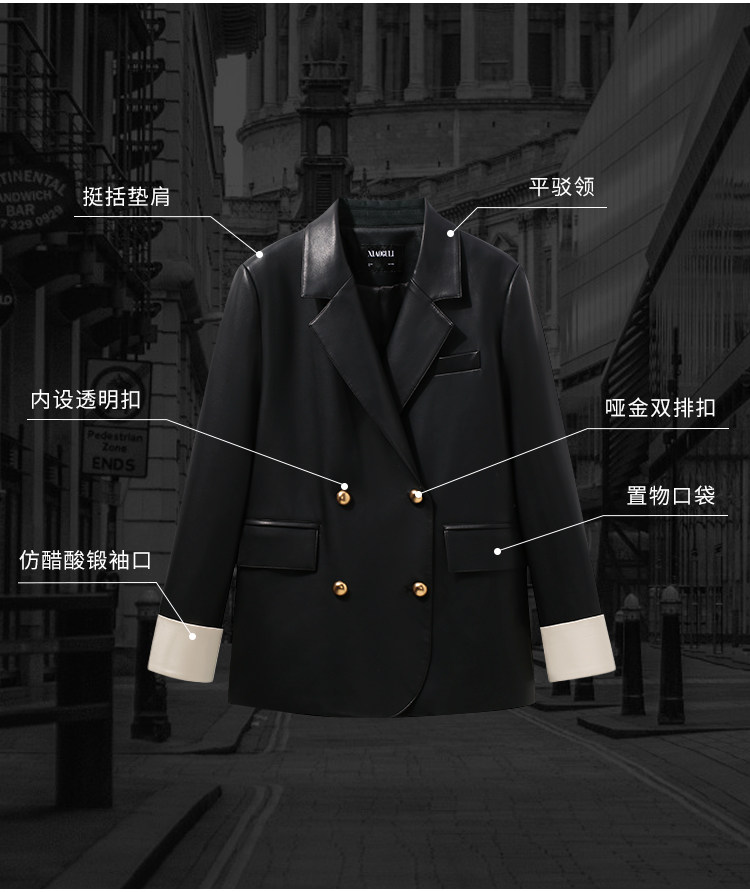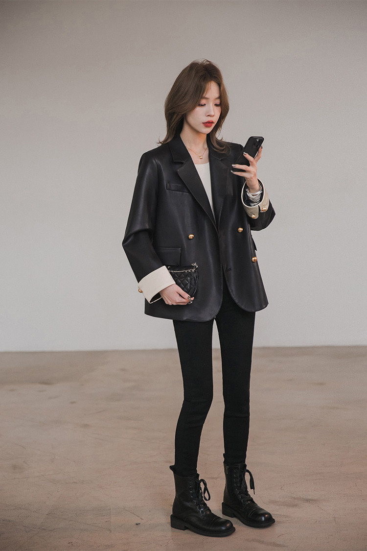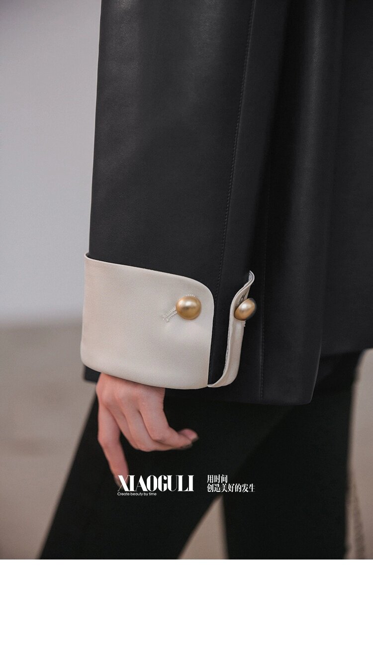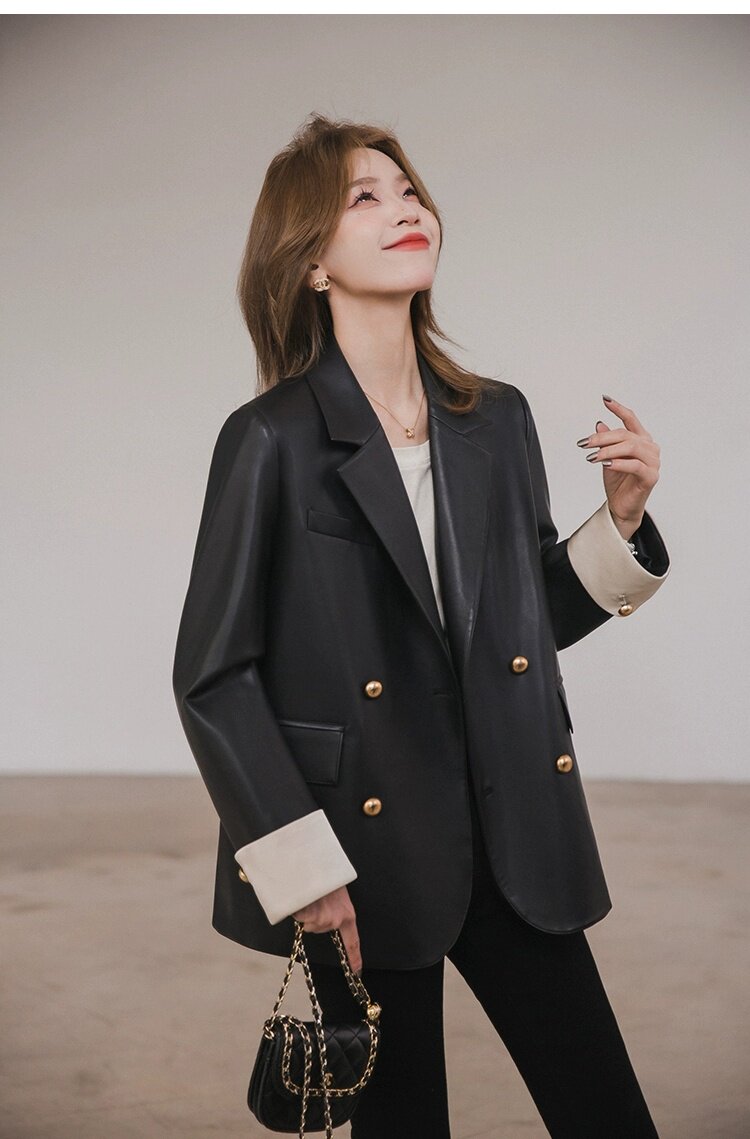 Xiaoguli Rose Leather Jacket, High-End Black Pu Leather Jacket for Women, Autumn Korean Style Design, Color-Blocked Suit