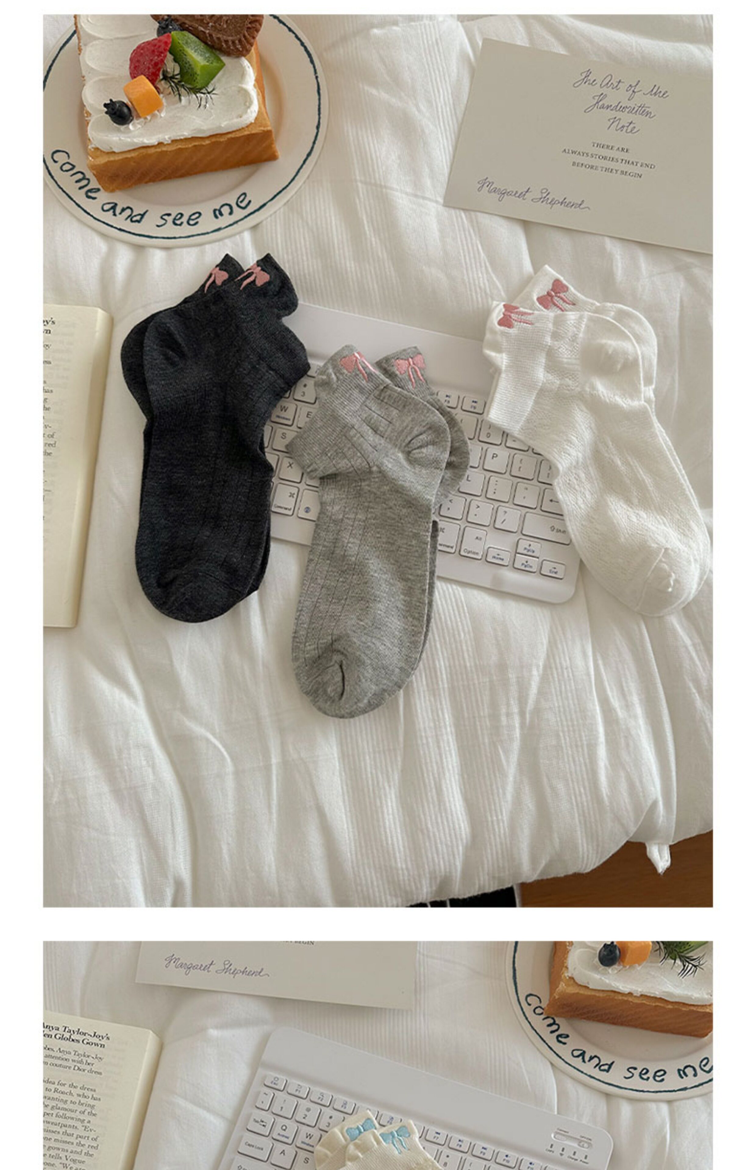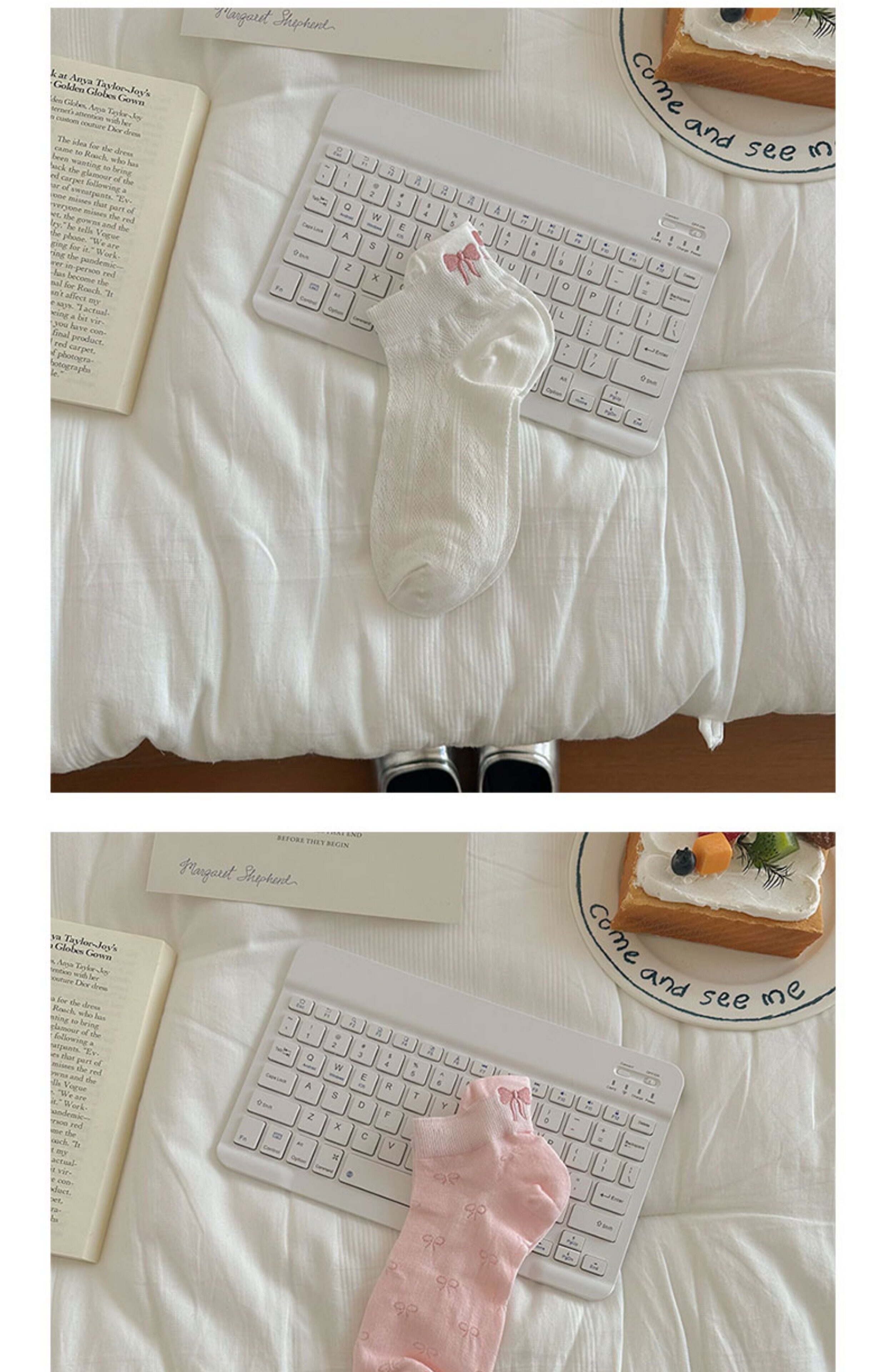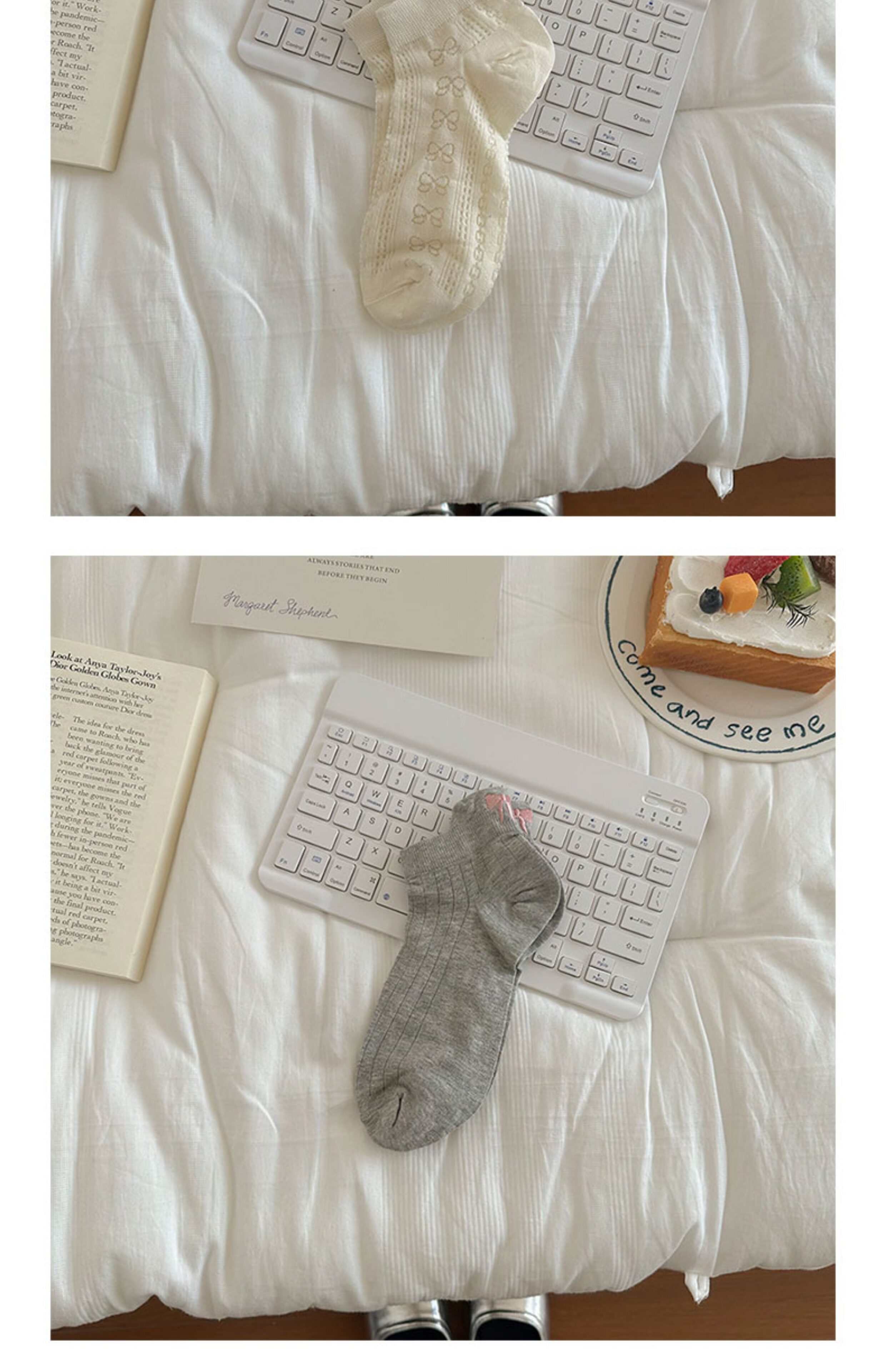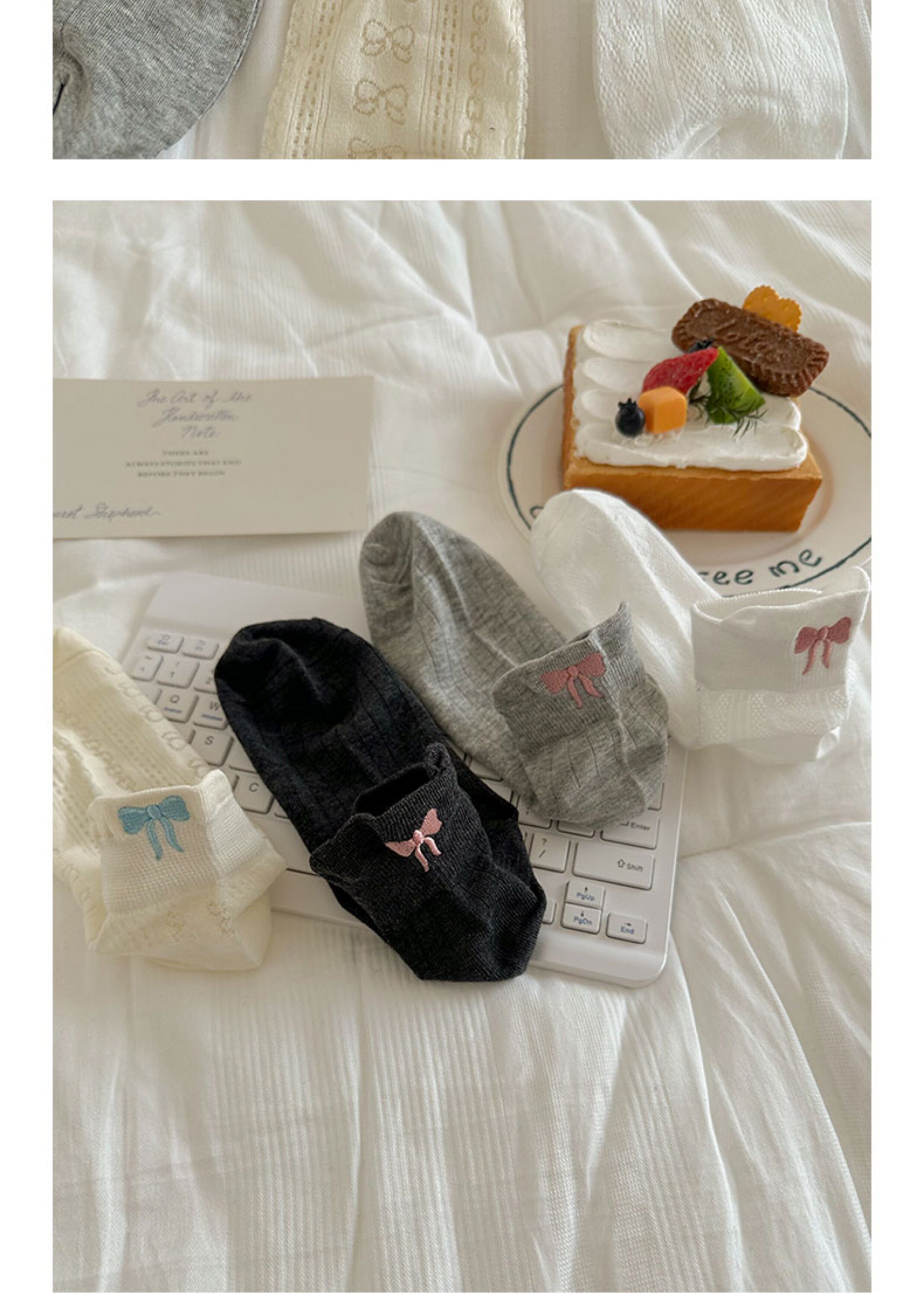 Nut Mommy Embroidered Bow Socks for Women, Mid-Calf, Thin Summer Style, Suitable for Wearing with Small Leather Shoes, White Japanese Style Heel Socks