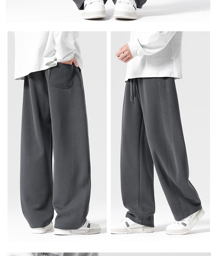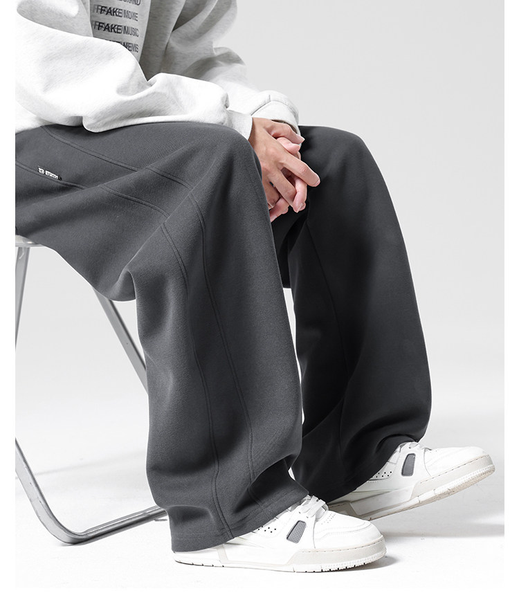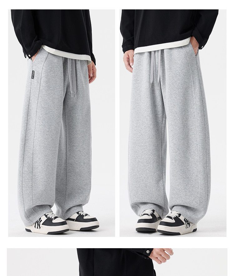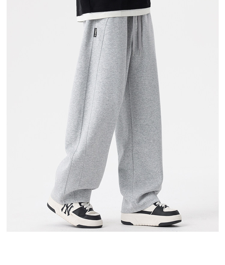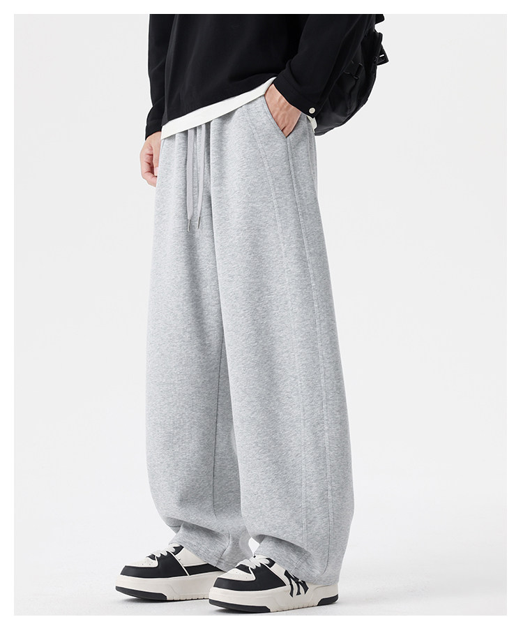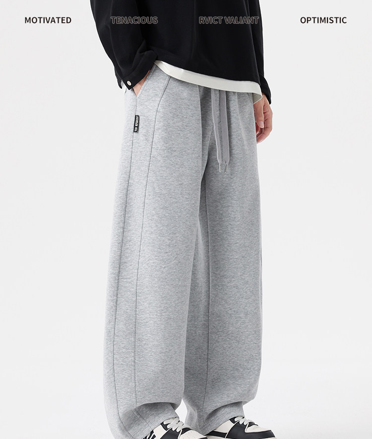Gray Curved-Leg Pants for Men, Winter Loose-Fitting Sports Sweatpants, Fleece-Lined and Thickened Straight-Leg Pants, Men's Casual Pants for Autumn and Winter