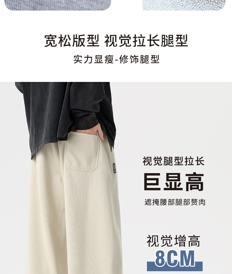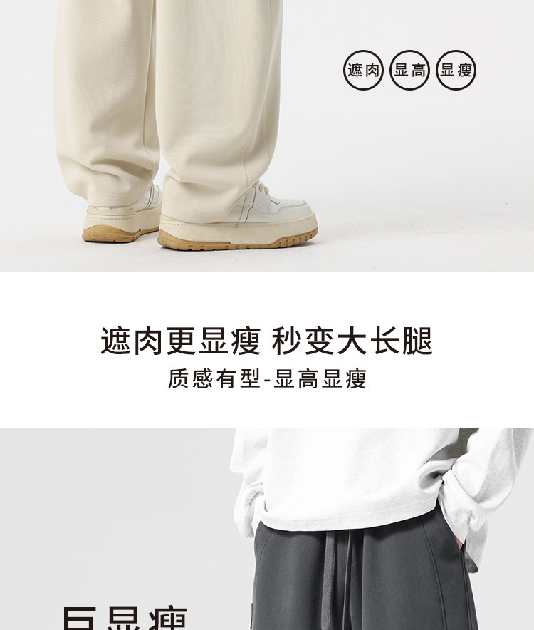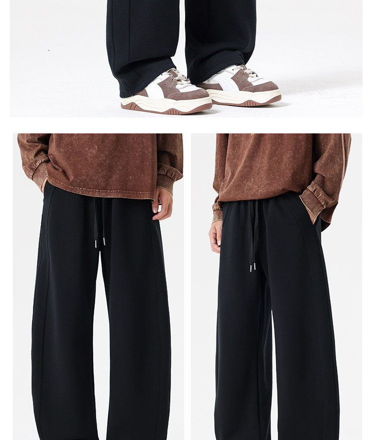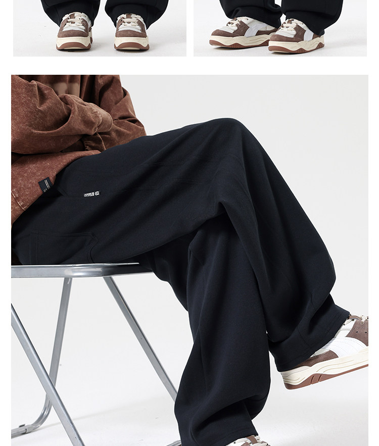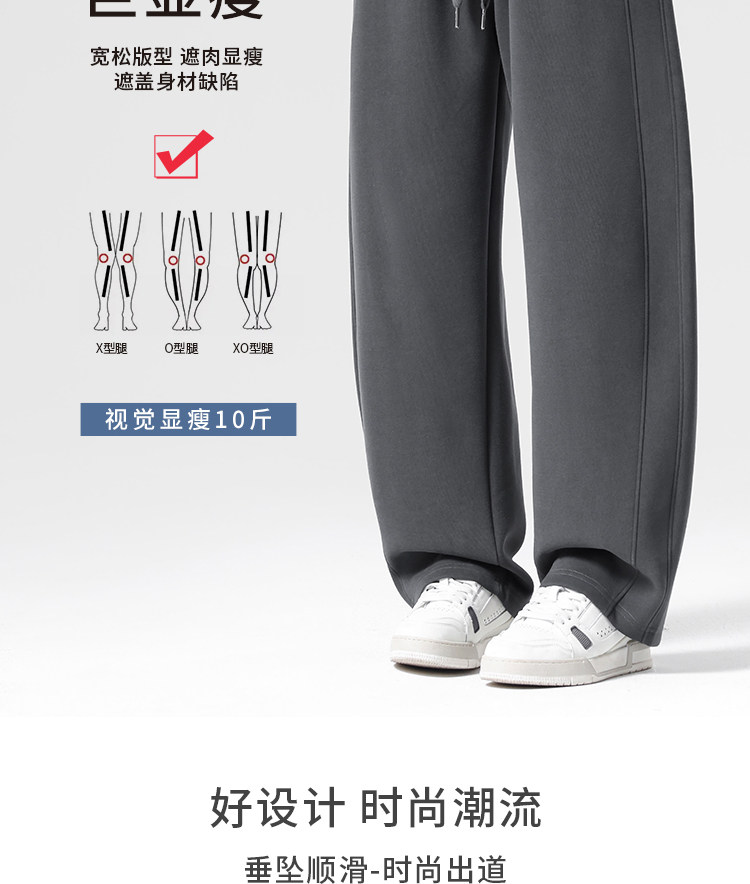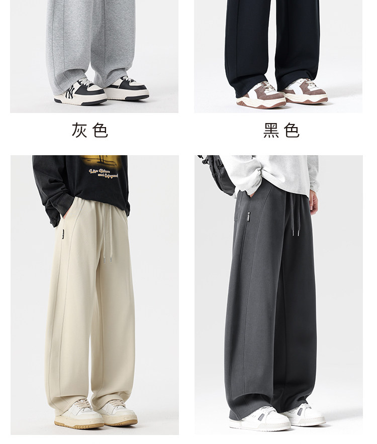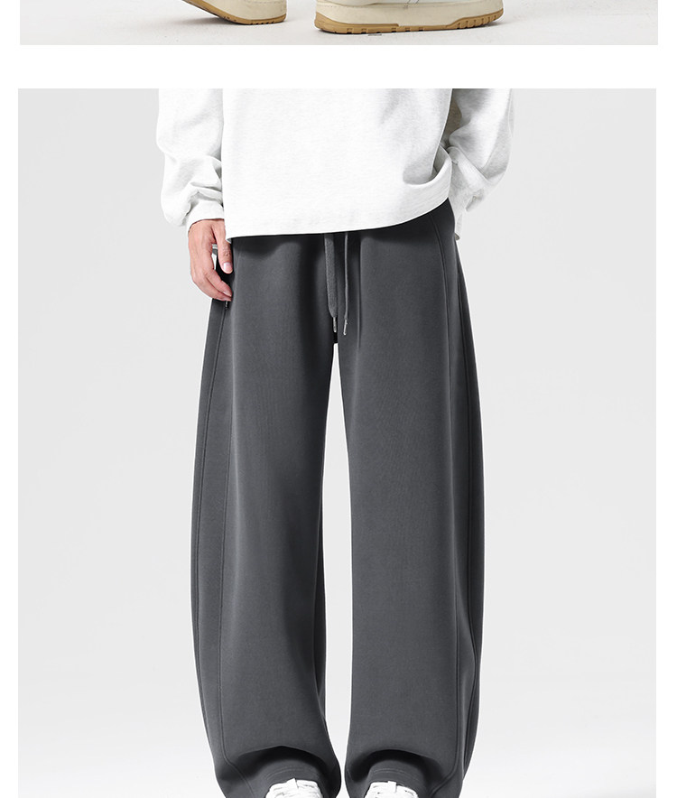 Gray Curved-Leg Pants for Men, Winter Loose-Fitting Sports Sweatpants, Fleece-Lined and Thickened Straight-Leg Pants, Men's Casual Pants for Autumn and Winter