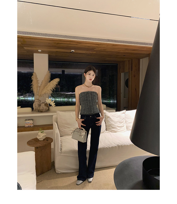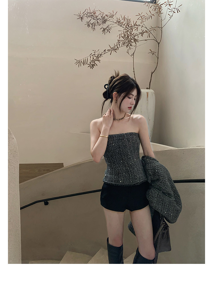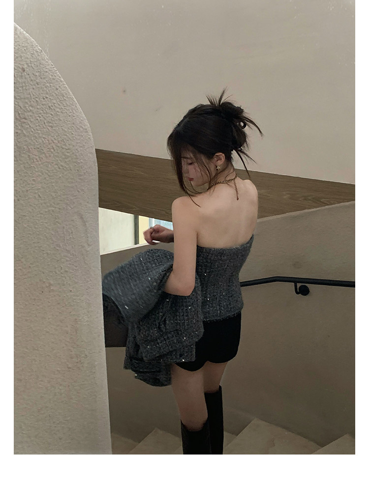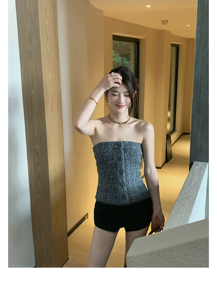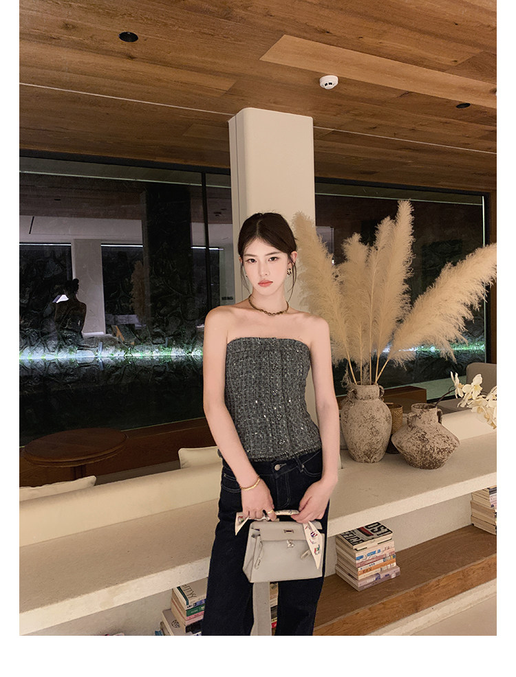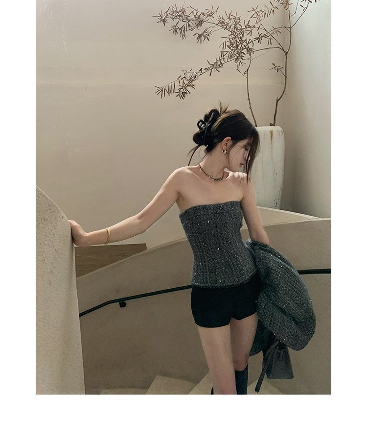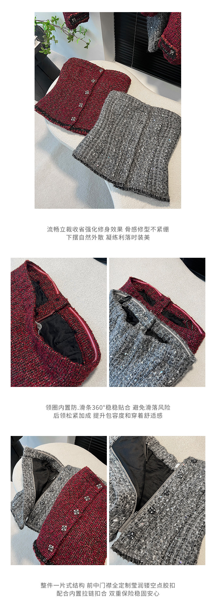 Asm Anna/Fashionable and Elegant Diamond-Studded Silver Thread Woven Tweed Chanel-Style Tube Top + Jacket Set for Women