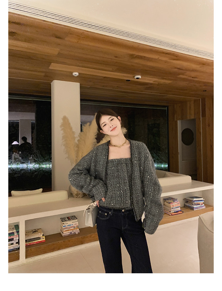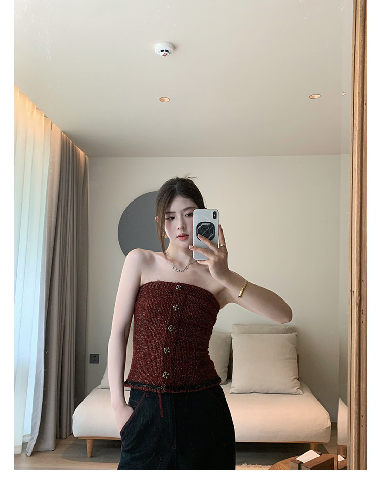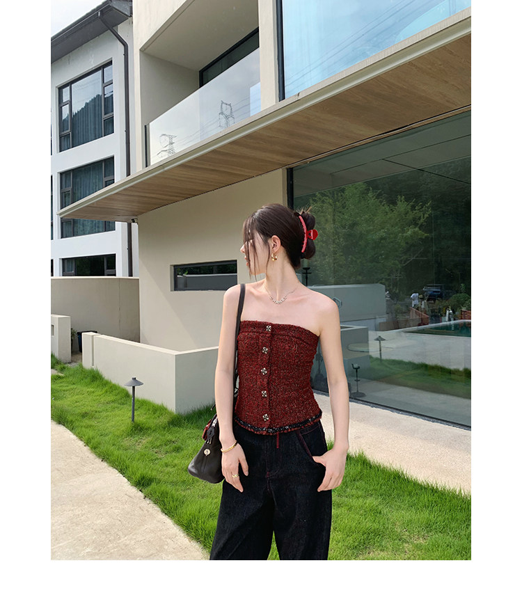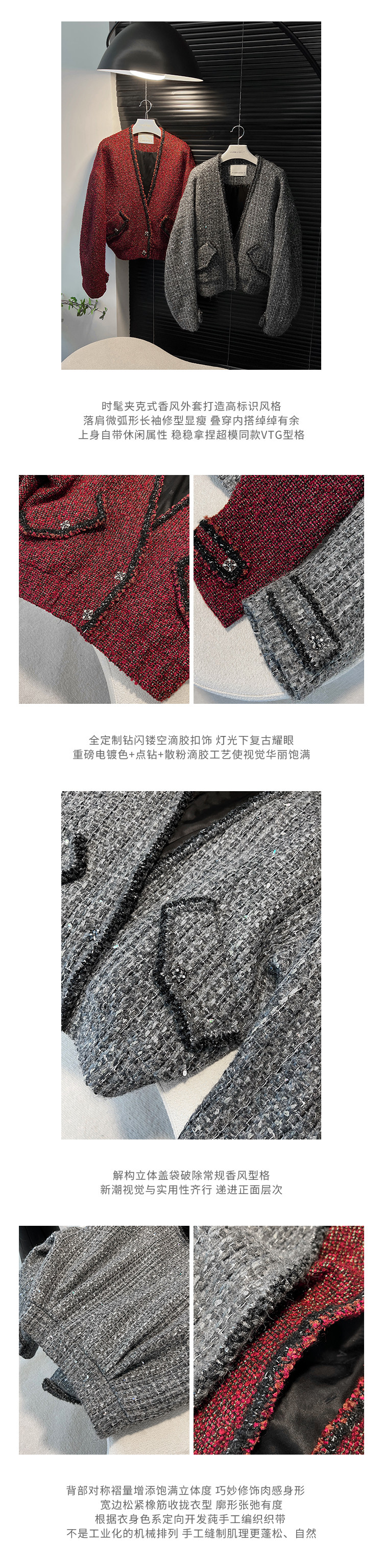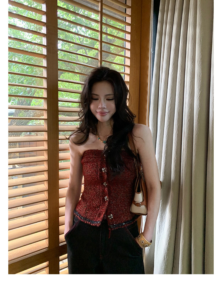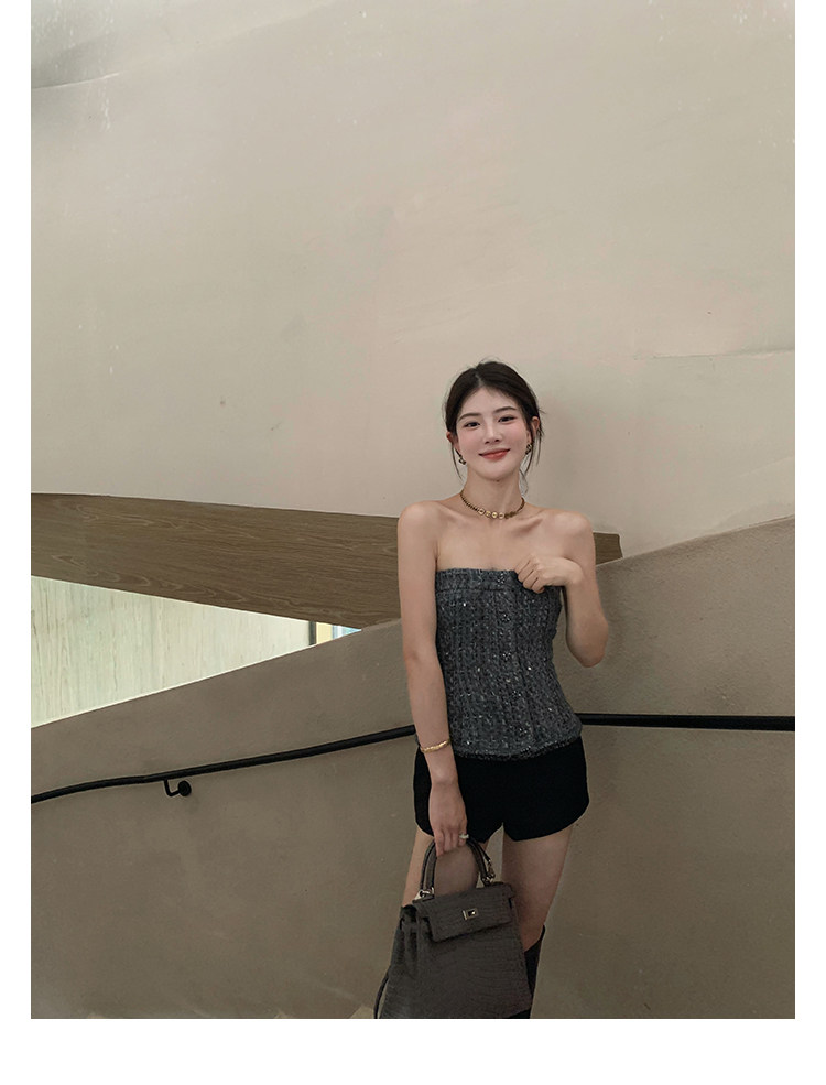 Asm Anna/Fashionable and Elegant Diamond-Studded Silver Thread Woven Tweed Chanel-Style Tube Top + Jacket Set for Women