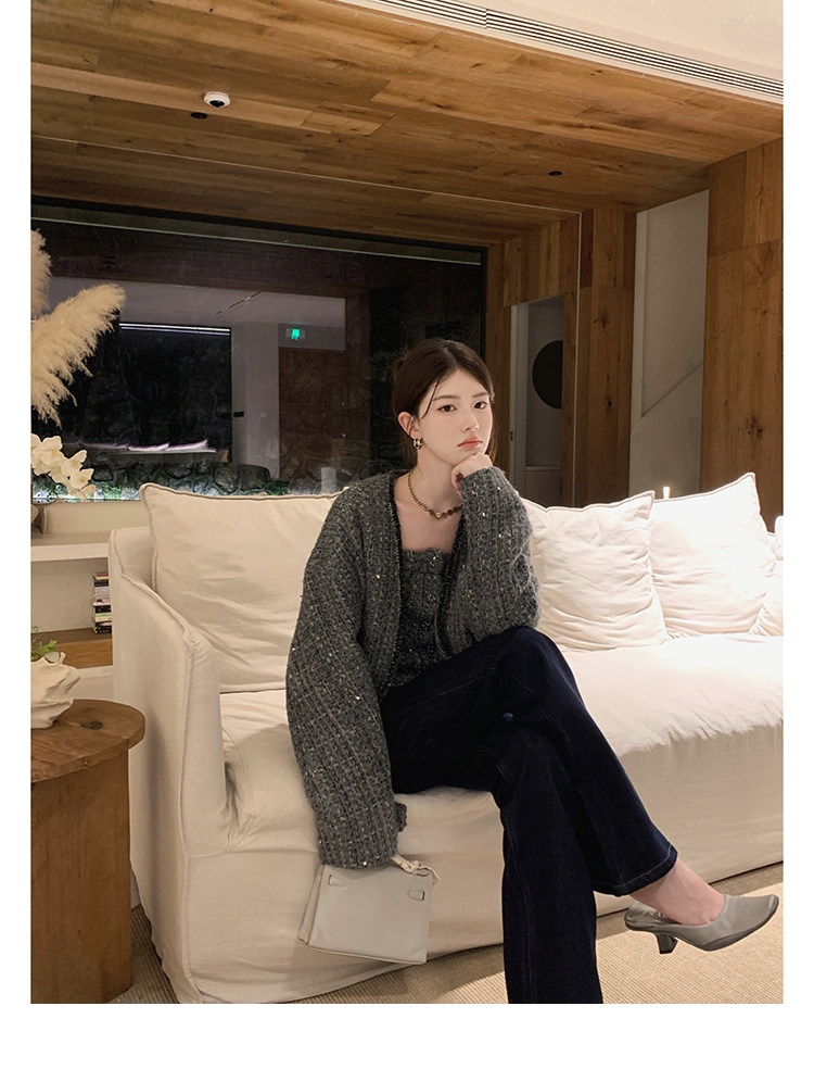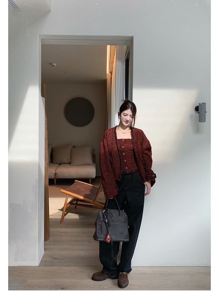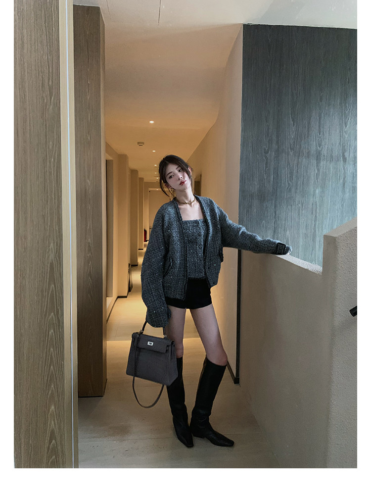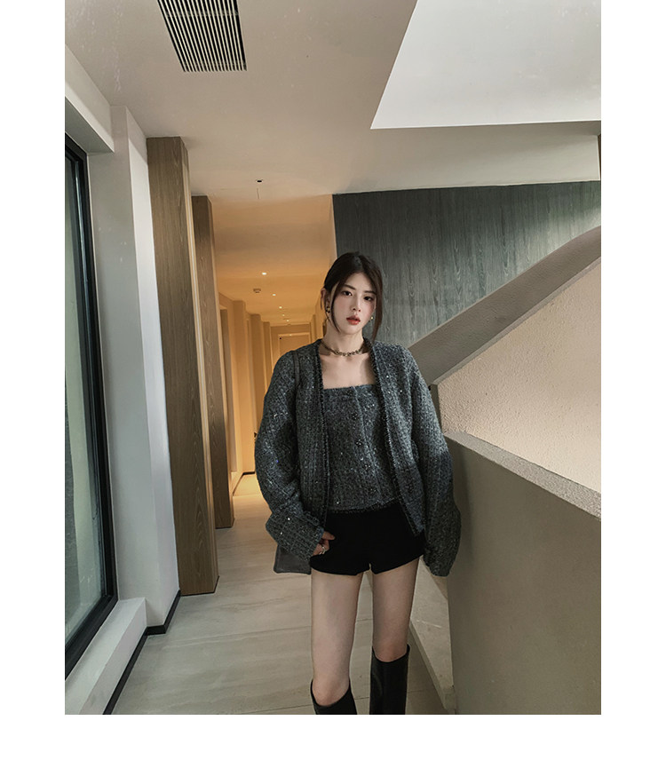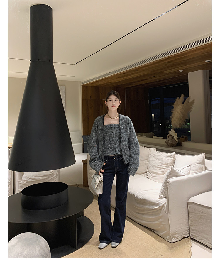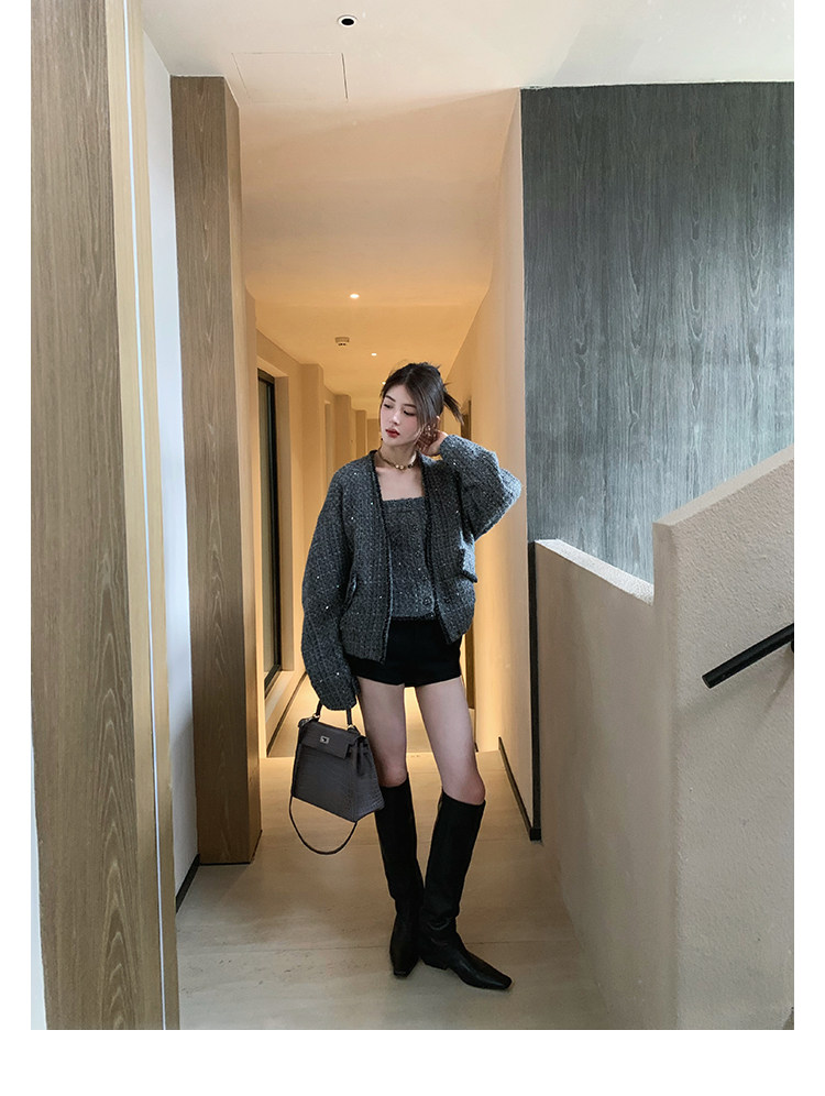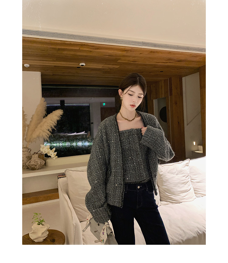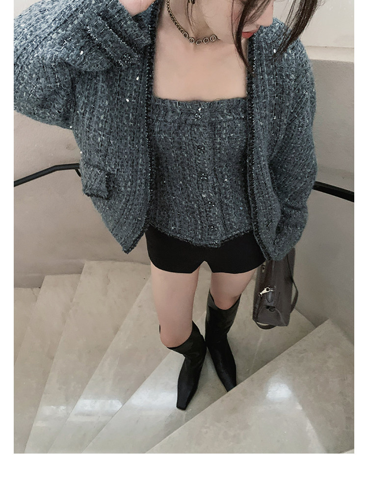 Asm Anna/Fashionable and Elegant Diamond-Studded Silver Thread Woven Tweed Chanel-Style Tube Top + Jacket Set for Women