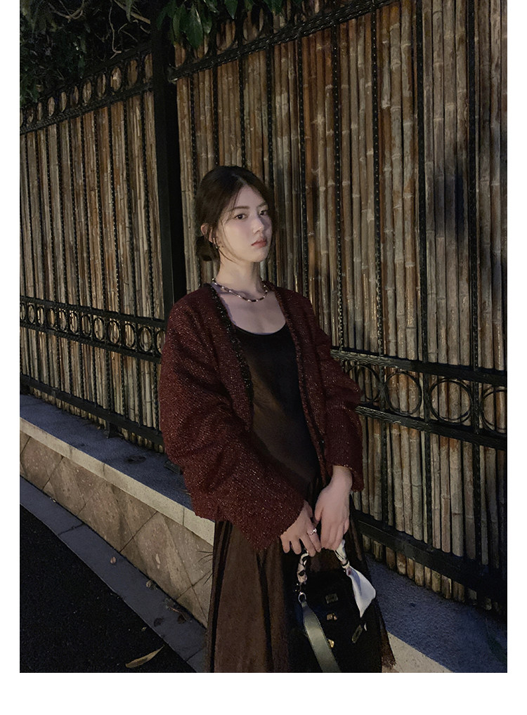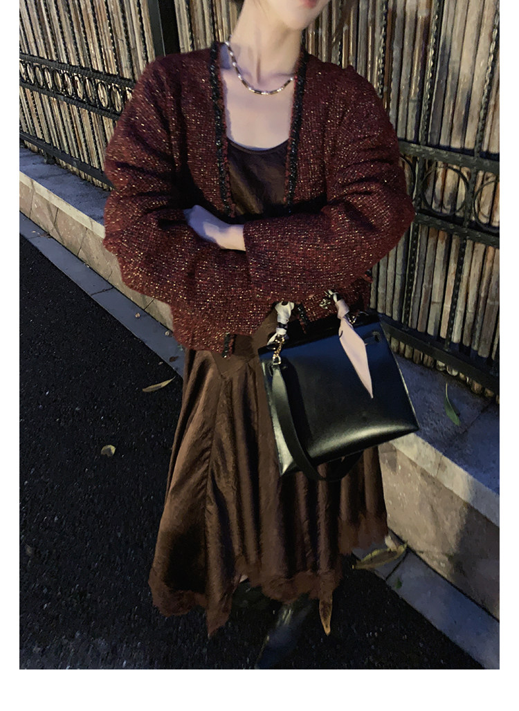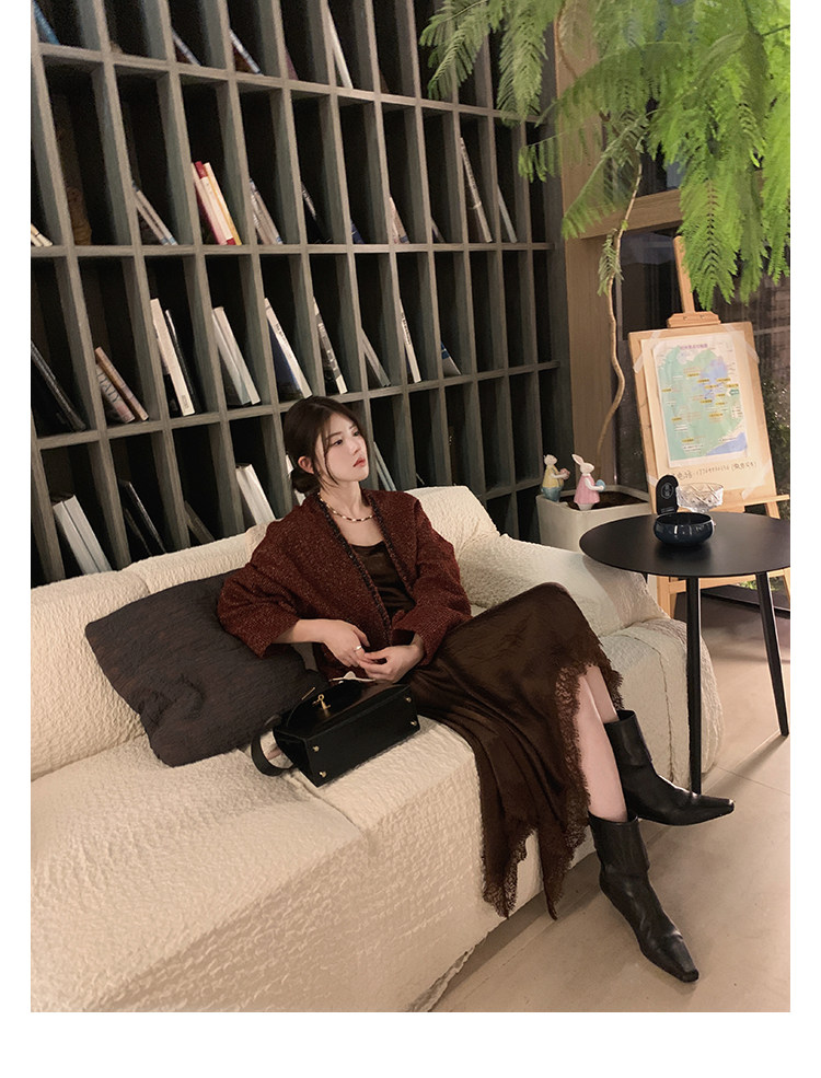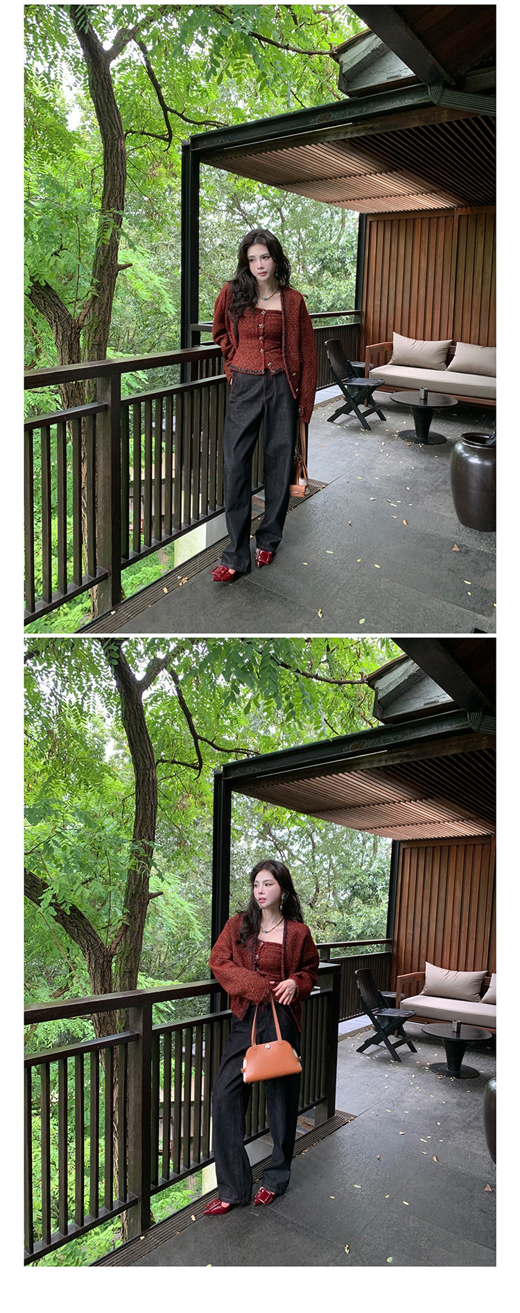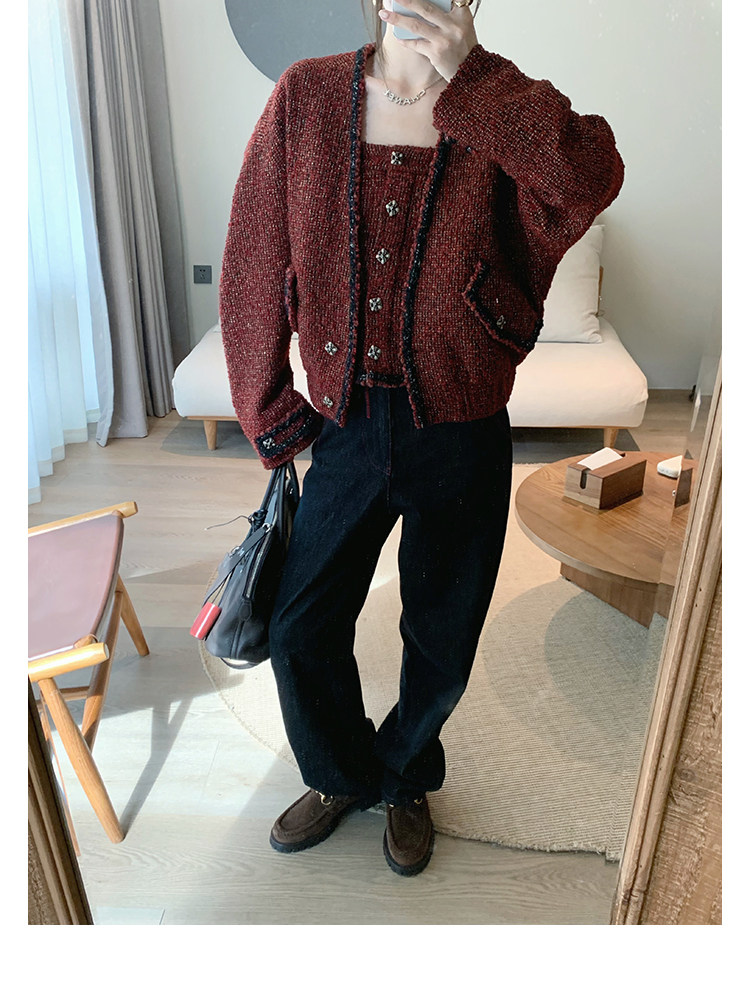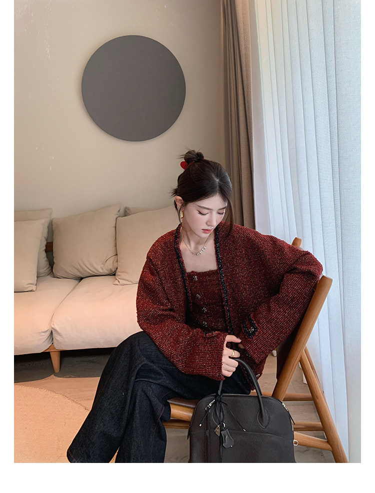 Asm Anna/Fashionable and Elegant Diamond-Studded Silver Thread Woven Tweed Chanel-Style Tube Top + Jacket Set for Women