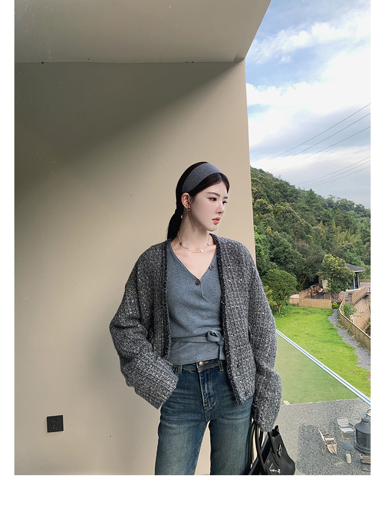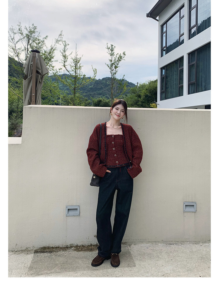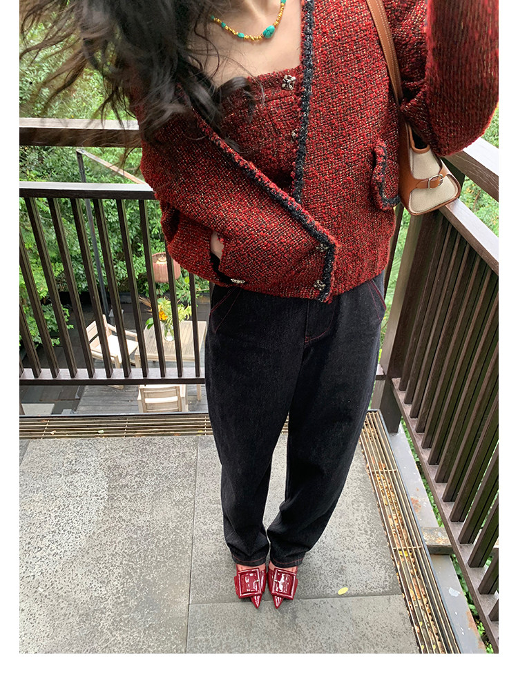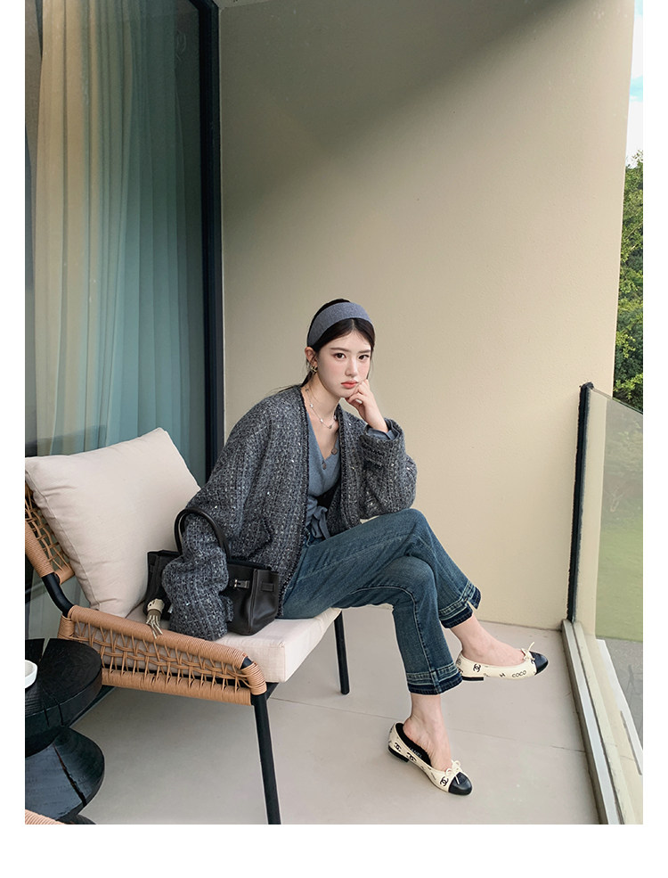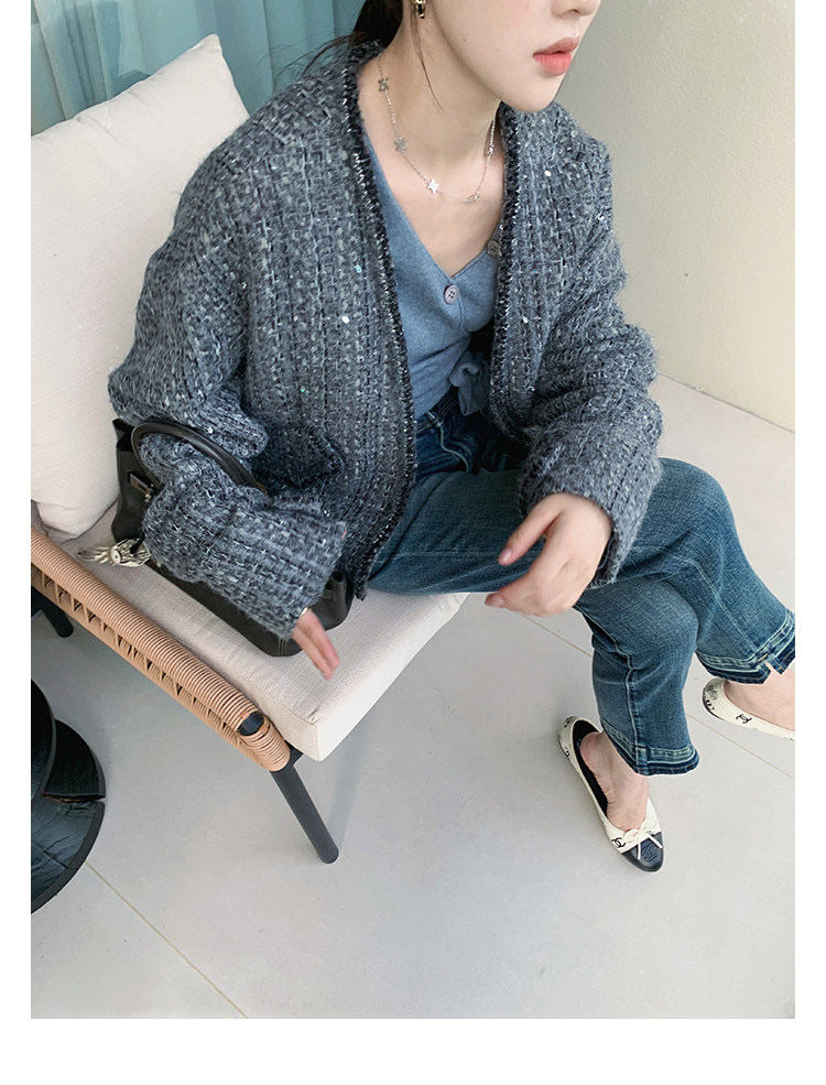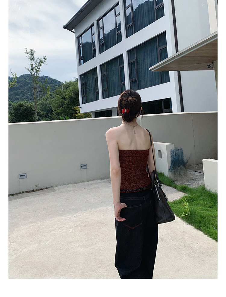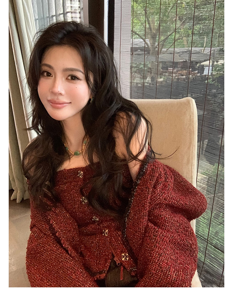 Asm Anna/Fashionable and Elegant Diamond-Studded Silver Thread Woven Tweed Chanel-Style Tube Top + Jacket Set for Women
